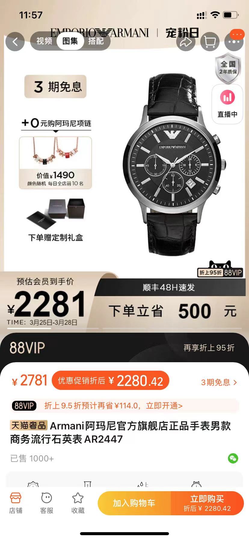 三个月换新保修一年~ARMANI阿玛尼经典休闲商务款男士皮带手表腕表