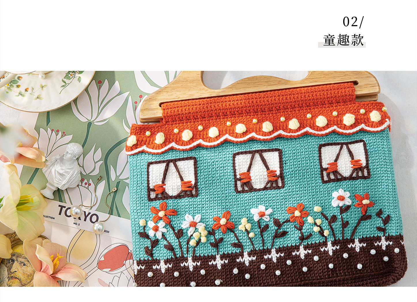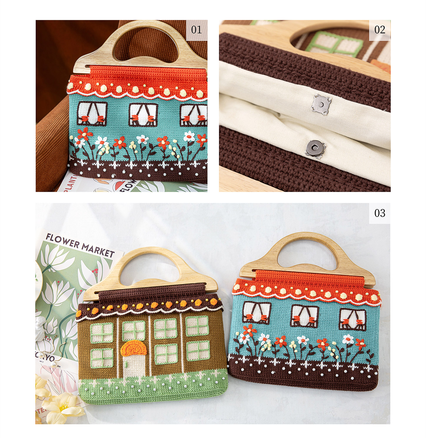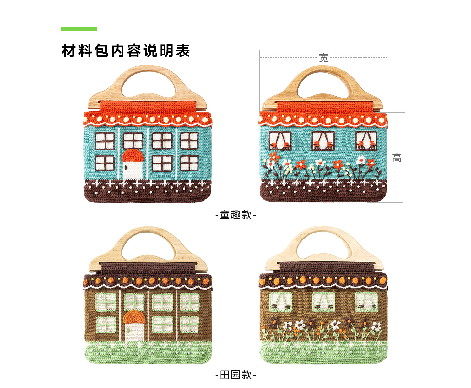 苏苏姐家小房子刺绣包包手工DIY编织钩针牛奶棉毛线团材料包