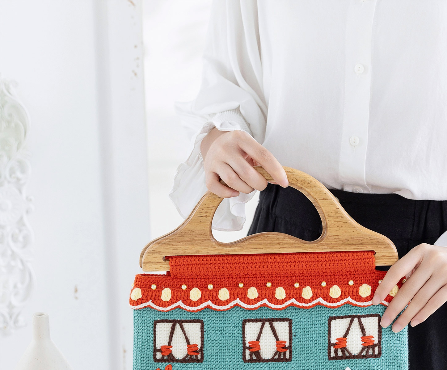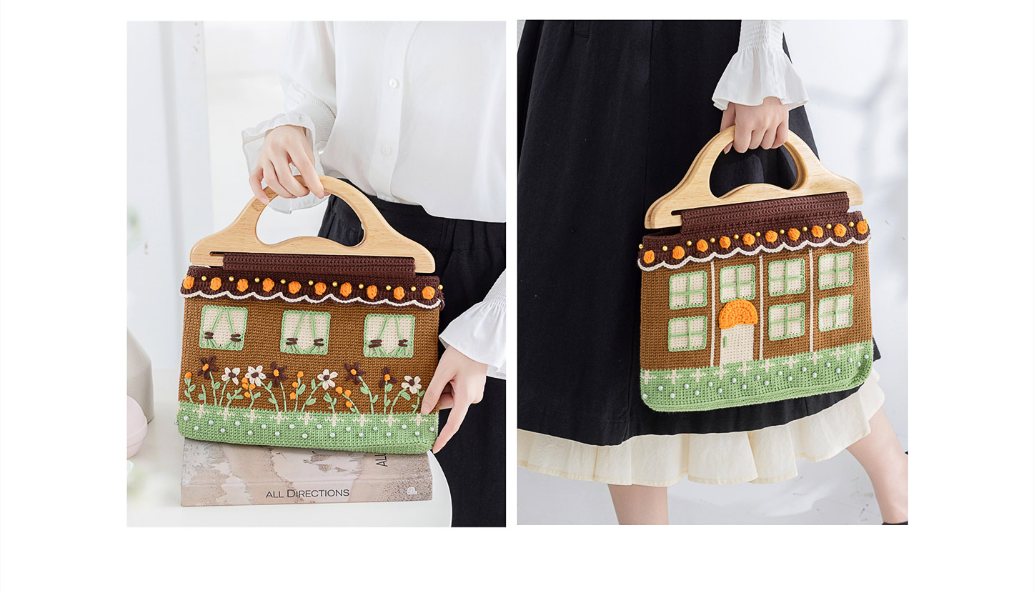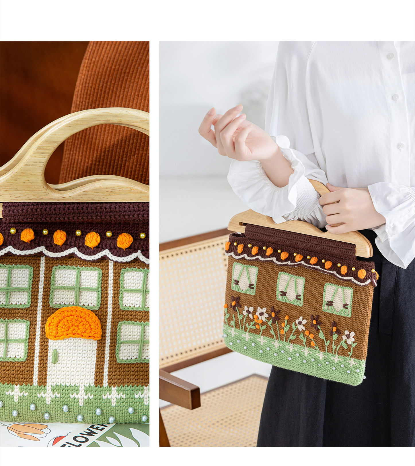 苏苏姐家小房子刺绣包包手工DIY编织钩针牛奶棉毛线团材料包