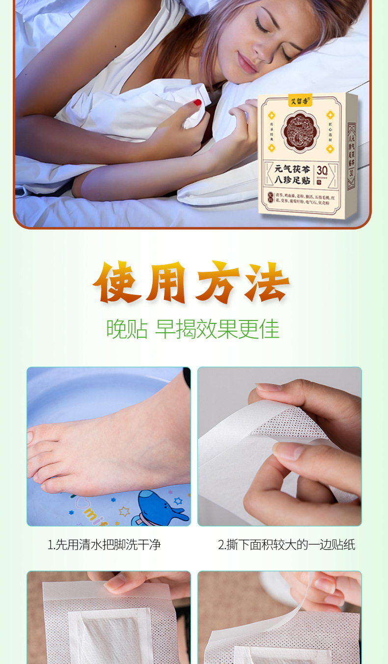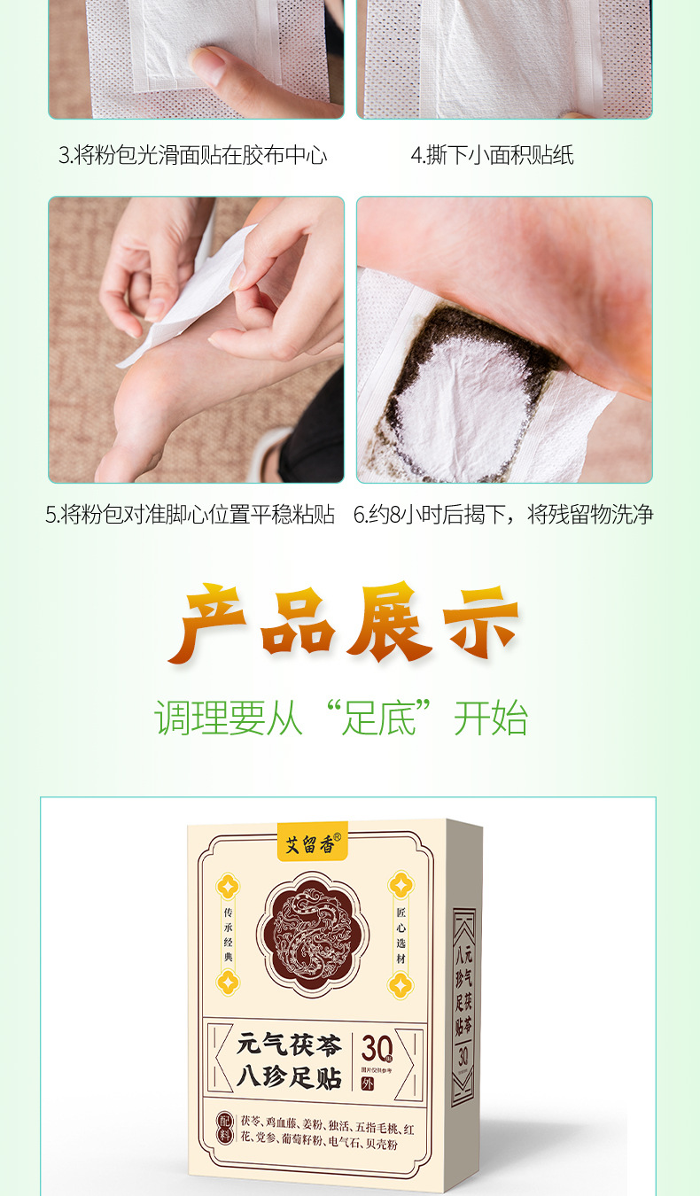 【买2送1❗️元气茯苓八珍足贴】全新升级,甄选多种草本配料,每天一贴!睡眠贴艾灸贴脚底贴温灸贴老北京草本足底贴三伏天