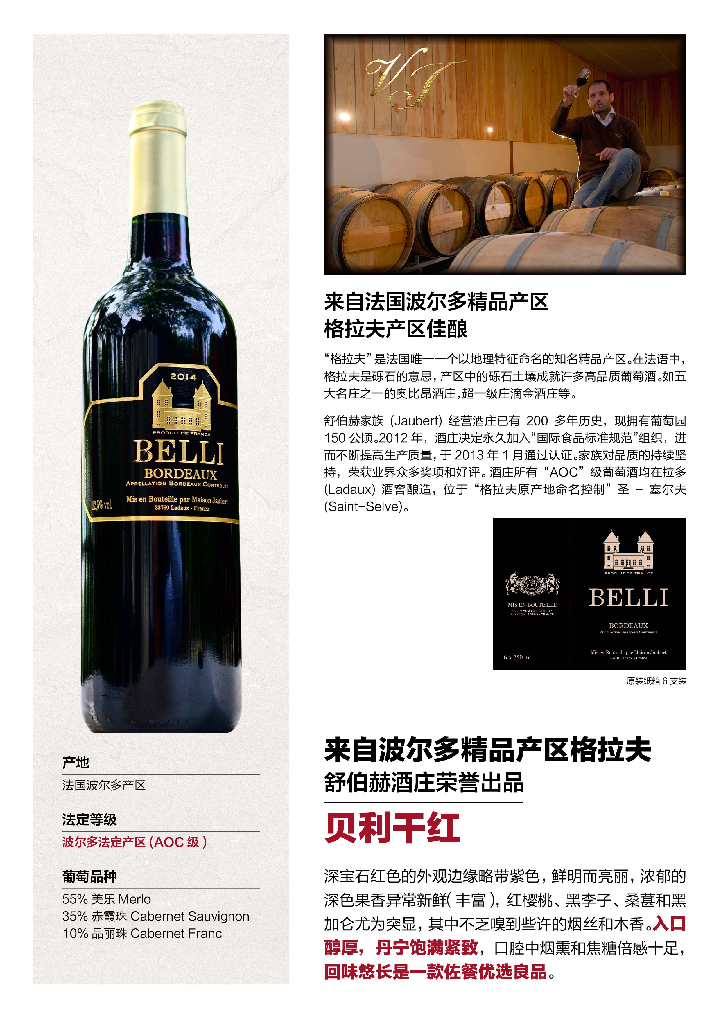 法国波尔多-舒伯赫庄园贝利干红2016年JAUBERT BELLE