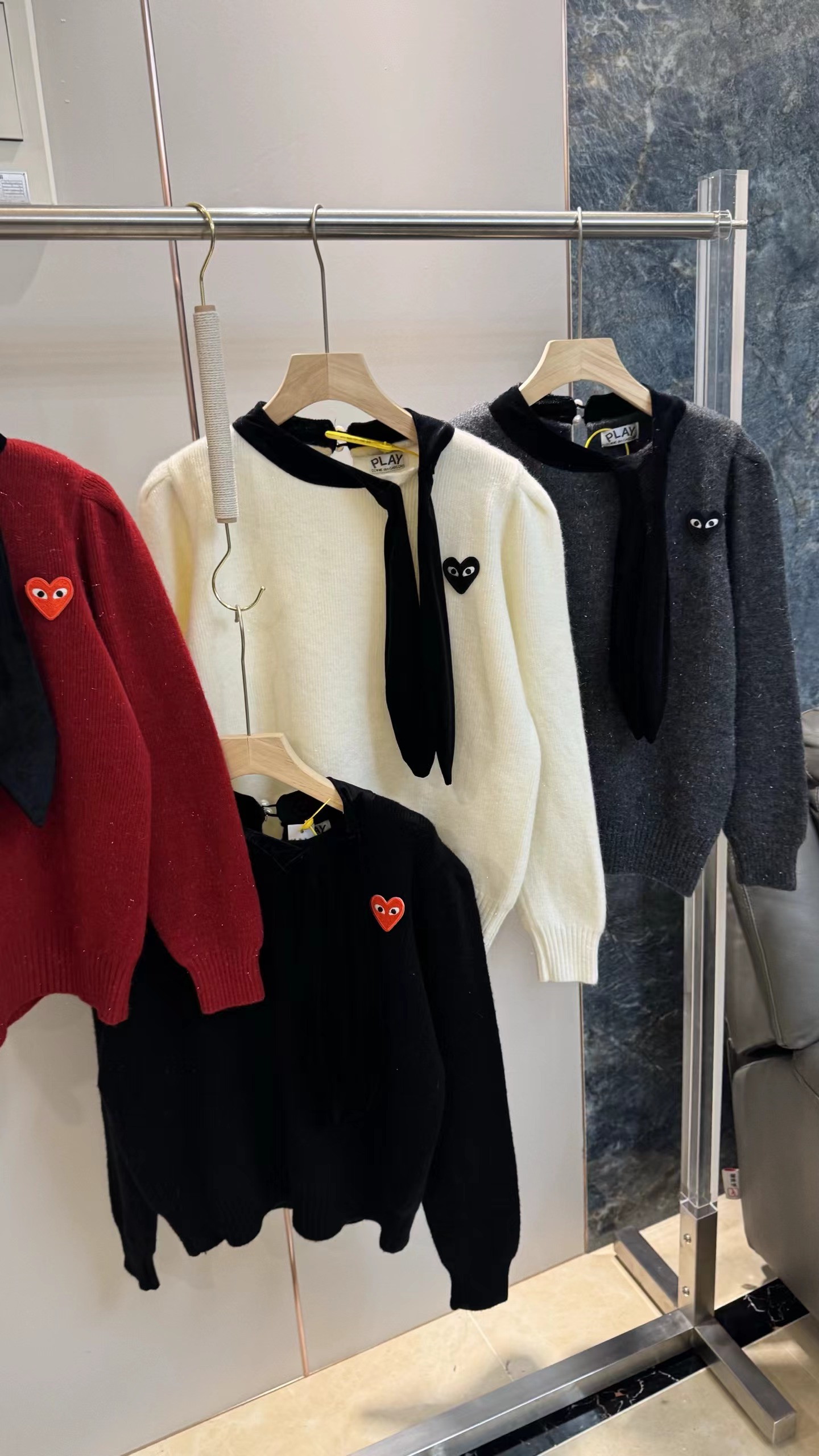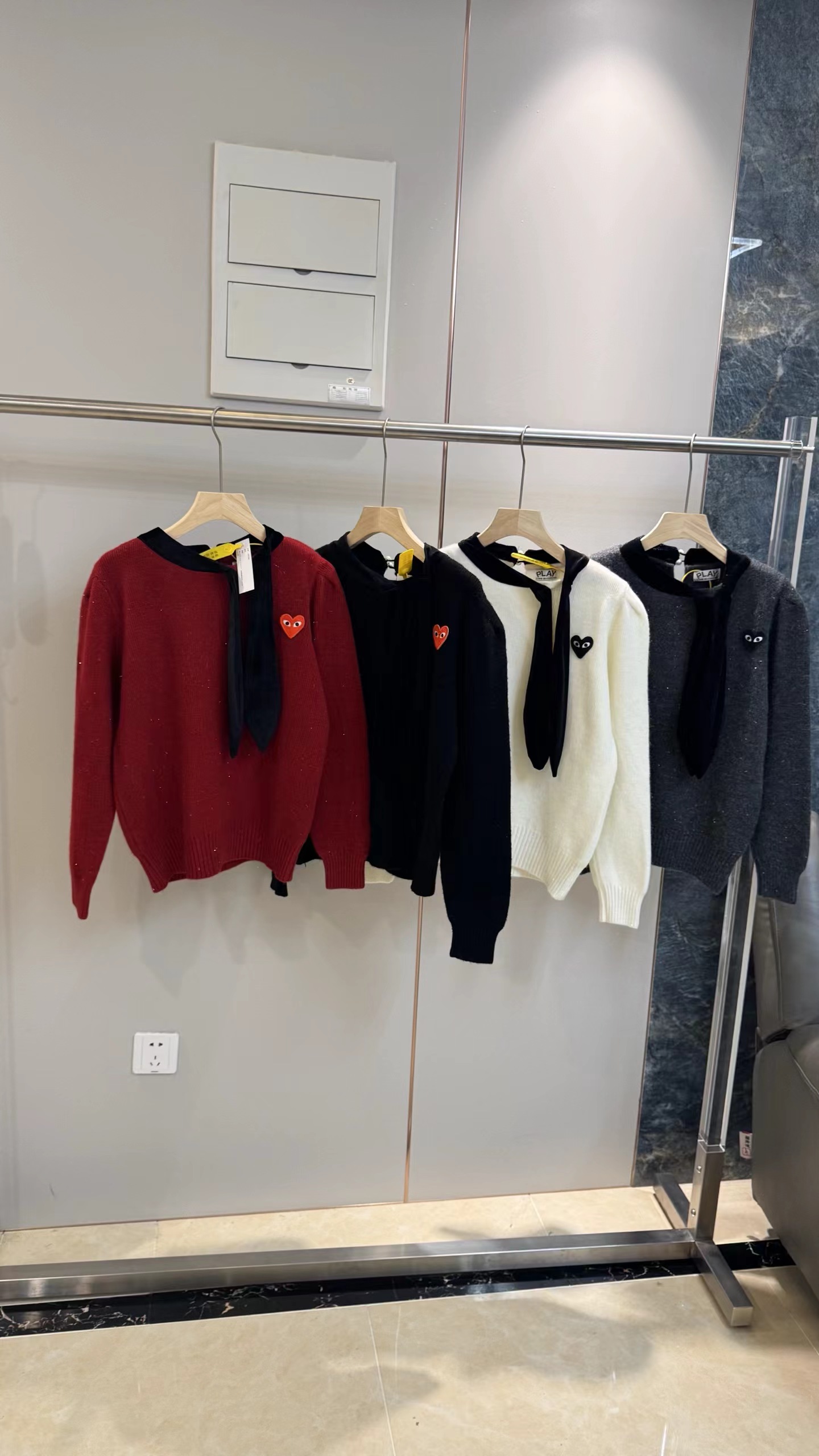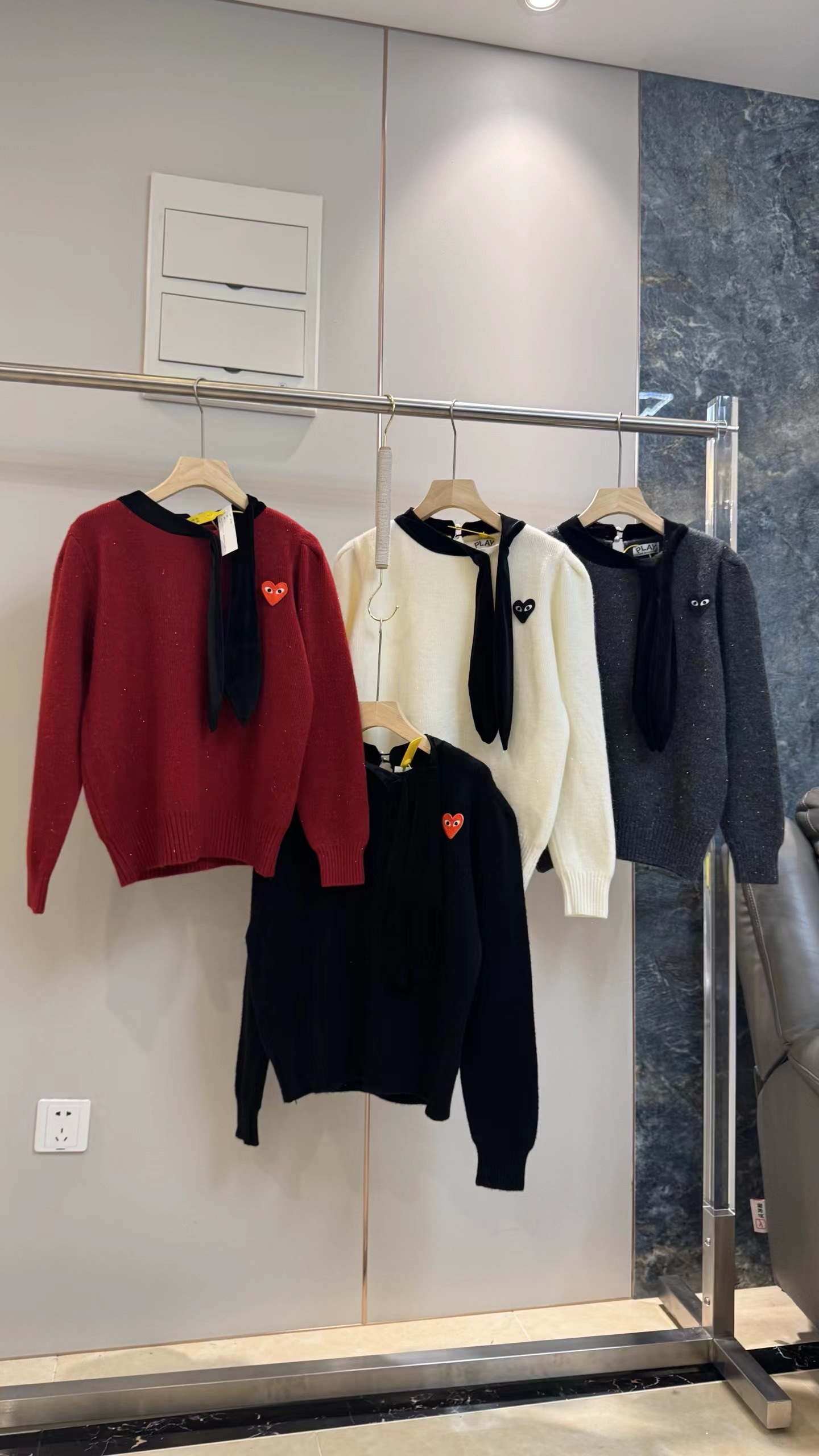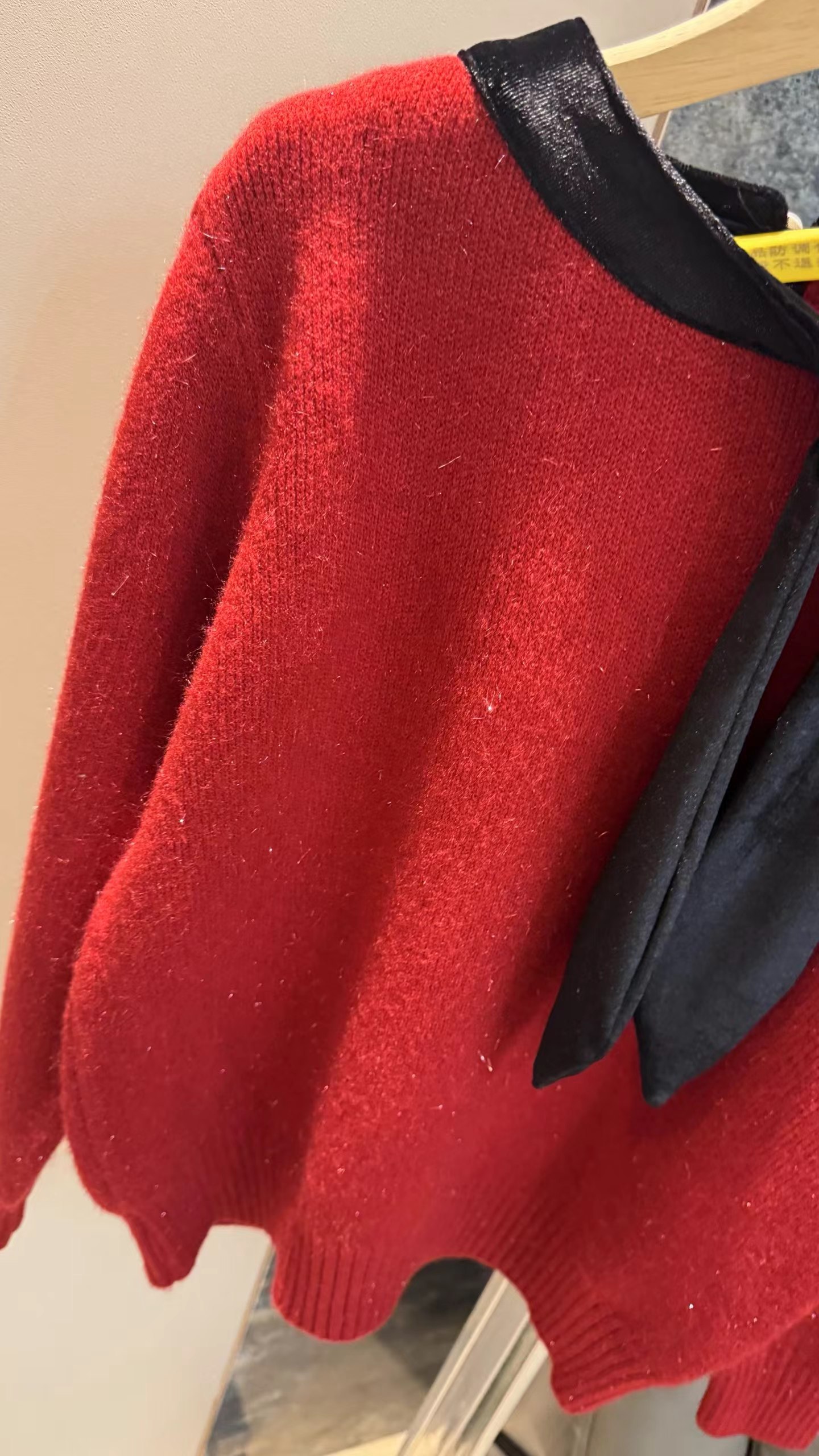 温柔甜妹风|丝绒蝴蝶结针织毛衣,软糯亲肤的米白色针织,自带温柔滤镜,宽松版型藏肉显瘦,不挑身材。领口可拆卸丝绒大蝴蝶结,丝绒质感gao级,增添甜美氛围感,可拆卸设计一衣两穿。胸口jing致爱心小标点缀,简约不单调,细节感拉满。灯笼袖设计修饰手臂线条,温柔又减龄,日常通勤、约会都适配。宽松版型,领口搭配可拆卸黑色丝绒大蝴蝶结,胸口有爱心小标,灯笼袖设计,温柔甜美,百搭显瘦。