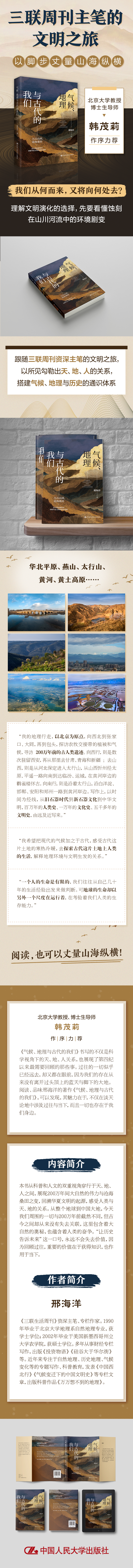 邢海洋毕业于北京大学地理系,又留学于美国,深谙地理学的要旨,《气候、地理与古代的我们》书写的不仅是科学视角下的天、地、人关系,也展现了第四纪以来最需要回顾的那些事。过往的一切似乎已经远去,却又都在眼前,因为我们的存在从来没有离开过头顶上的蓝天与脚下的大地。阅读、品味邢海洋的著作《气候、地理与古代的我们》,可以发现,其魅力在于,不仅在谈天论地中涉及过往与当下,而且一切也存在于我们身边。