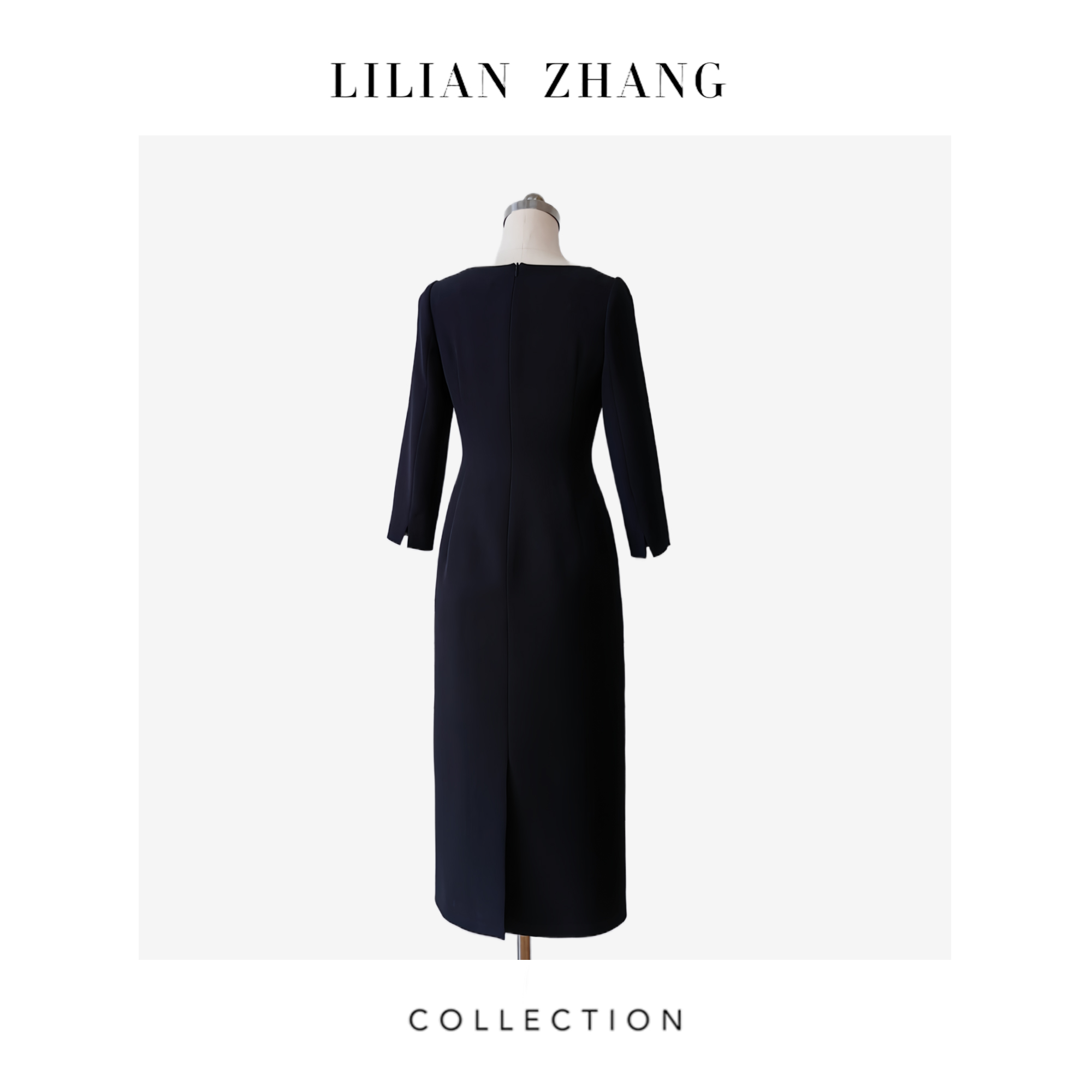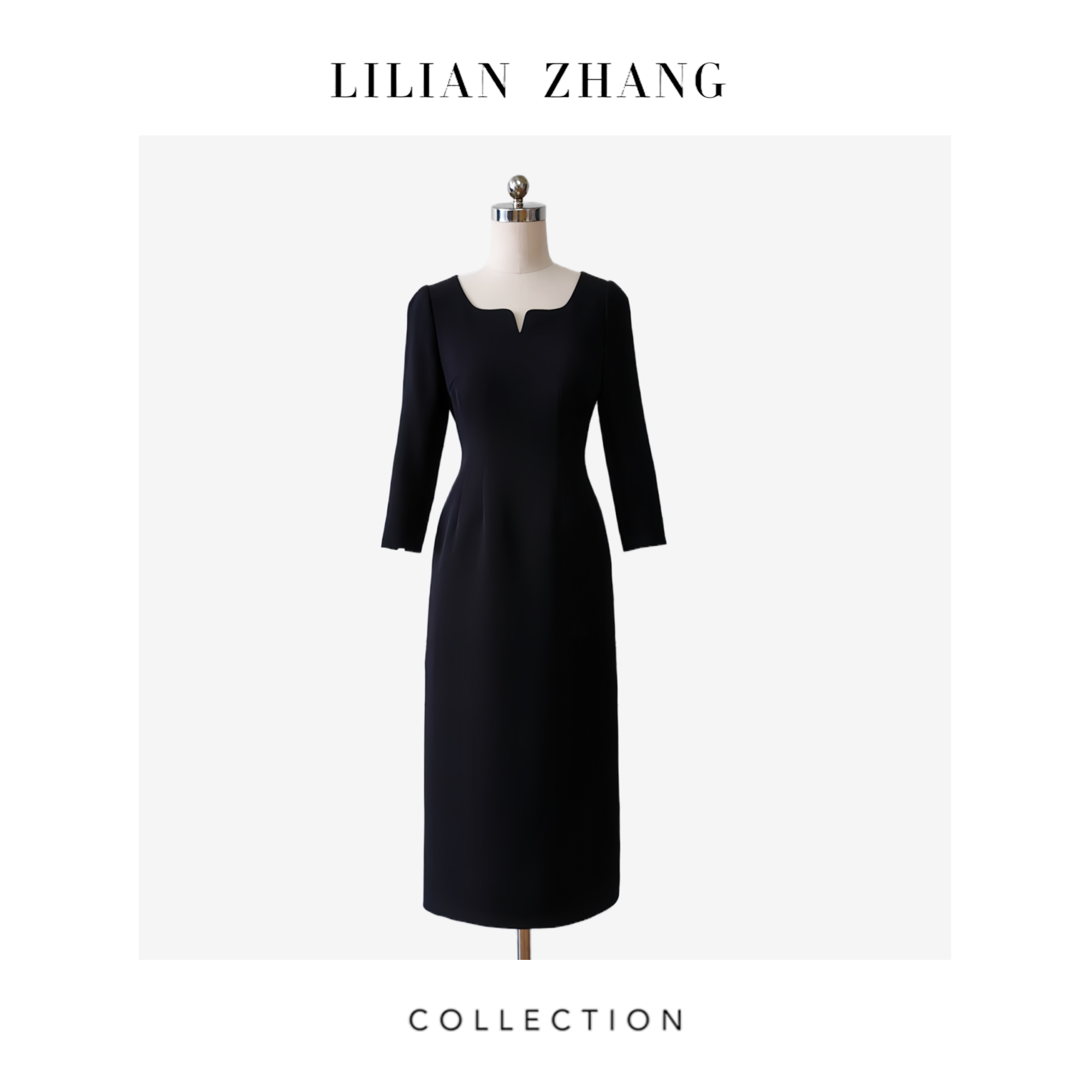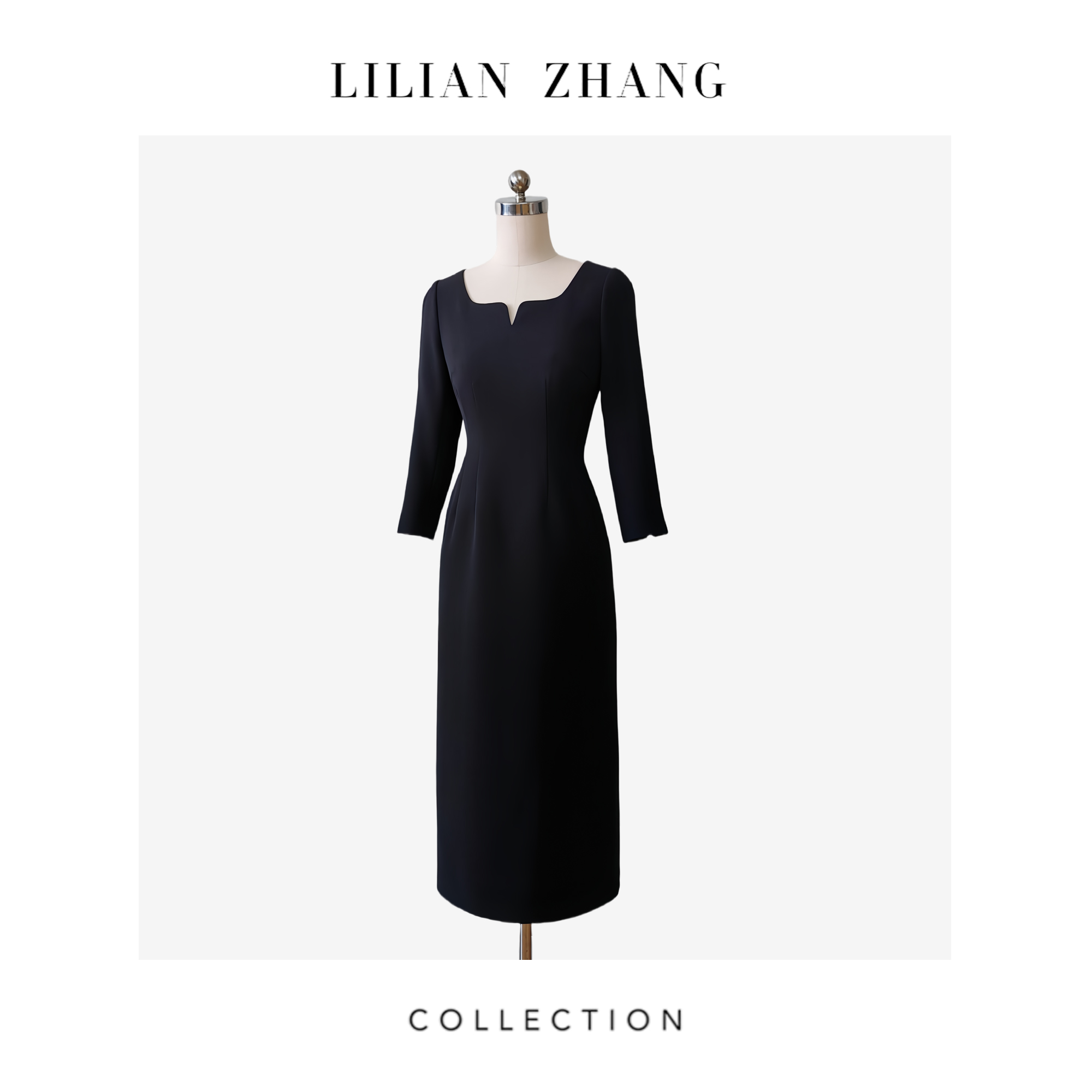 C—定制「一见钟情」—“挚爱*”—轻奢风—心形领修身小黑裙 2401179