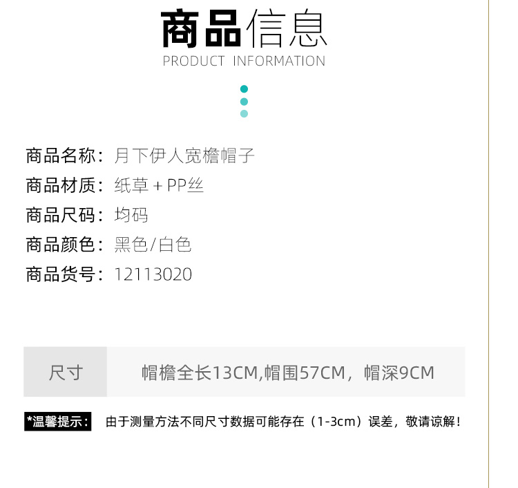 月下伊人宽檐帽子| 现货加急发 | 杨老师同款 黑色|白色