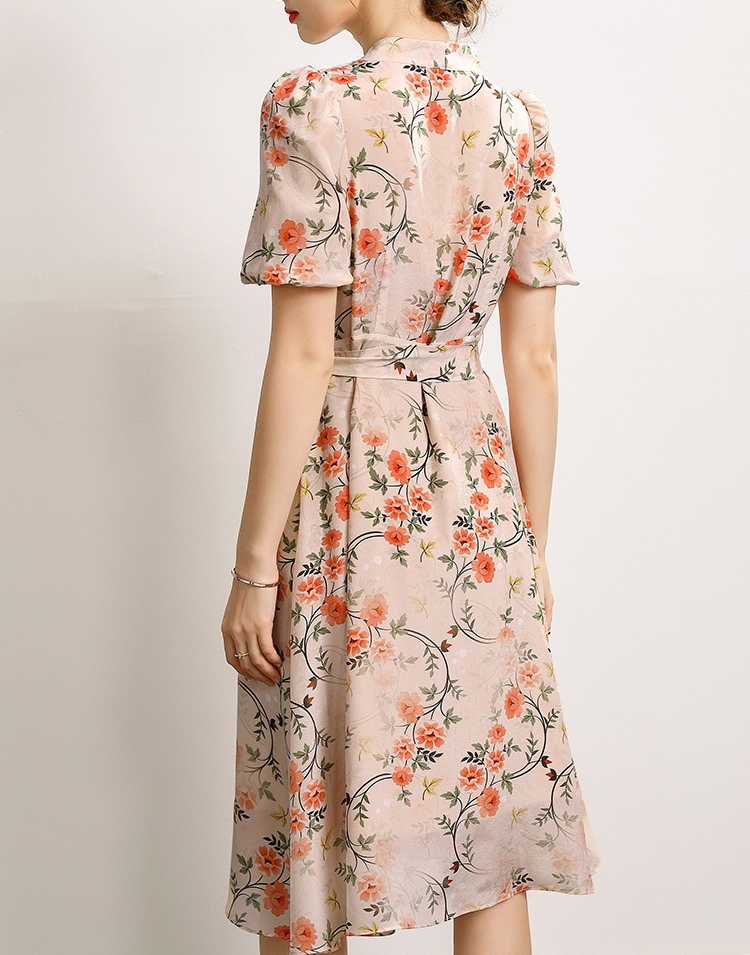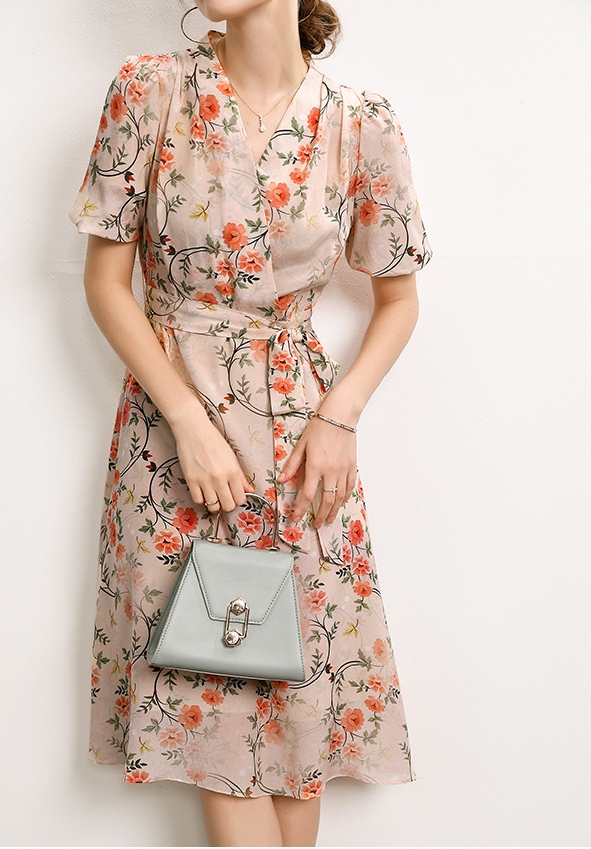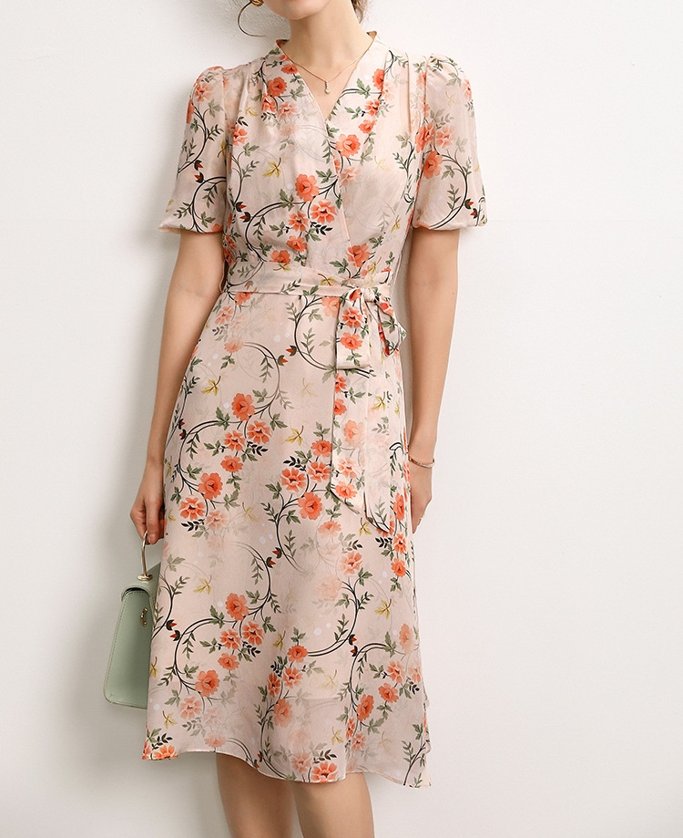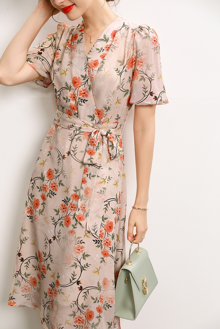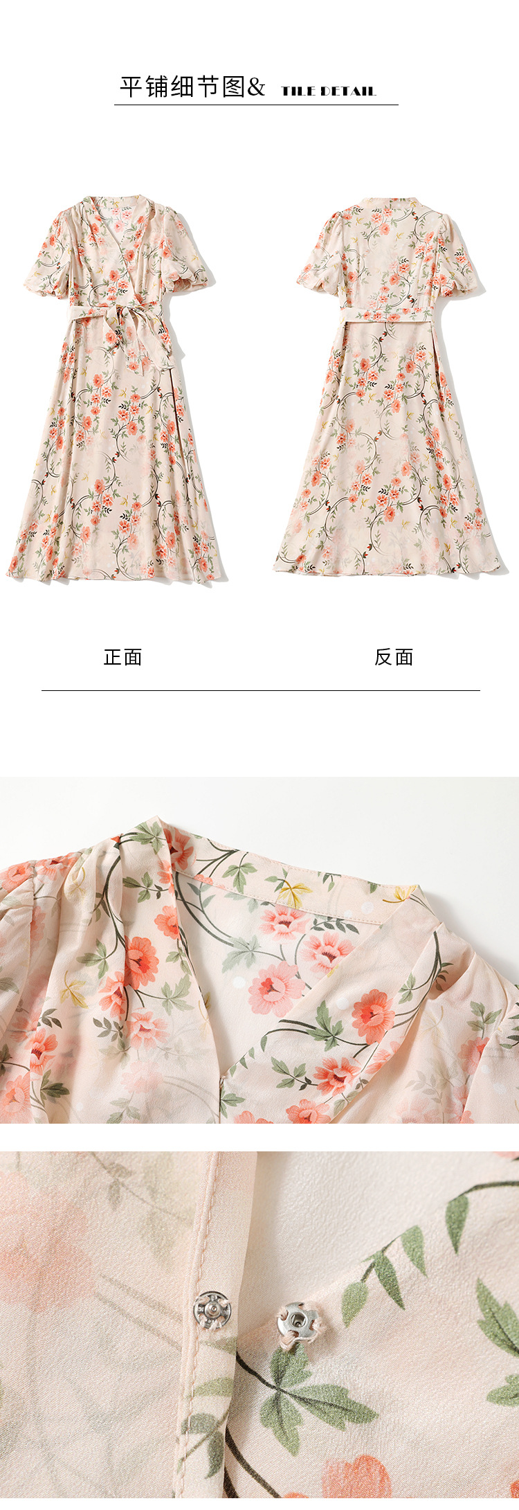 100%桑蚕丝,泛有自然的光泽感。手感顺滑,舒适亲肤,垂顺性好,为肌肤带来超乎想象的丝滑触感,花色柔美雅致提肤色。有内衬一点都不透,小花苞袖筒更包容双臂。