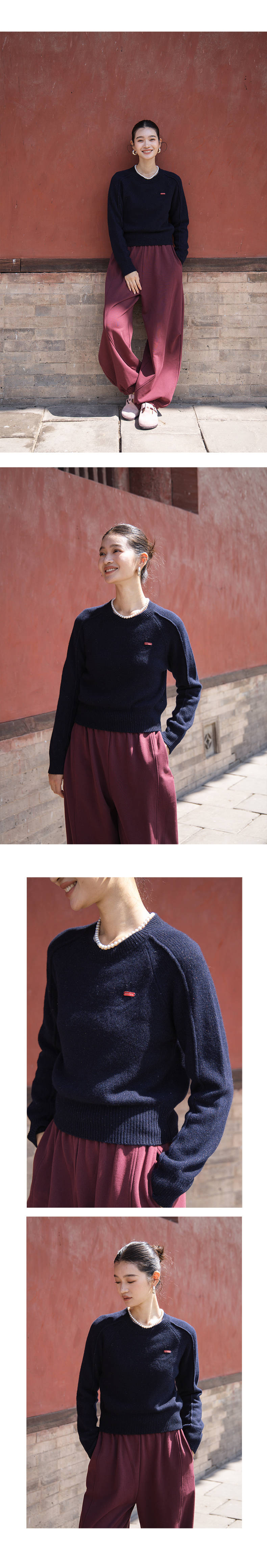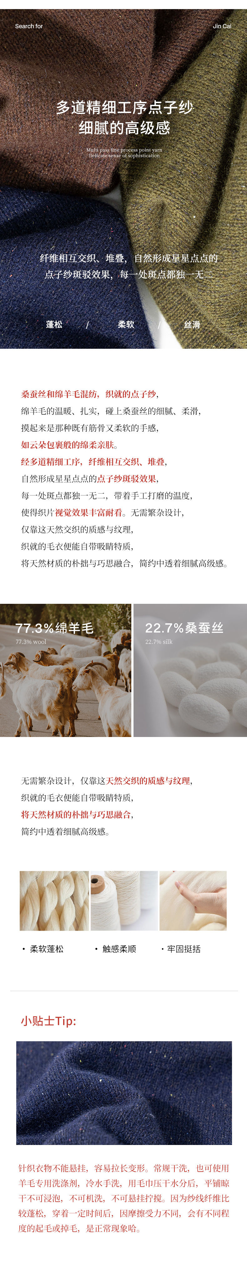 绽放611朵/绵羊毛桑蚕丝混纺多色彩点圆领显瘦短款套头毛衣女秋冬
