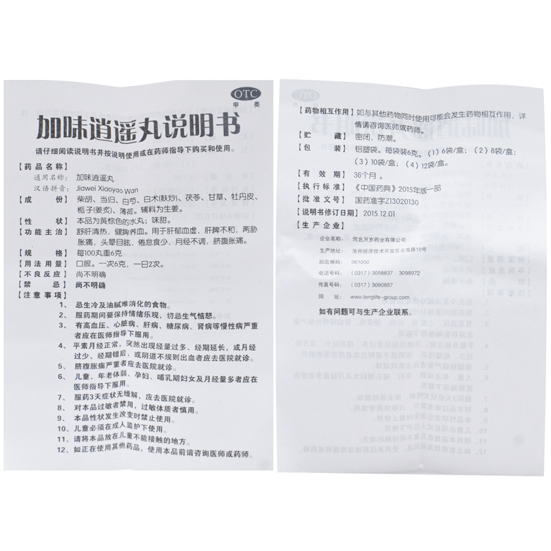万岁 加味逍遥丸 6g*10袋 肝郁血虚 肝脾不和 两肋胀痛 头晕目眩