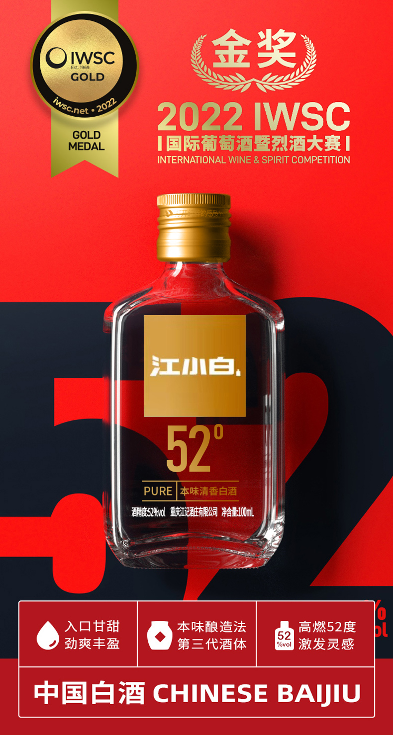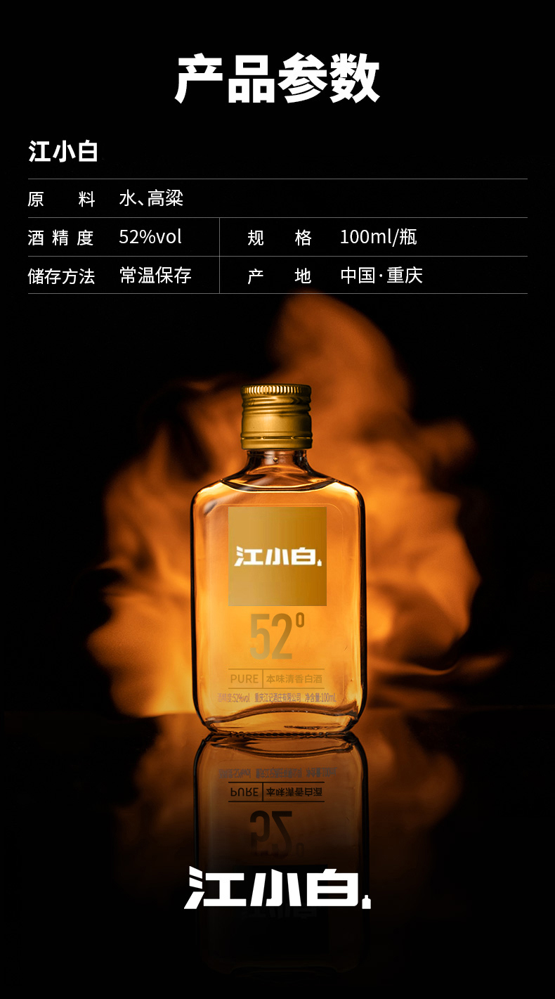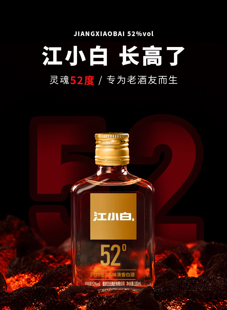 江小白白酒52度金盖520系列纯粮食酒清香型高粱酒100ml//瓶