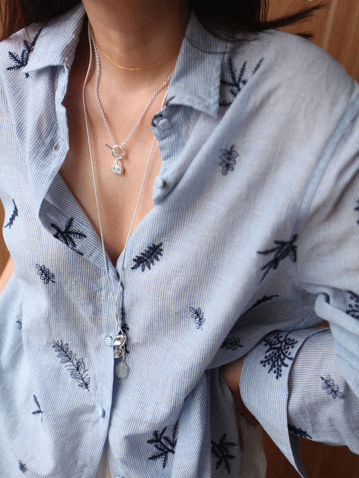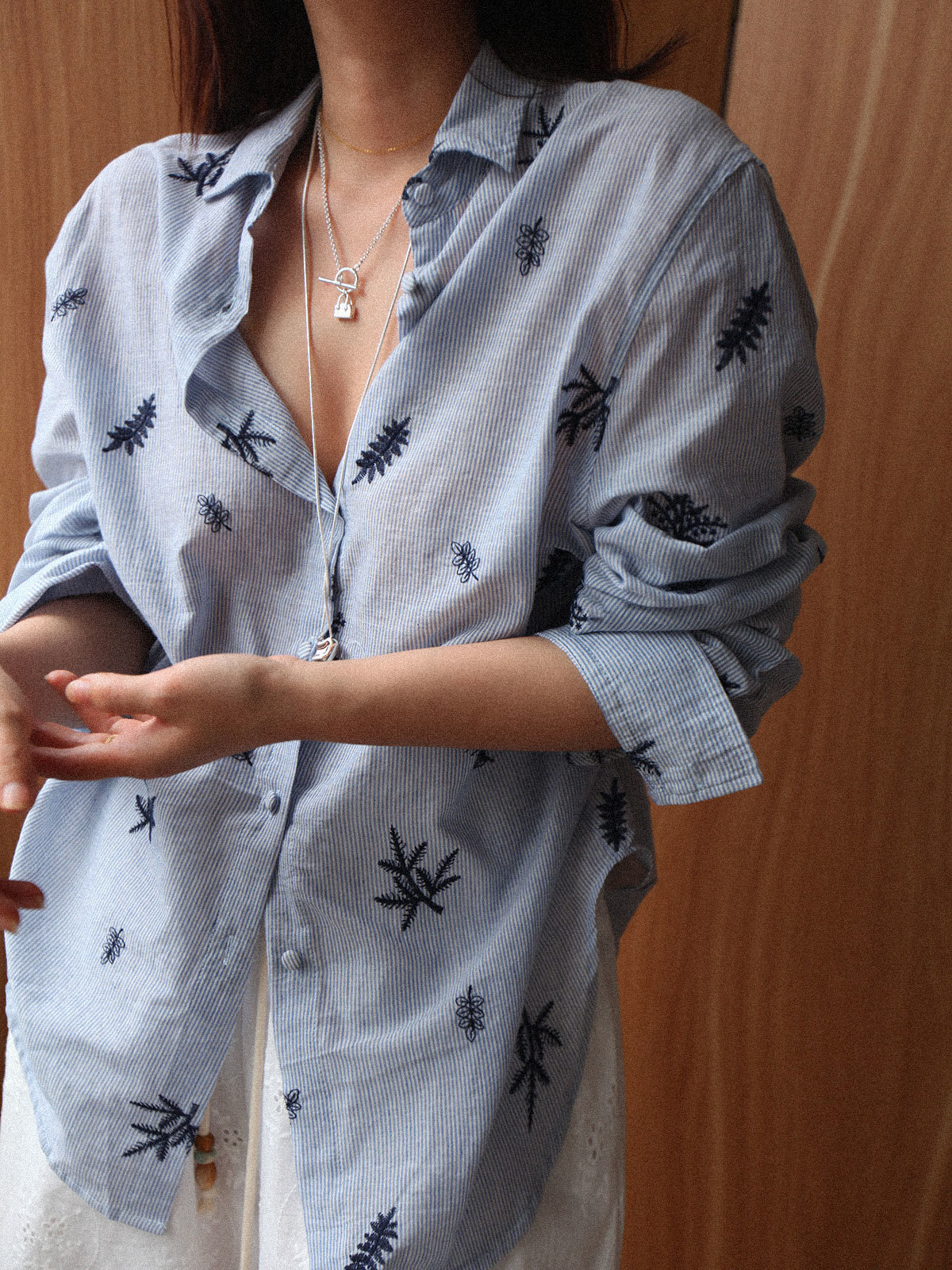 定织染双纱条纹,低饱和海岛蓝市面非常少~
