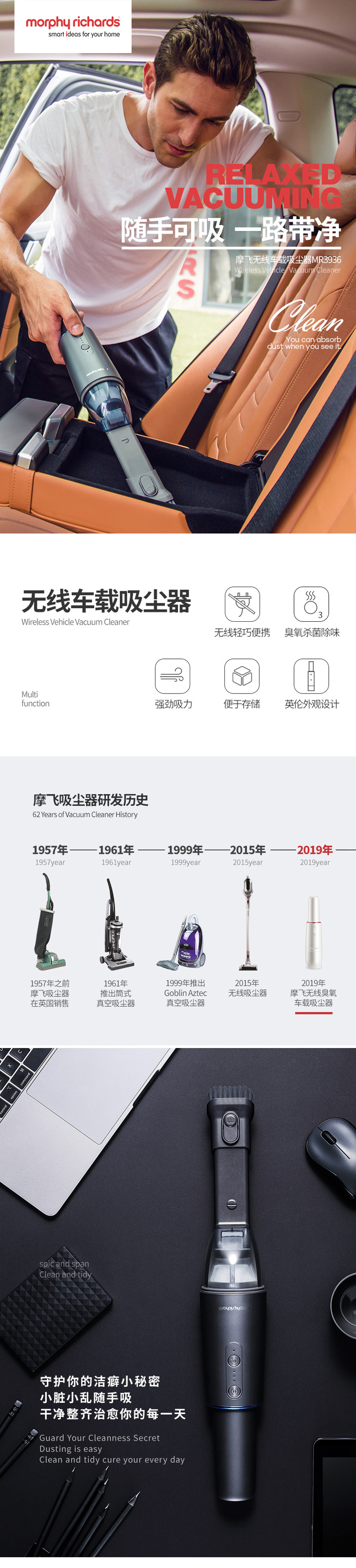 英国摩飞| 舒淇同款 明星代言 摩飞无线车载吸尘器 家用迷你小型充电手持式随手大吸力清洁除螨 型号:MR3936 (付款后三天内发货)