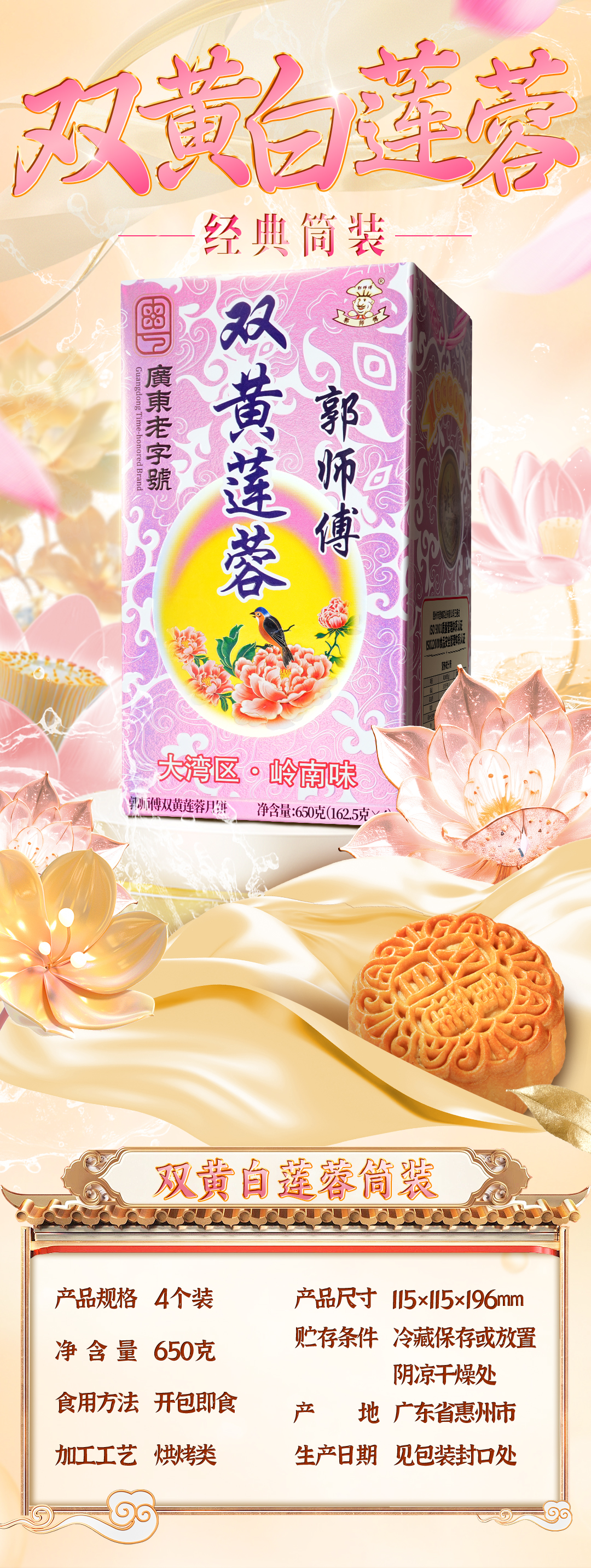 郭师傅月饼双黄莲蓉月饼筒装四个装650g