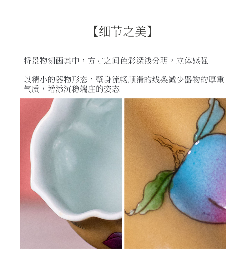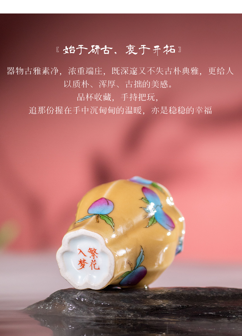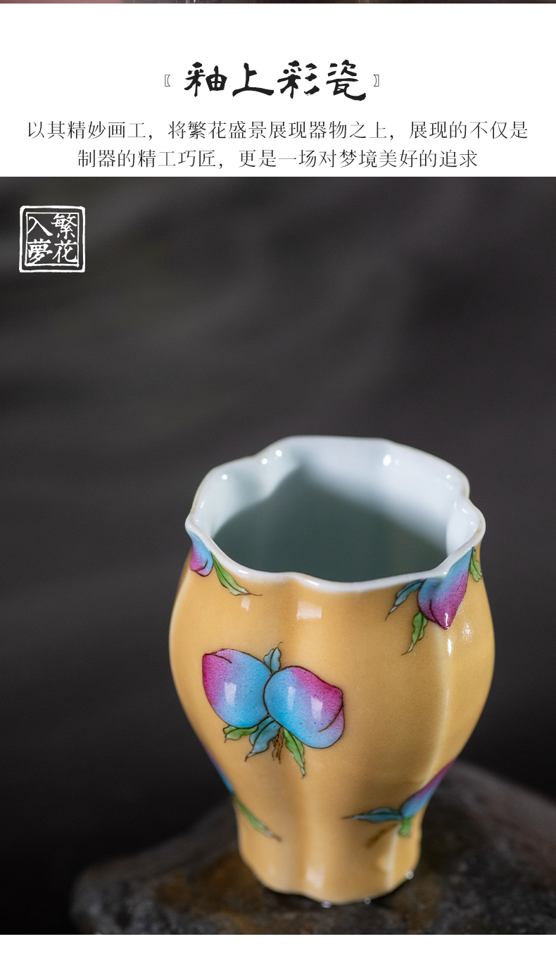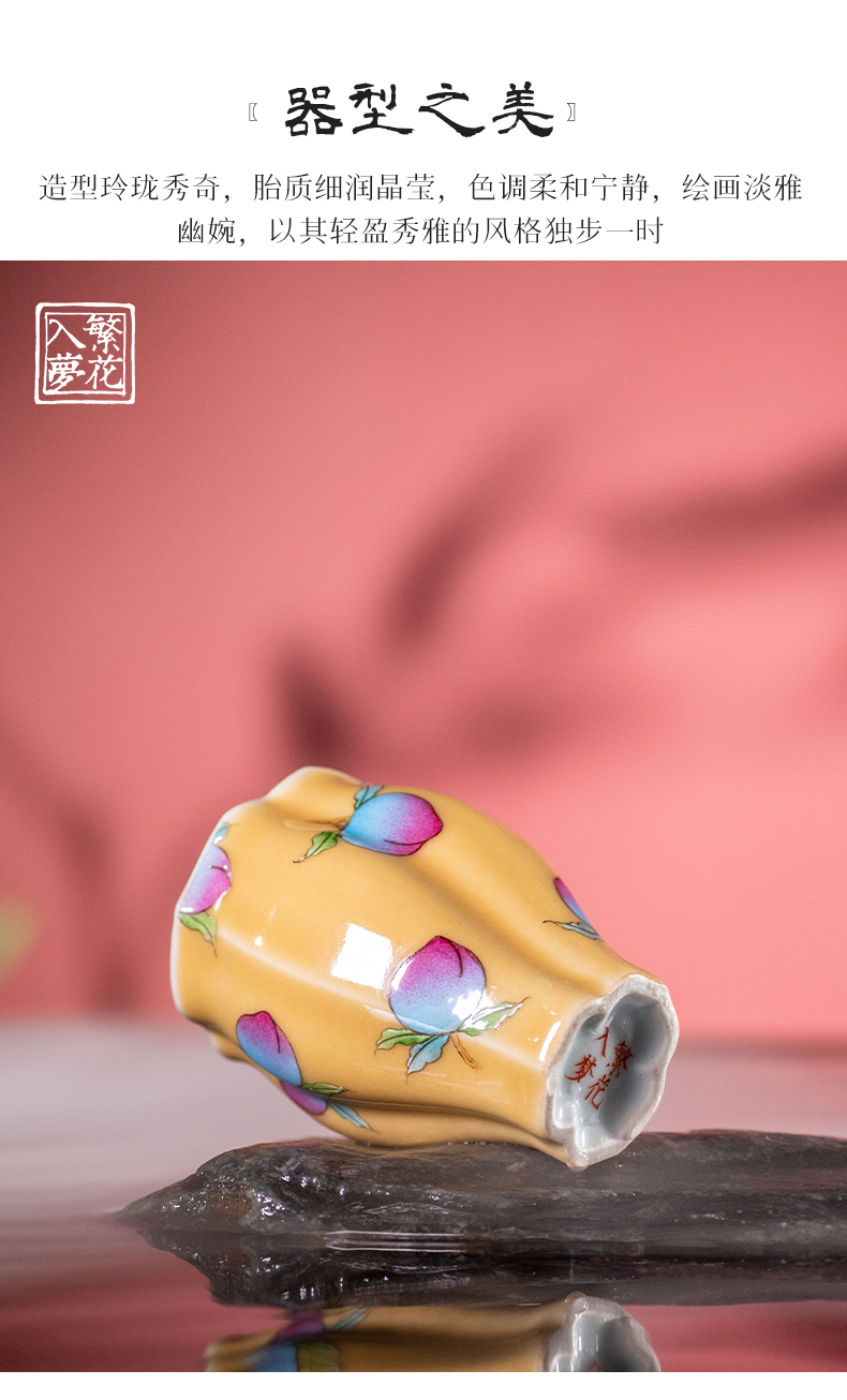 繁花入梦黄釉堇色丰桃小佛手杯