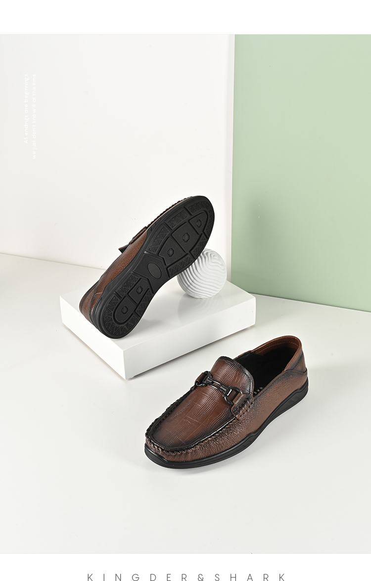 经典鲨2024年春季新款男士一脚蹬平底舒适商务皮鞋KW266-D26031
