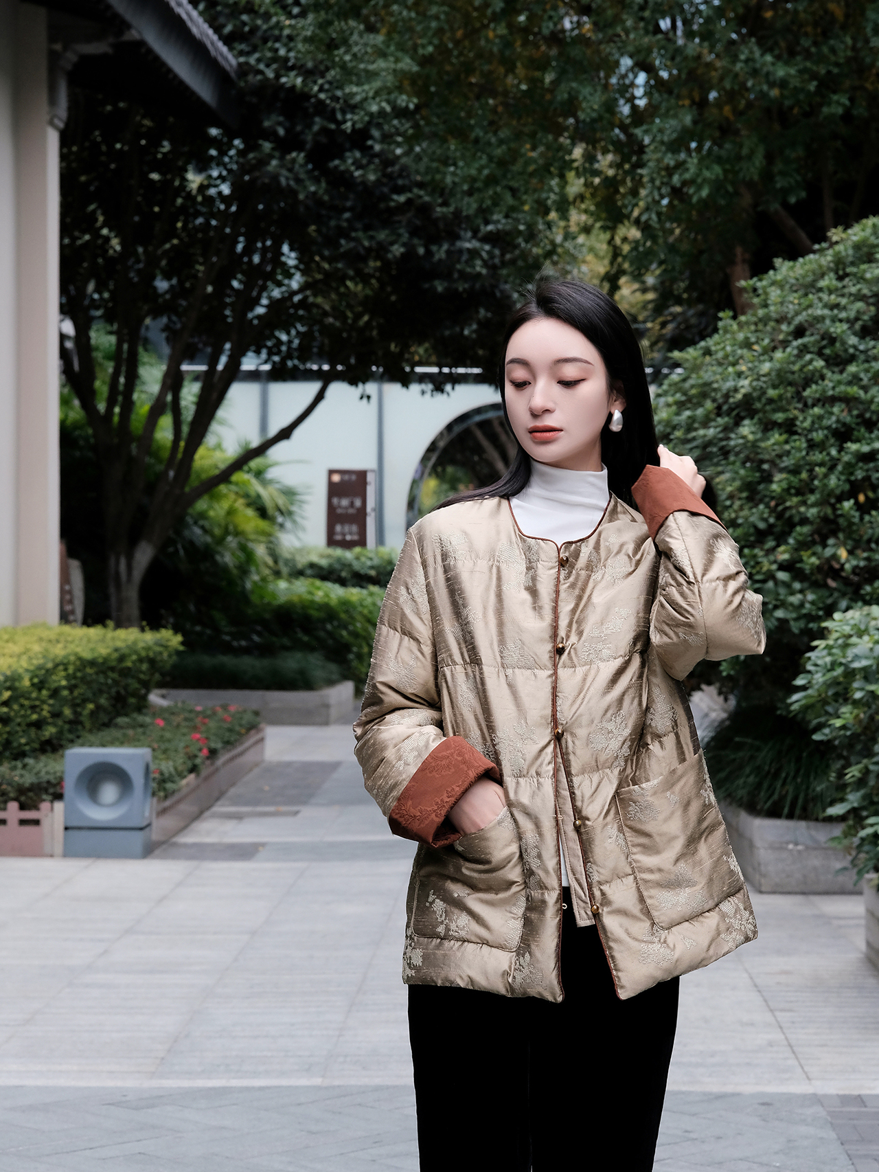 瑕疵|盛唐牡丹| 沉香棕双宫丝鹅绒服[特价品](特殊商品不退不换)
