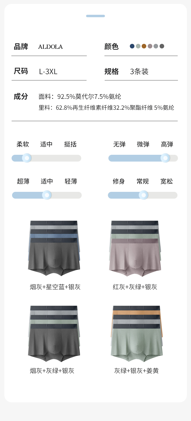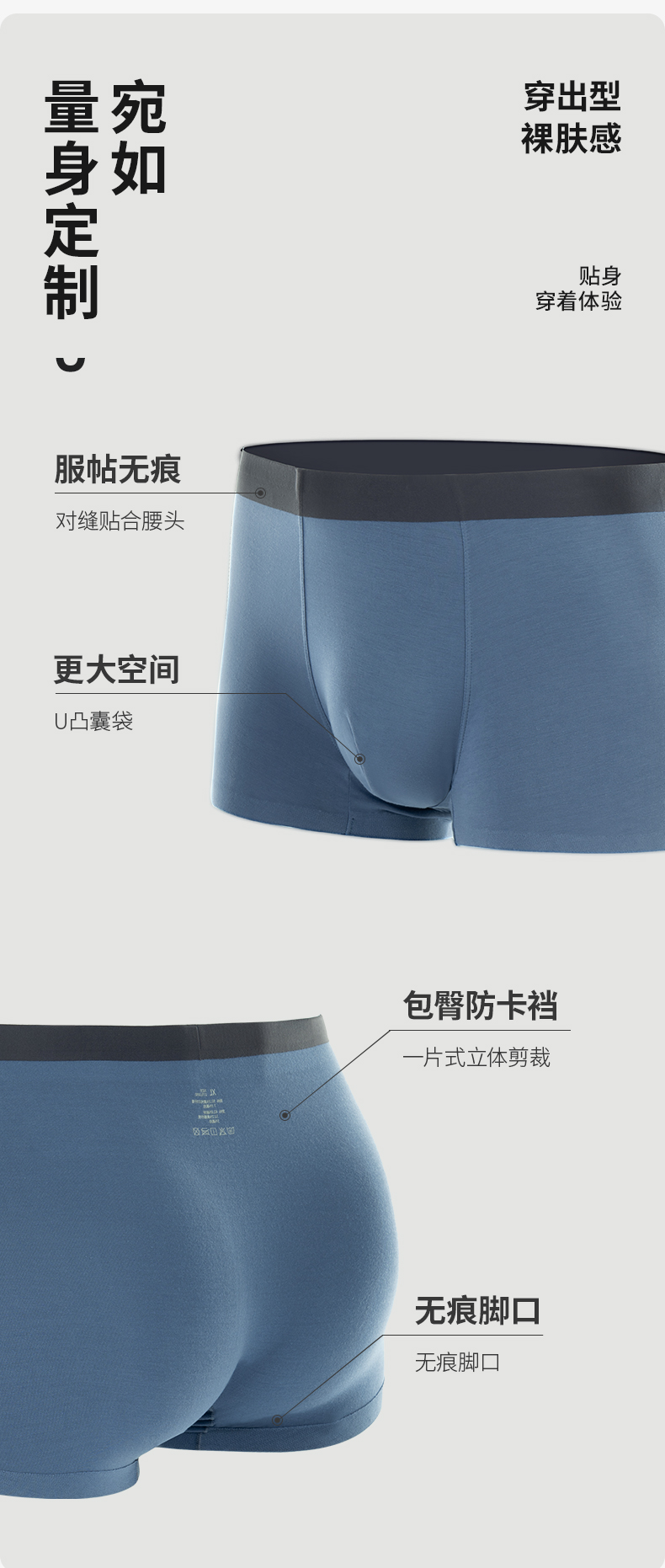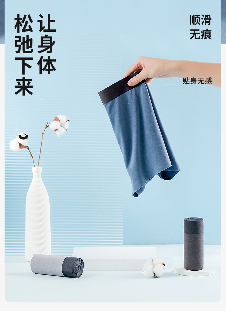 雅黛丽男士内裤50S莫代尔无痕抗菌底裆平角裤柔软亲肤四角短裤头