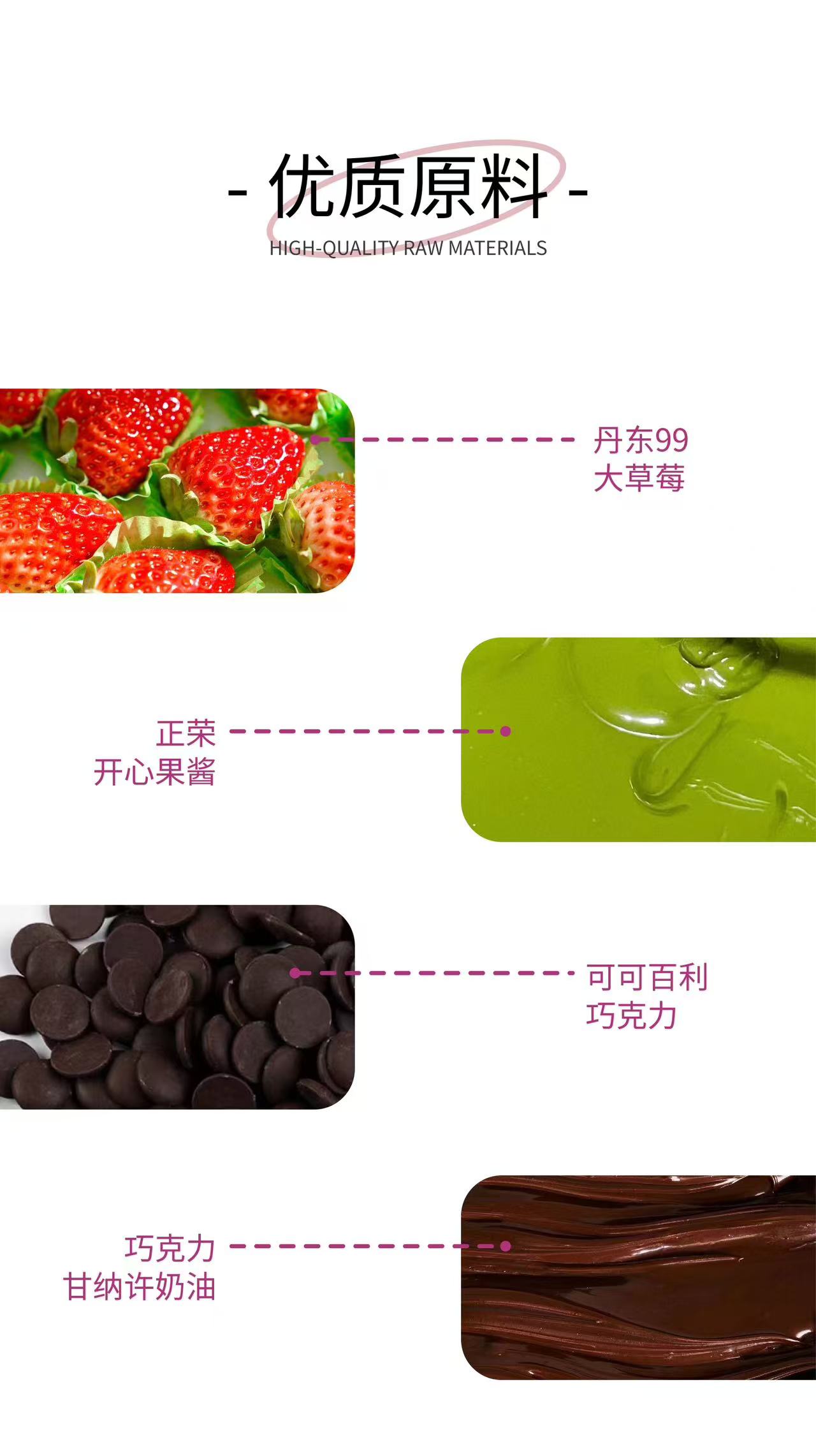 【开心果巧克力草莓】不额外添加一粒糖和一滴色素,所有的绿源自开心果本色,所有的甜源自巧克力本味