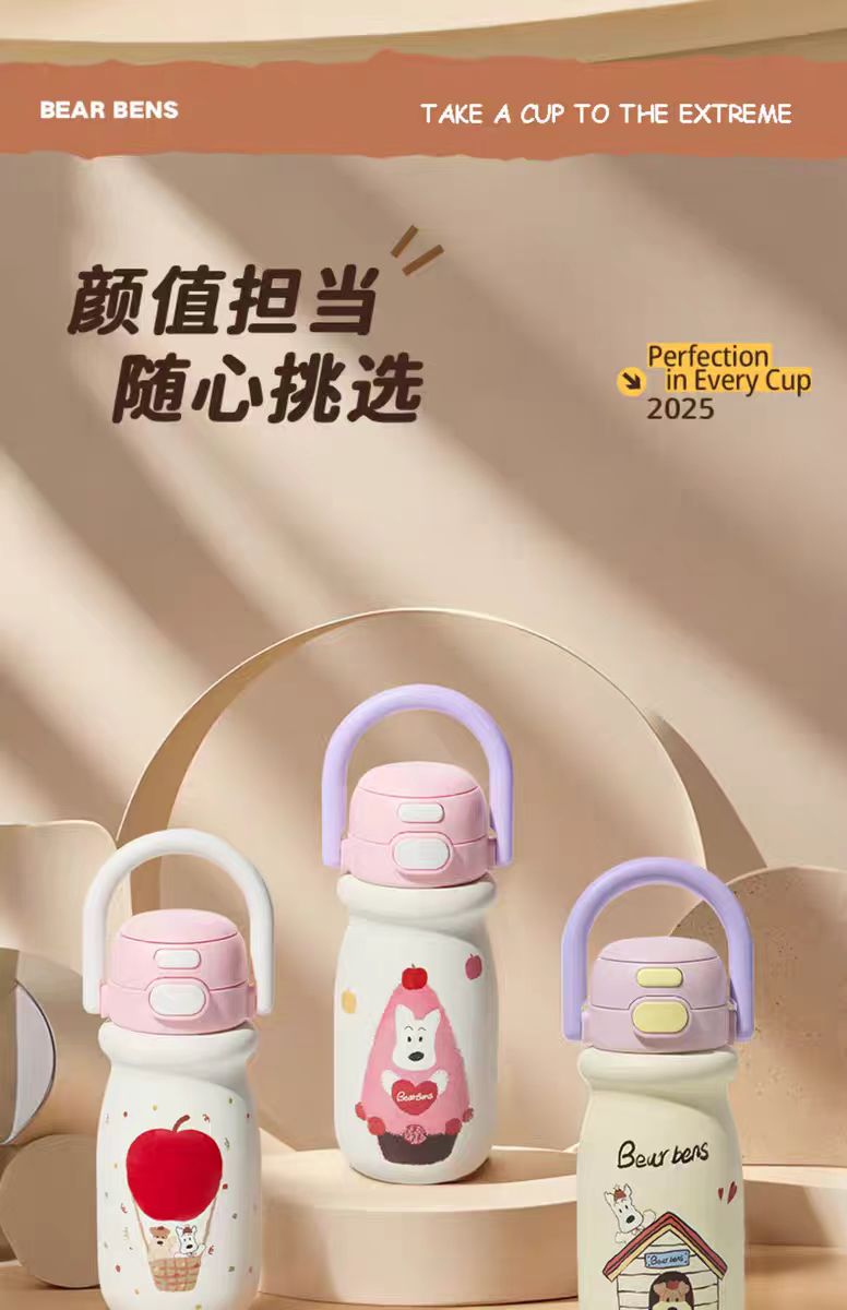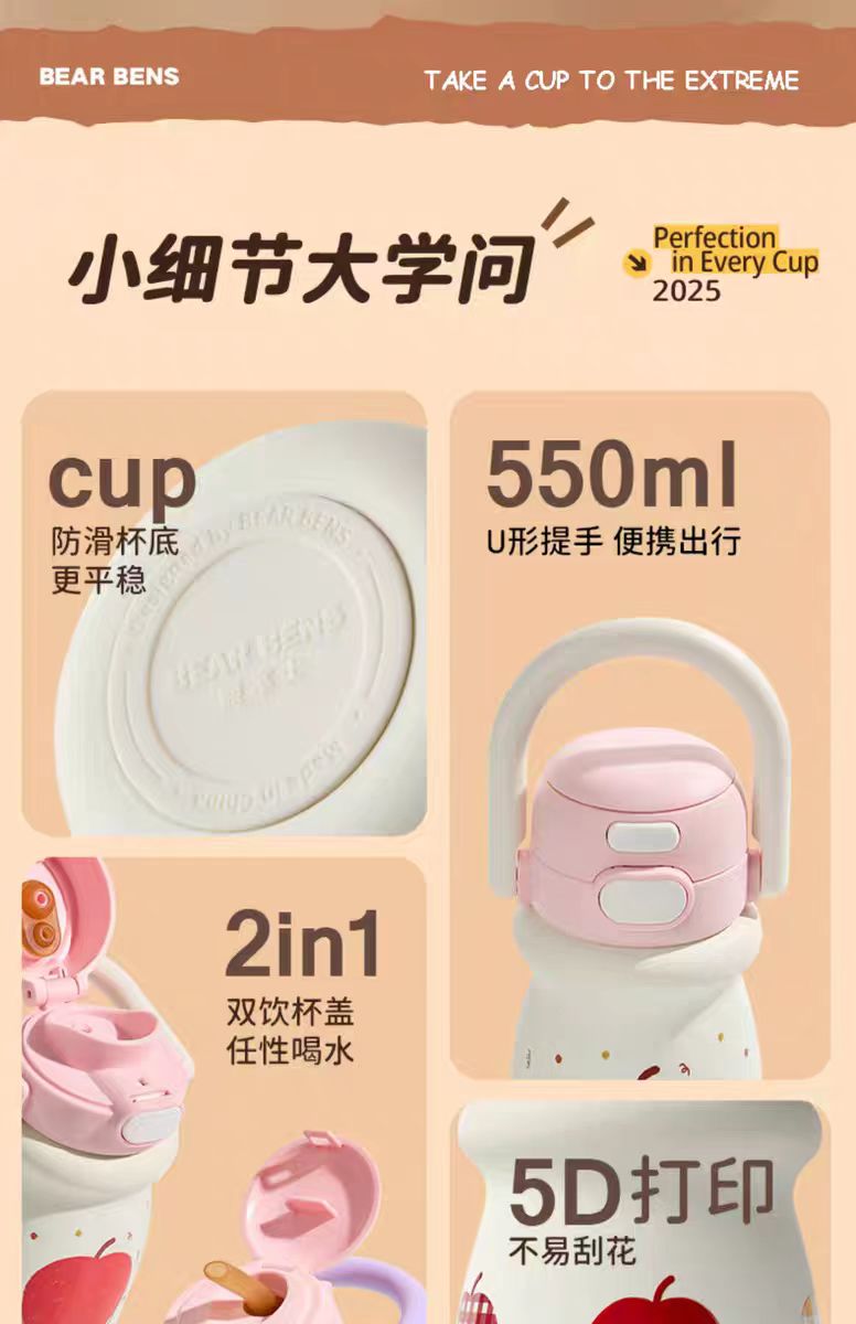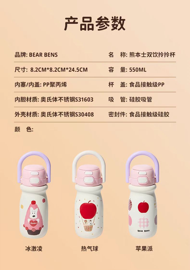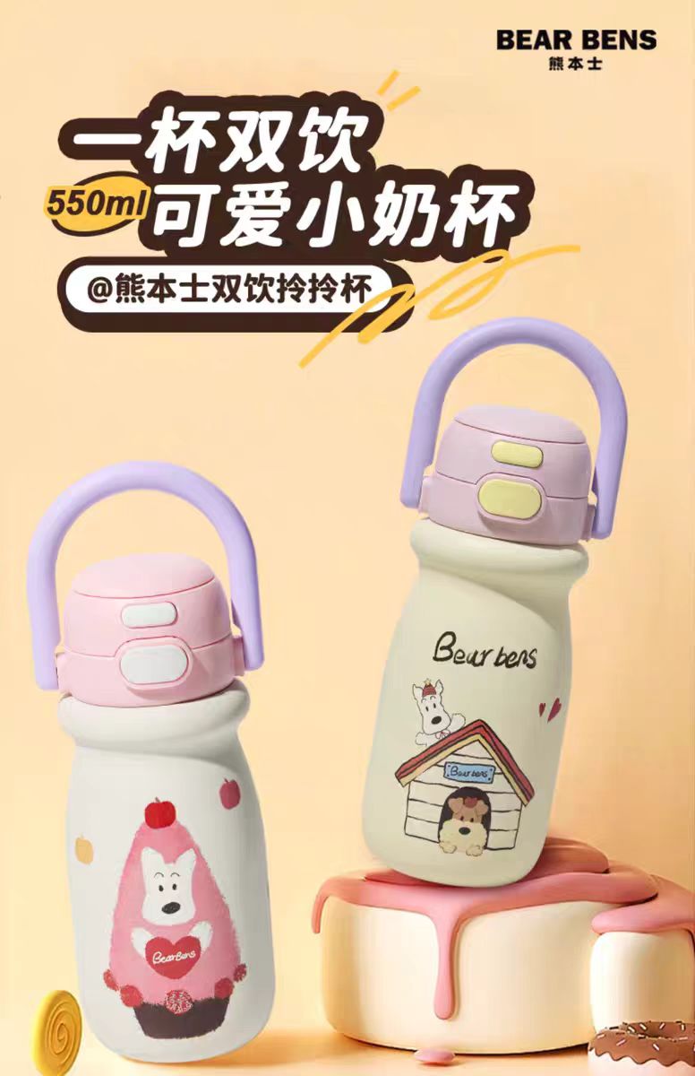 4楼Eubelle欧蓓 BEARBENS熊本士小奶杯保温杯550ml 双饮便携拎拎壶 吊牌价:89元 活动价:79元