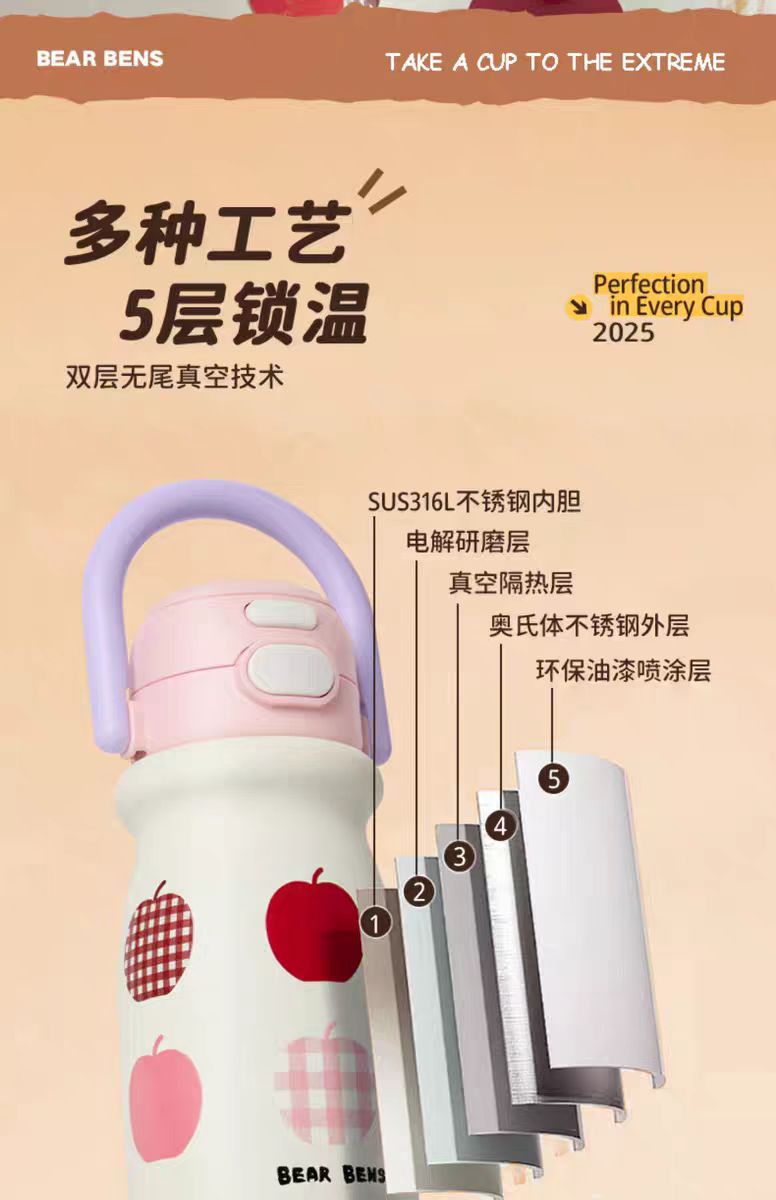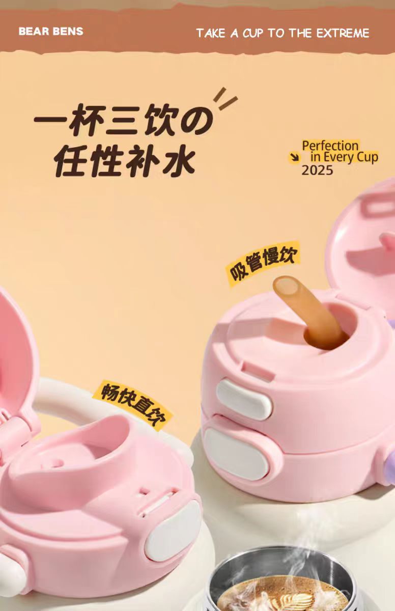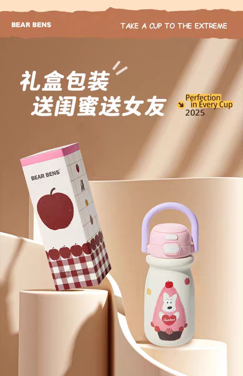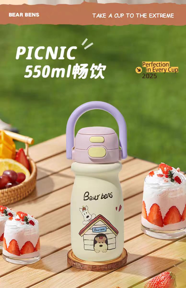 4楼Eubelle欧蓓 BEARBENS熊本士小奶杯保温杯550ml 双饮便携拎拎壶 吊牌价:89元 活动价:79元