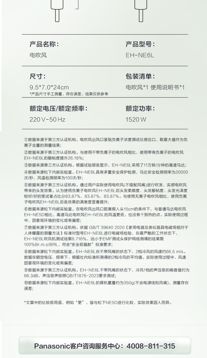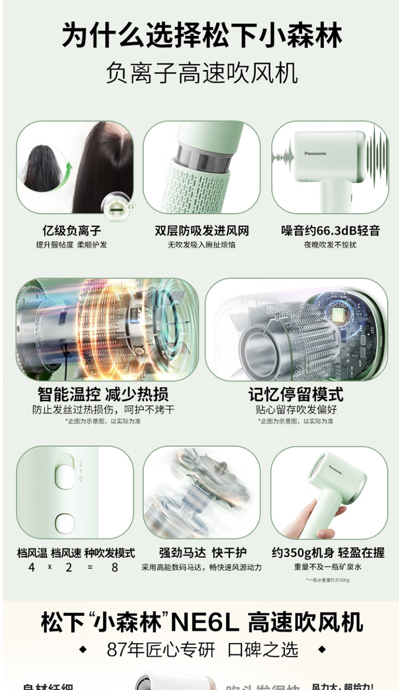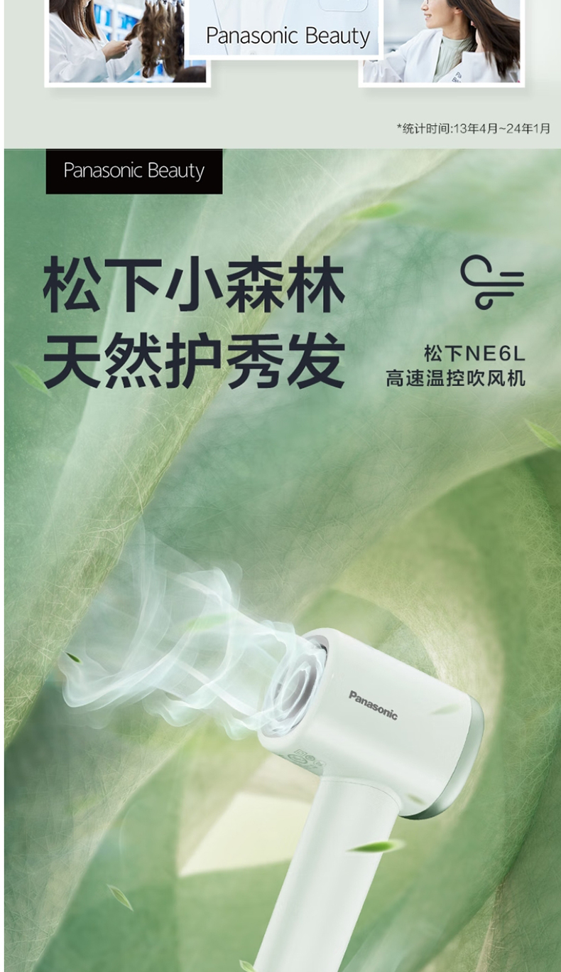 【春上新】10楼 松下(Panasonic)小森林电吹风机家用高速大功率速干负离子护发便携吹风筒NE6L 吊牌价349元 活动价259元