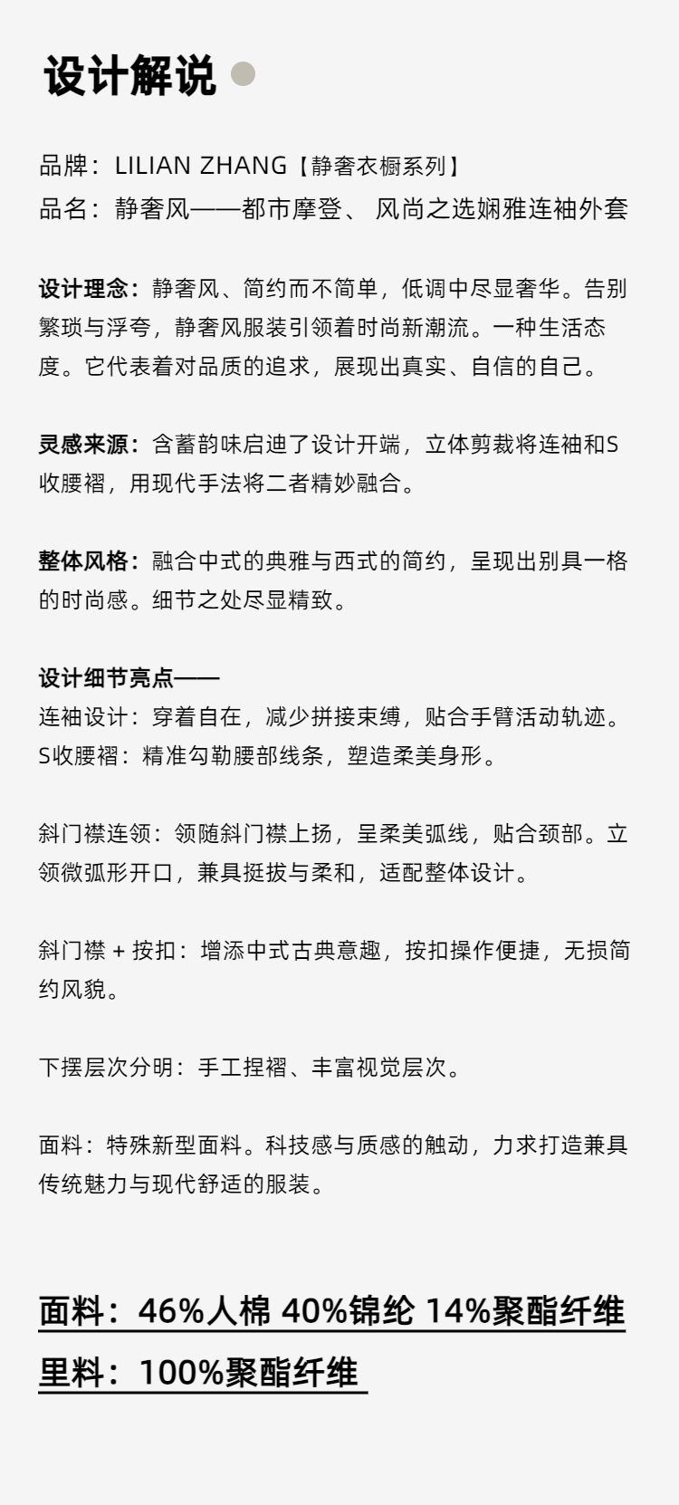 E-“定制”——静奢风 ——都市摩登——风尚之选—— 娴雅连袖外套 2405039