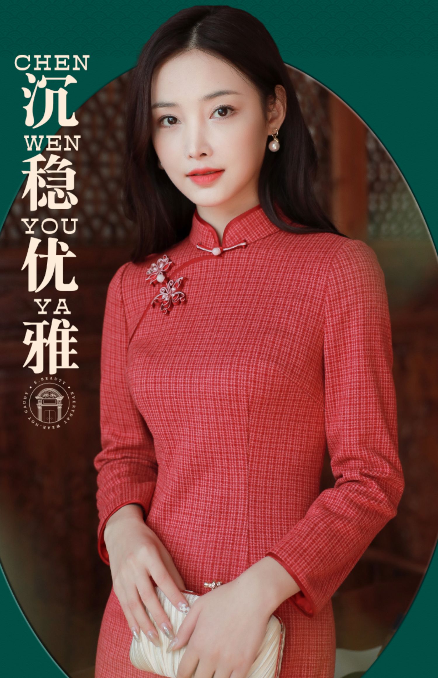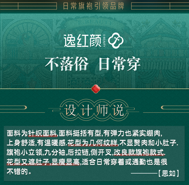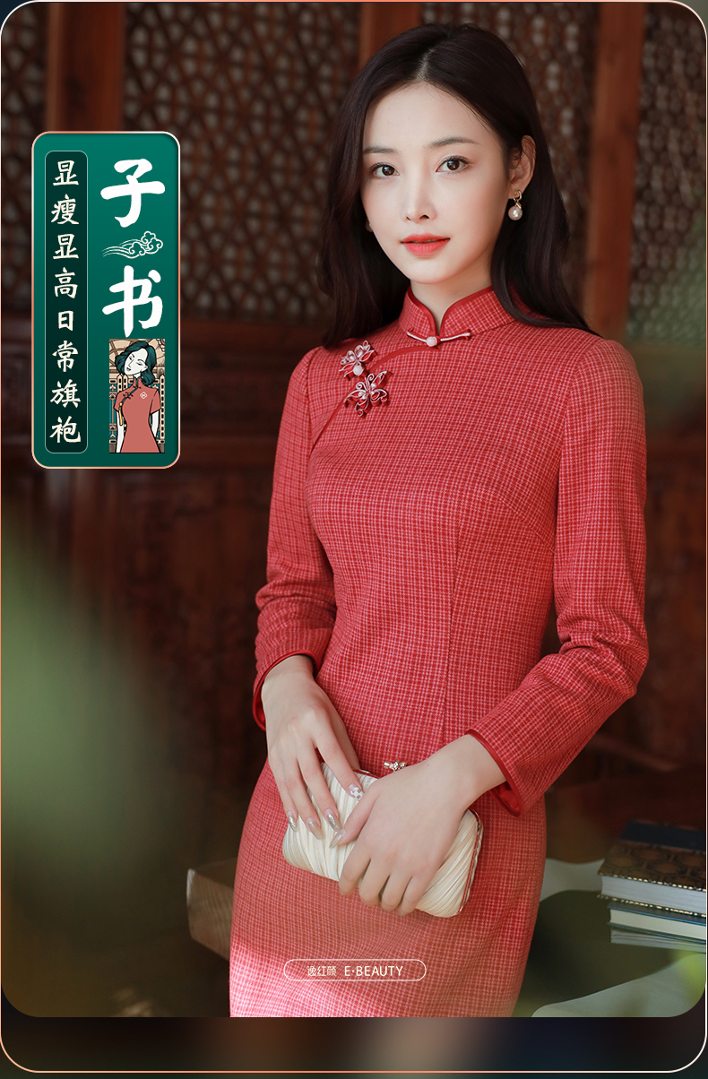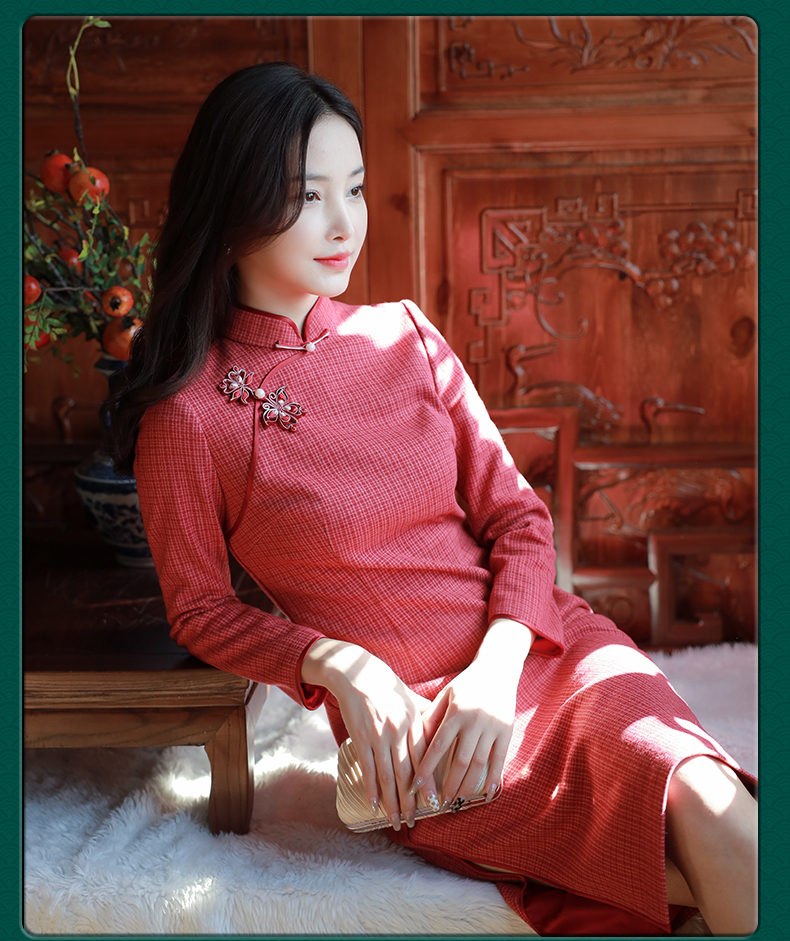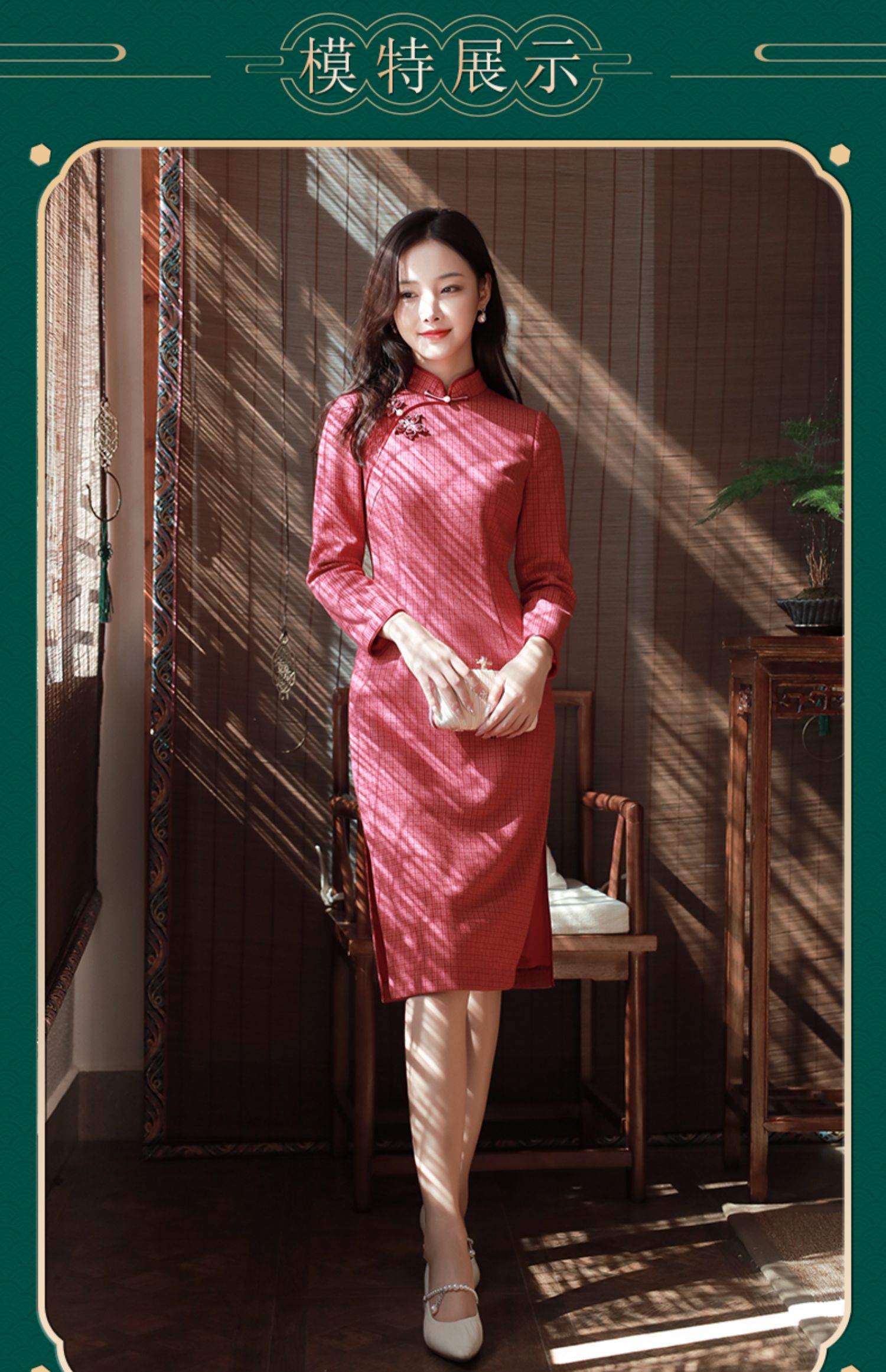 逸红颜旗袍2025年新款秋冬季 子书 针织弹力几何图案侧开叉传统复古