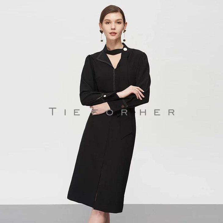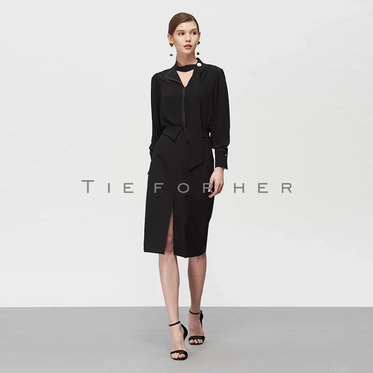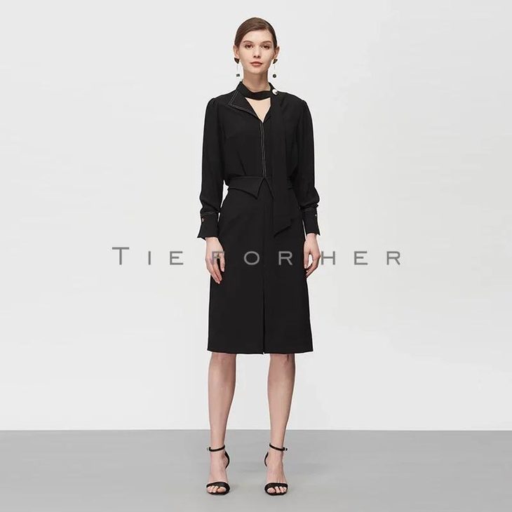 19SSDD20 炭黑色翻边包臀裙