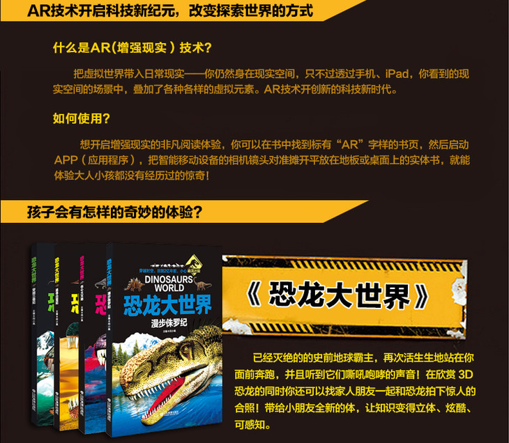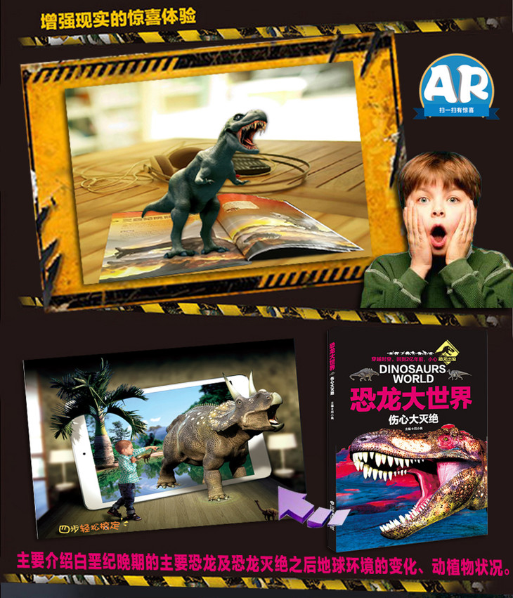 AR版 伤心大灭绝 恐龙大世界 恐龙书全彩图少儿科普动物故事百科最新AR技术可以看动画片的4D恐龙书