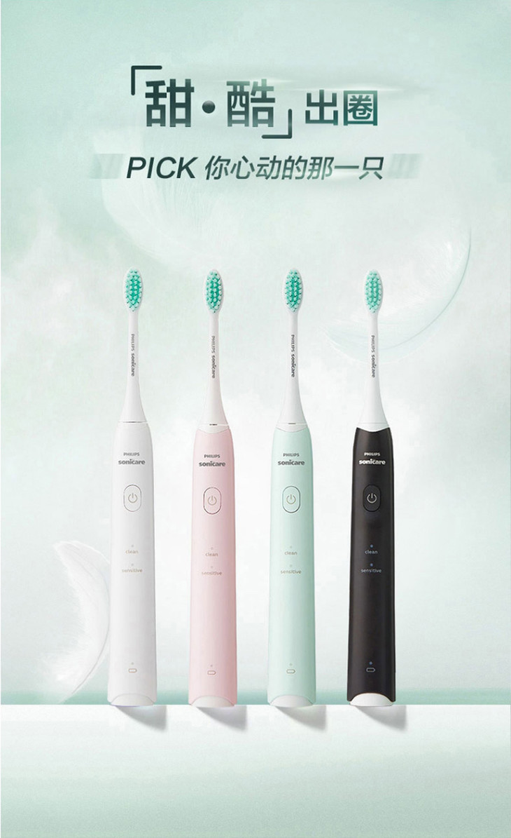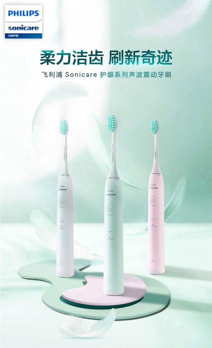 【品牌直发】飞利浦PHILIPS小羽刷声波震动充电式软毛牙刷HX2421情侣款