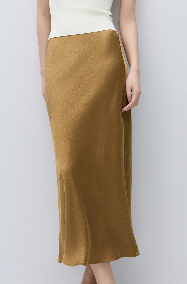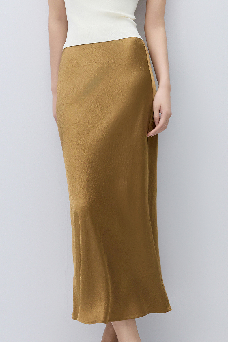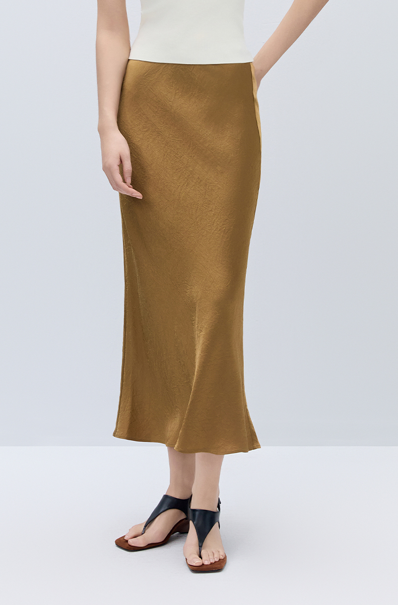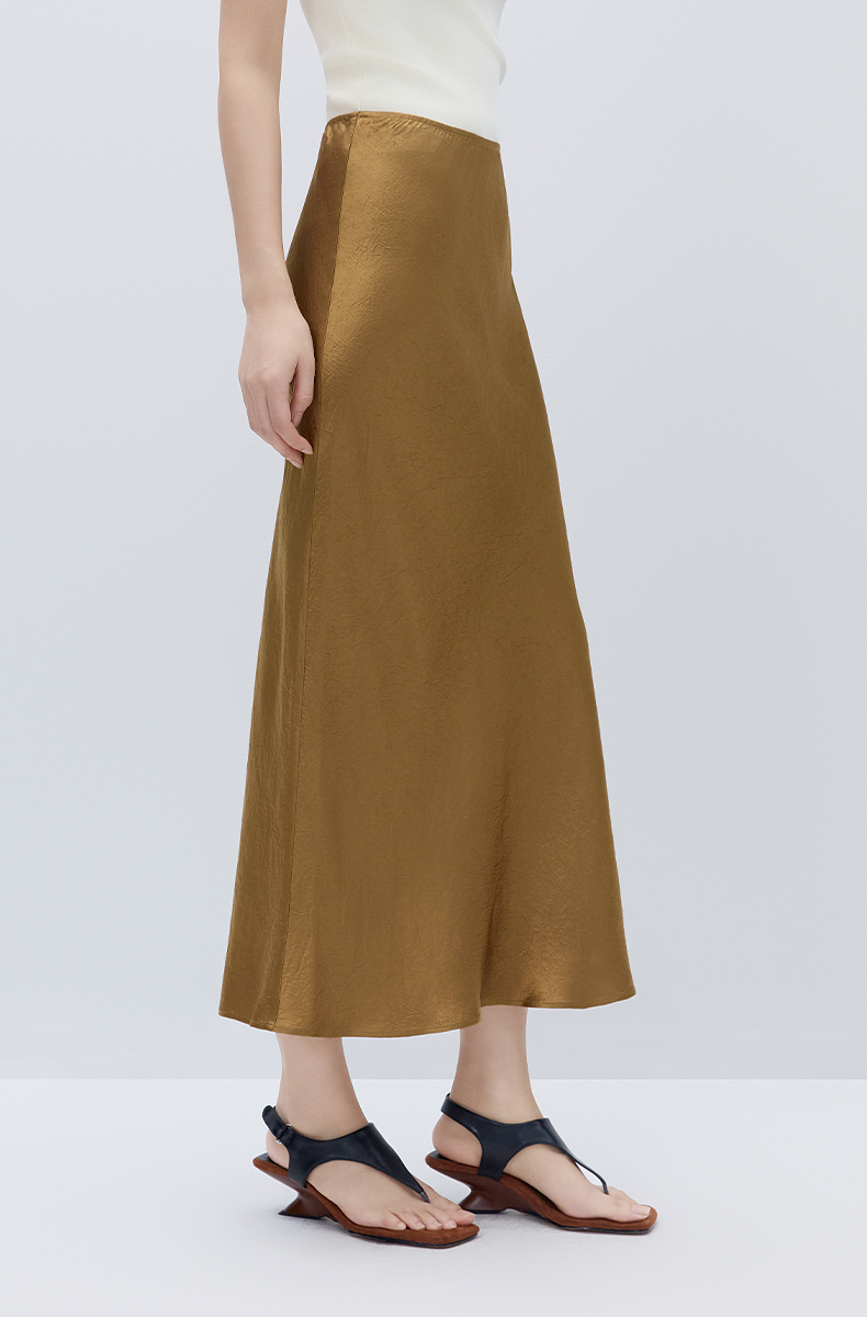 商场同款naivee纳薇25春简约自在流光醋酸半身裙松紧腰黑色女251273281