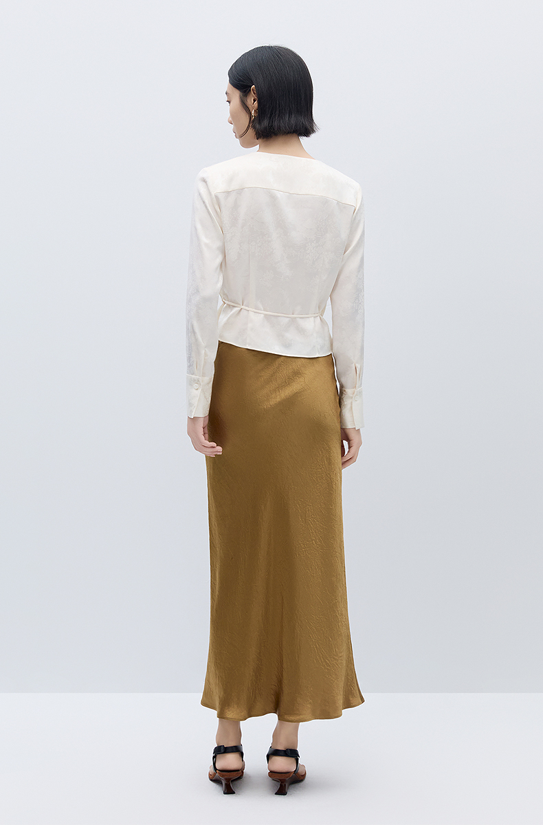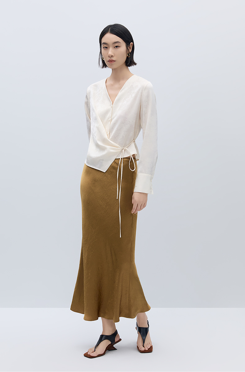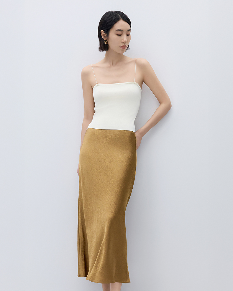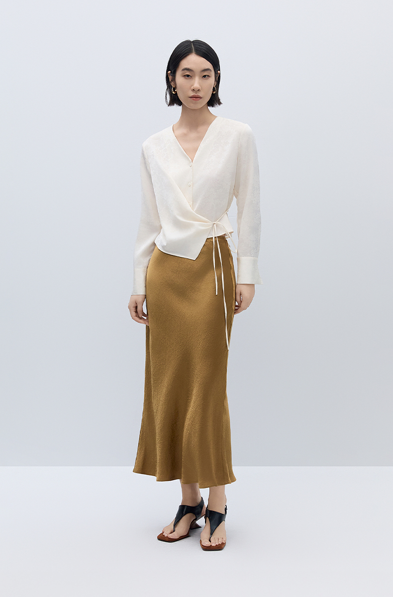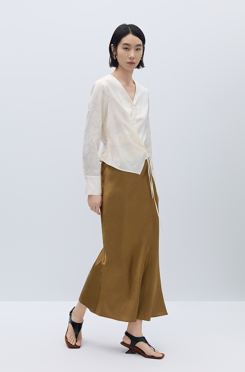 商场同款naivee纳薇25春简约自在流光醋酸半身裙松紧腰黑色女251273281