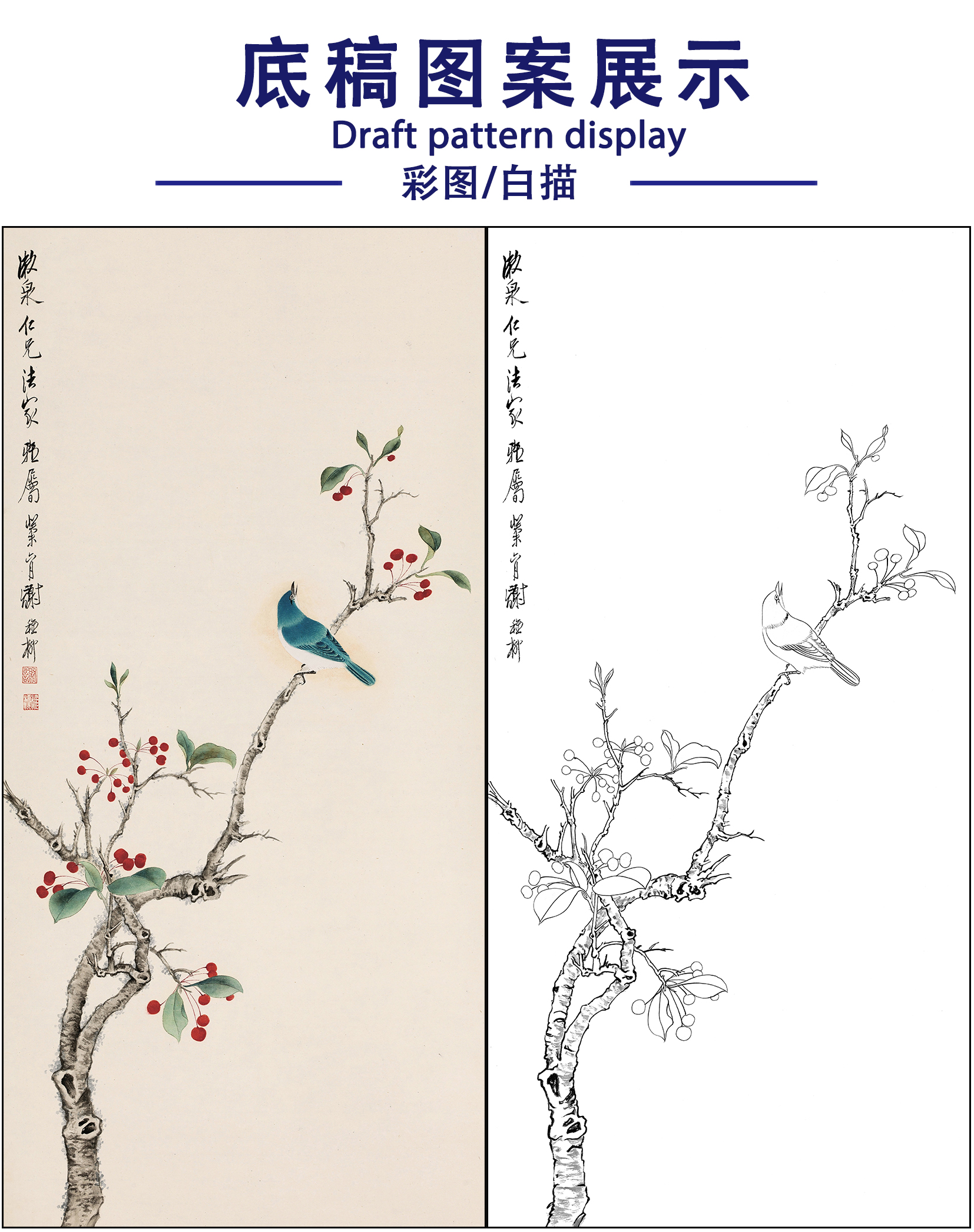 谢稚柳花鸟工笔画白描底稿《果熟来禽图》临摹勾线高清打印稿XZ56