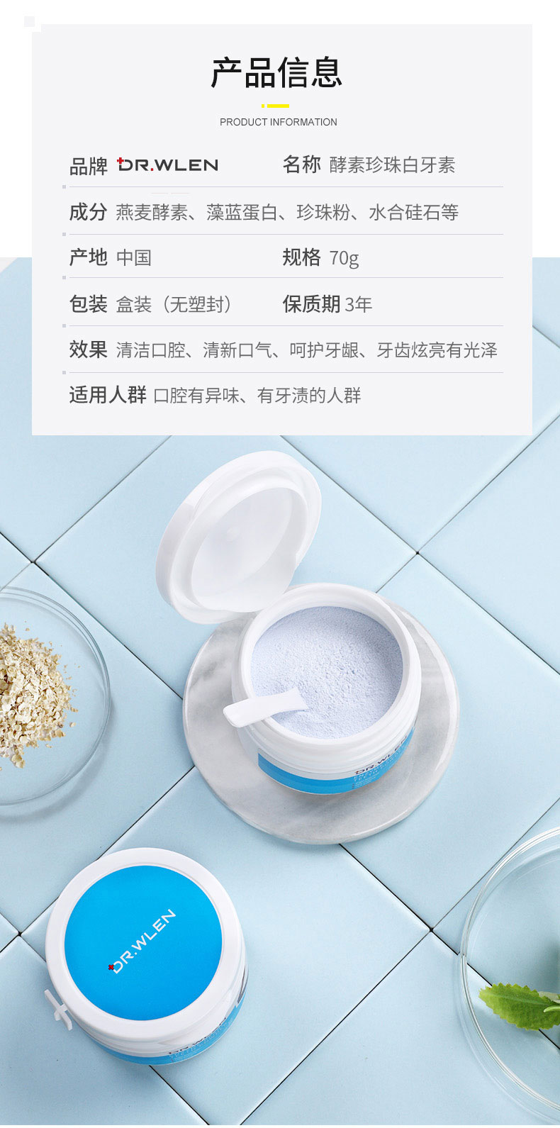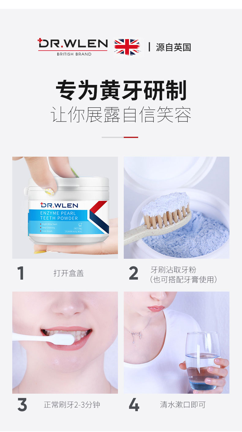 【张嘉倪极力推荐】迪王酵素珍珠白牙素50g/瓶深沉清洁去黄洁白牙渍牙垢呵护牙釉质牙龈清新口气专为黄牙研制让你展露自信笑容