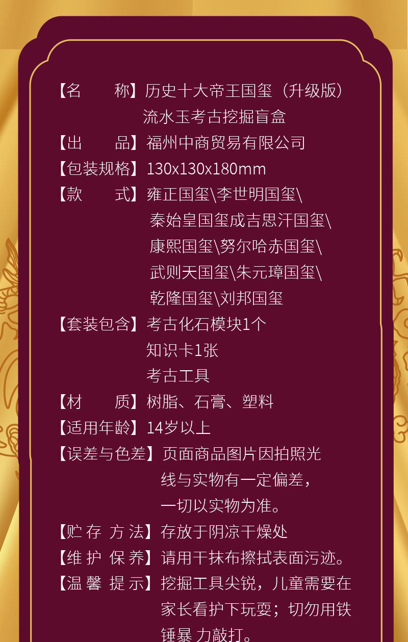 【陛下请登基帝王国玺】暑假玩具匹诺考古挖掘盲盒帝王国玺古代皇帝玉玺流水玉手工挖掘宝石玩具