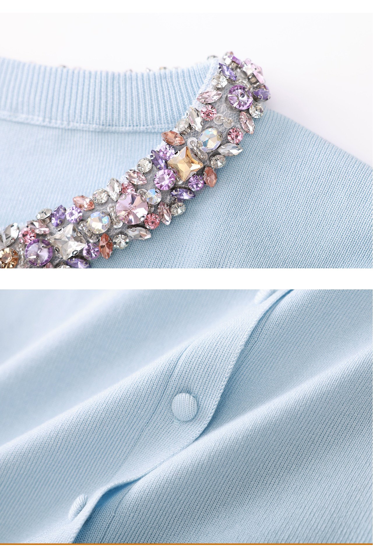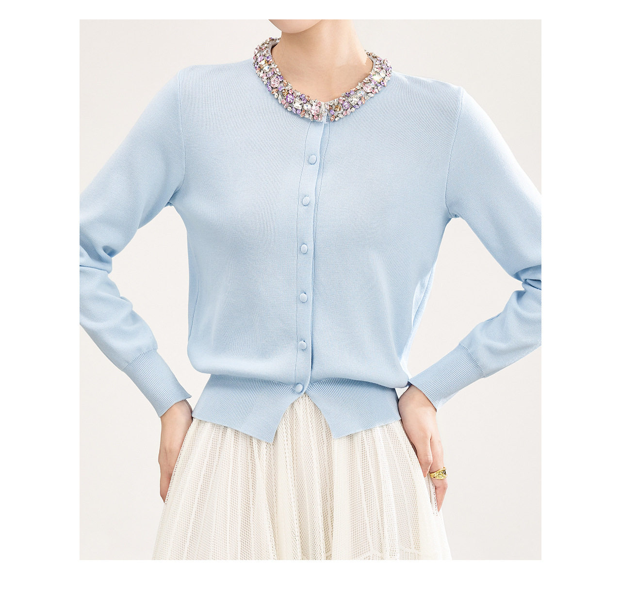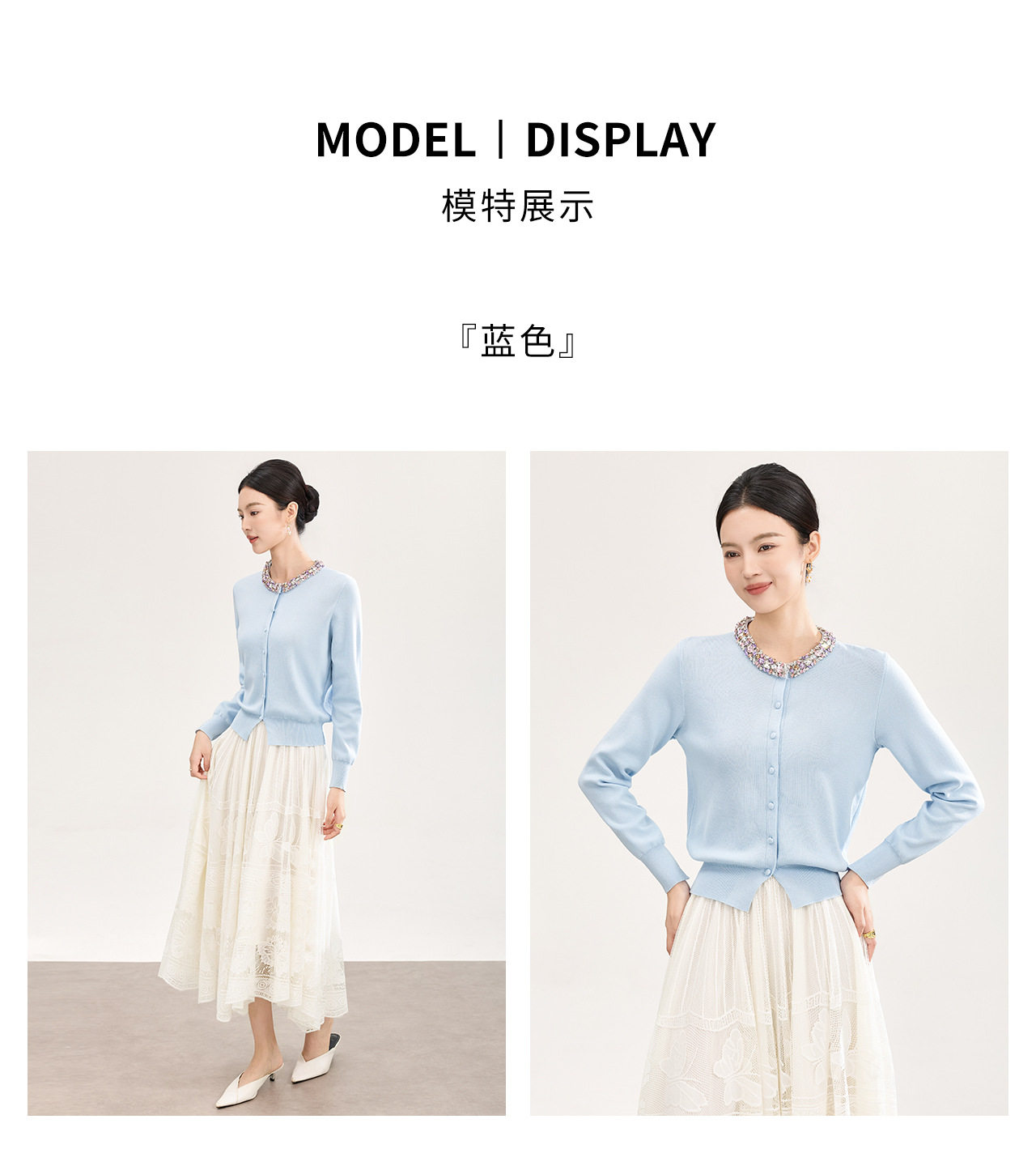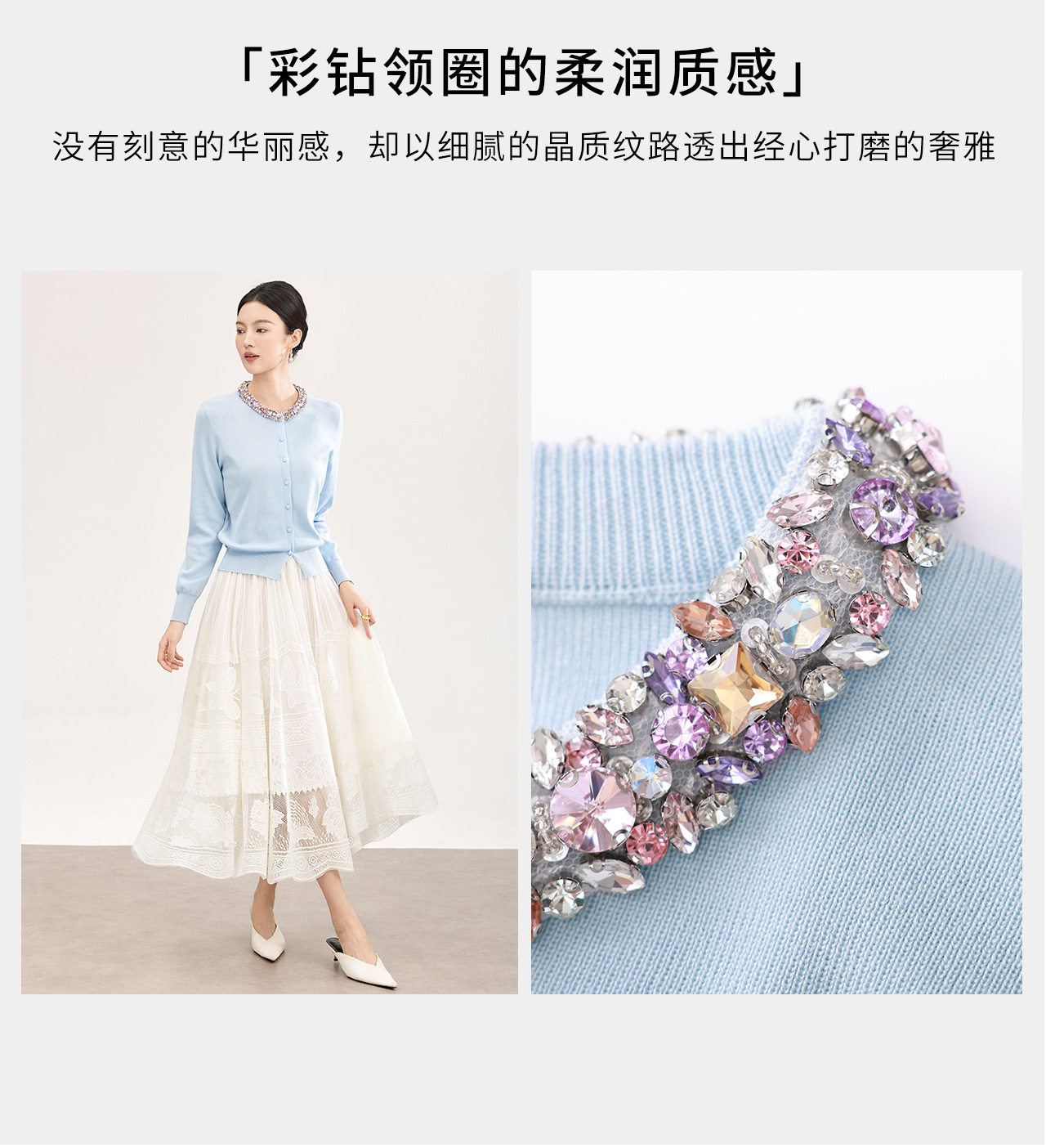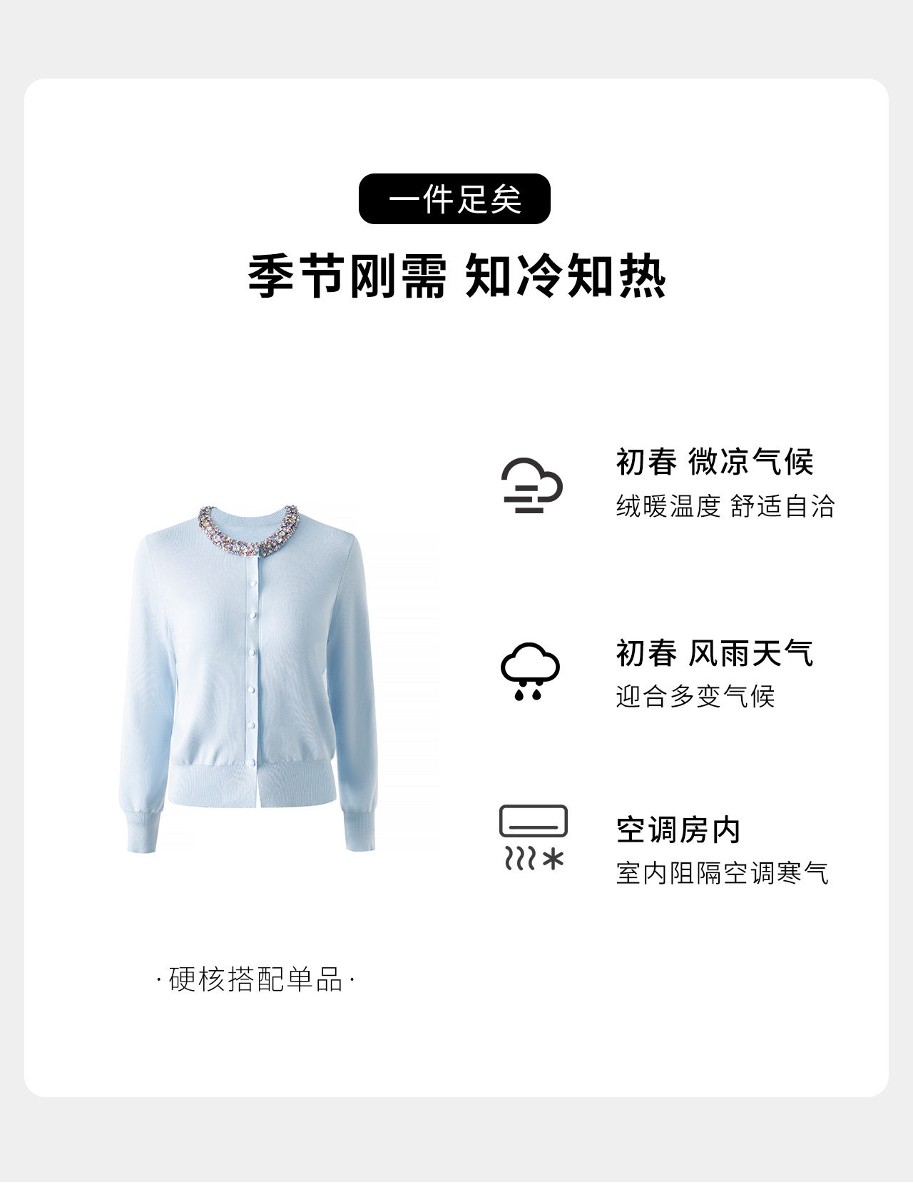 「高货wl」全新升级【铂金会员220/天猫289/差价69】(02357)洛诗琳镶钻天丝坑条针织开衫2026早春气质高弹短款上衣女