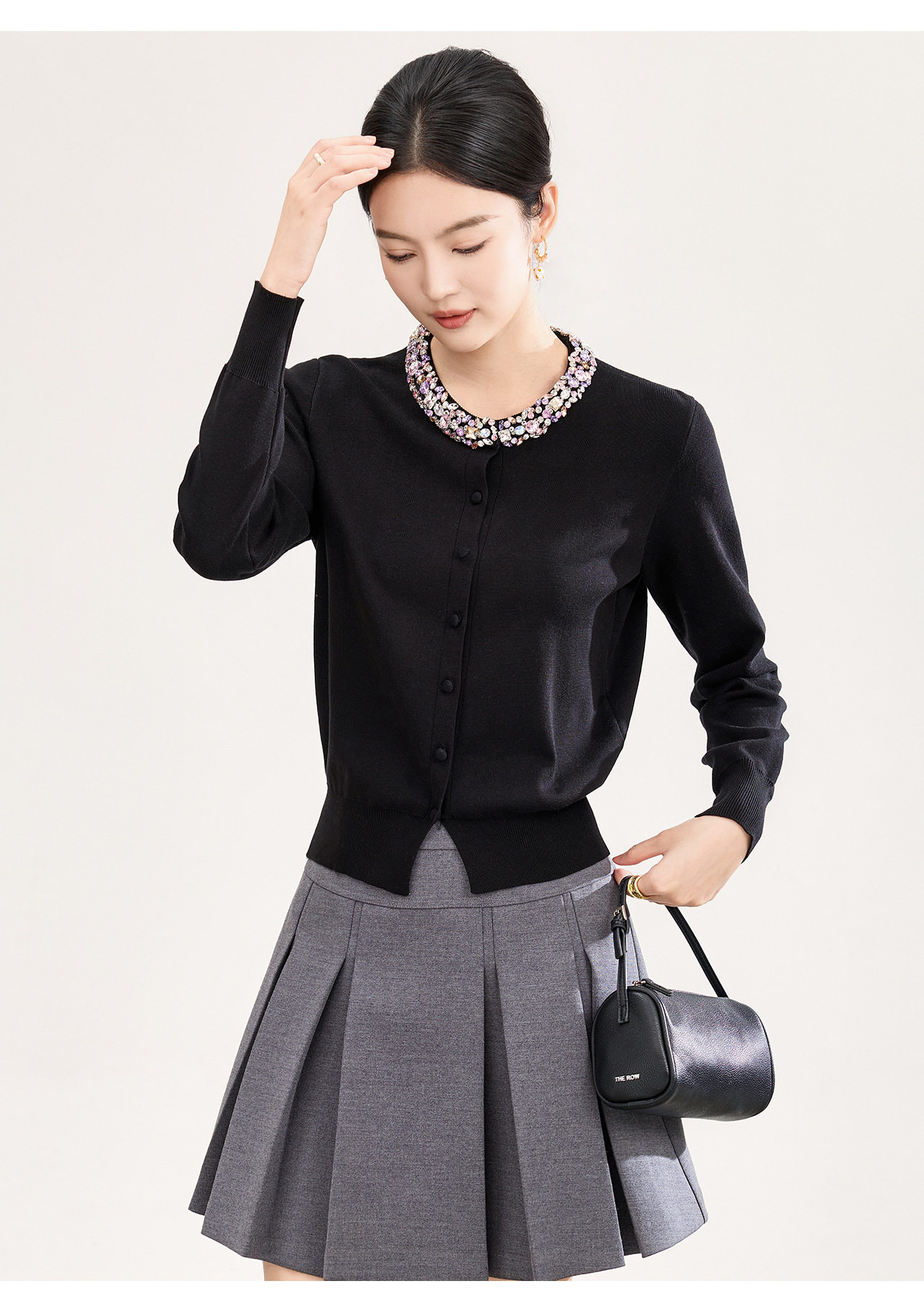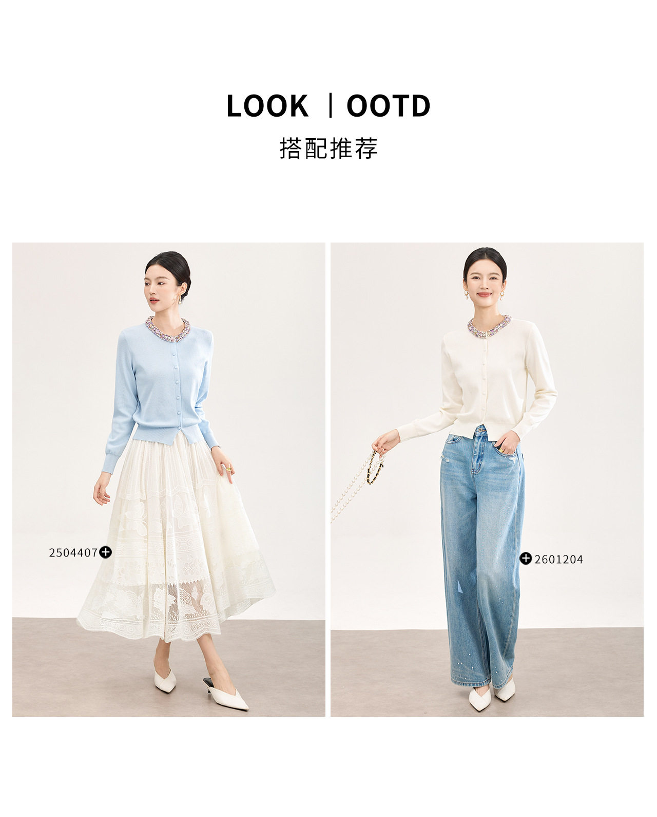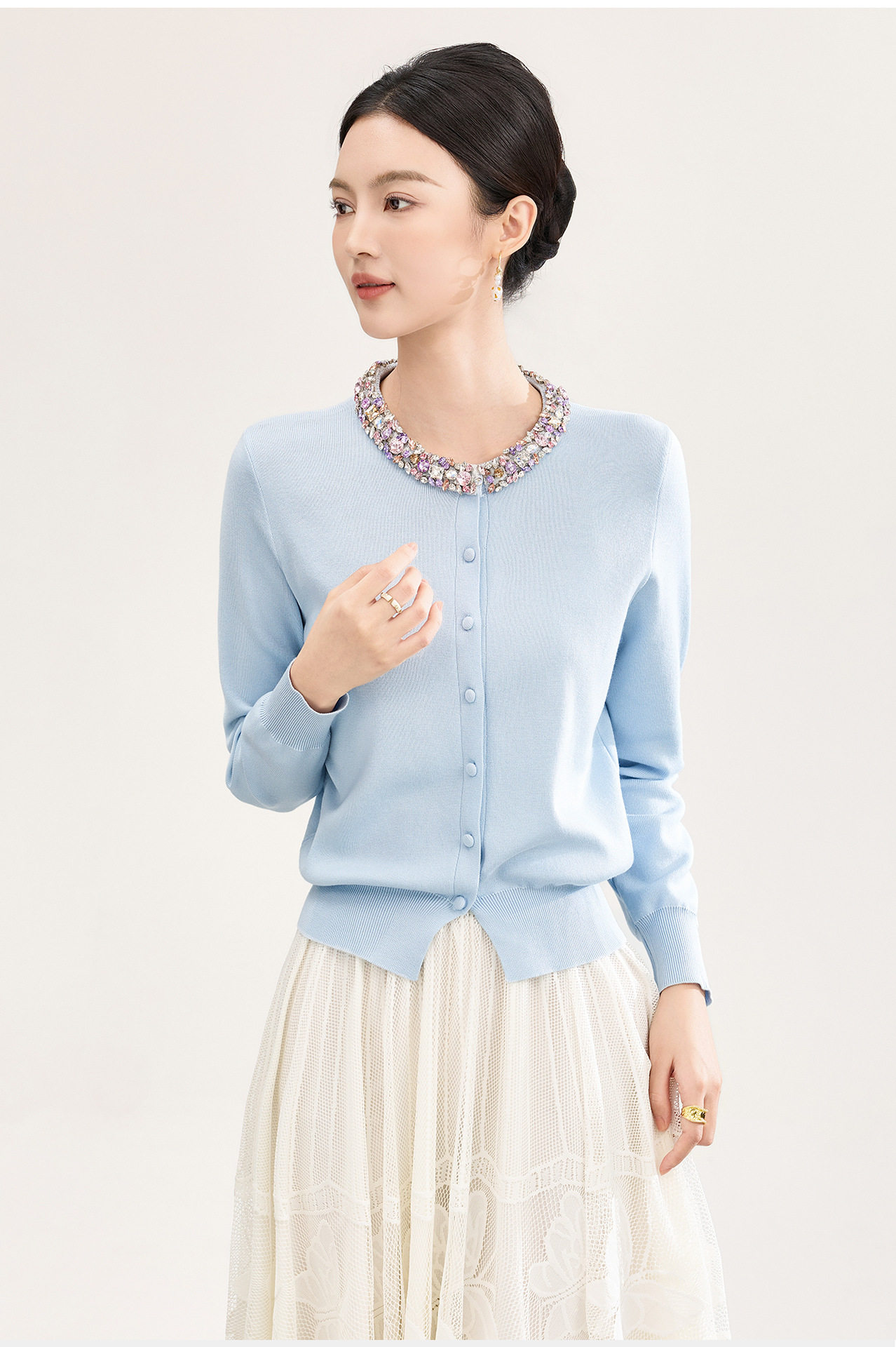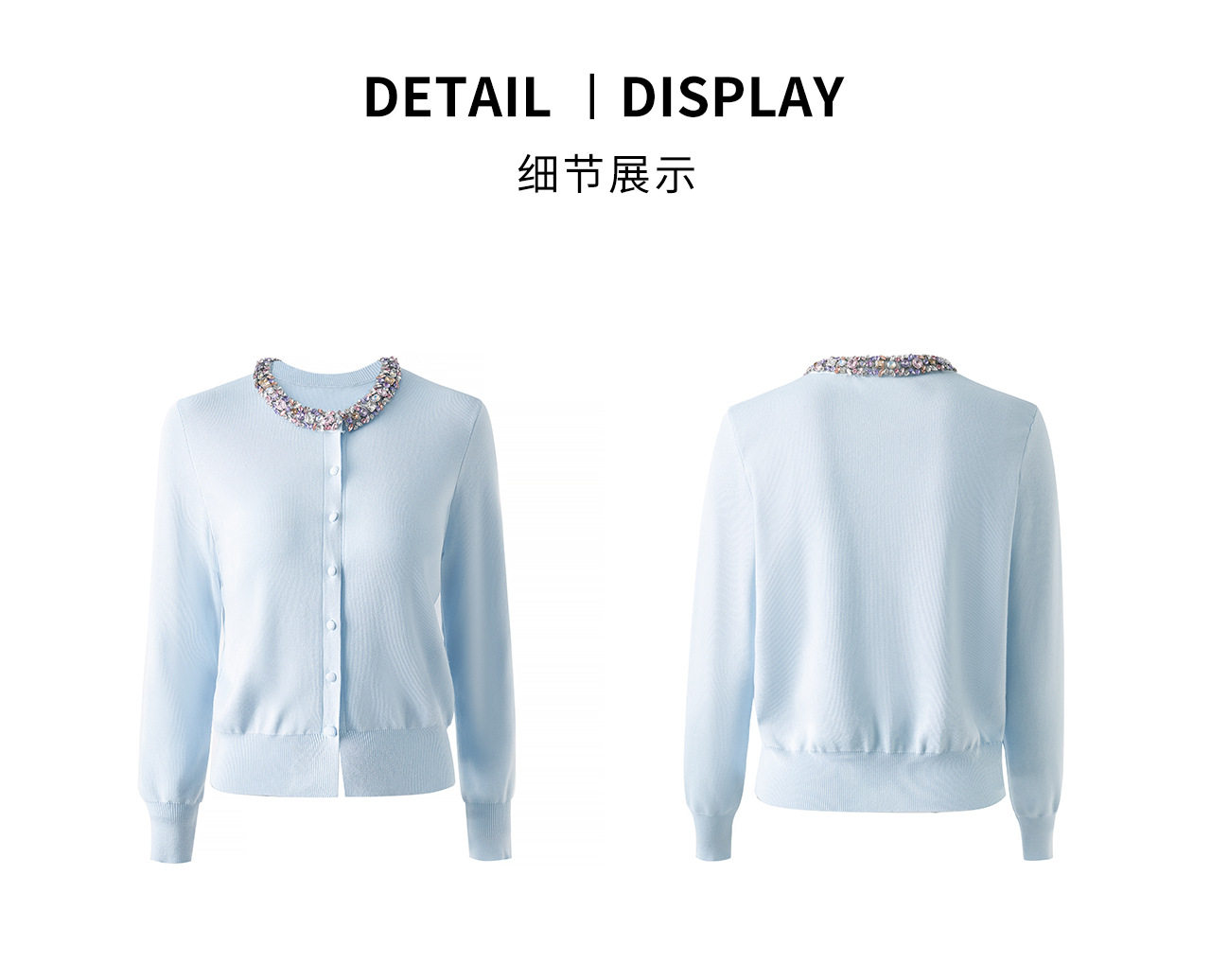 「高货wl」全新升级【铂金会员220/天猫289/差价69】(02357)洛诗琳镶钻天丝坑条针织开衫2026早春气质高弹短款上衣女