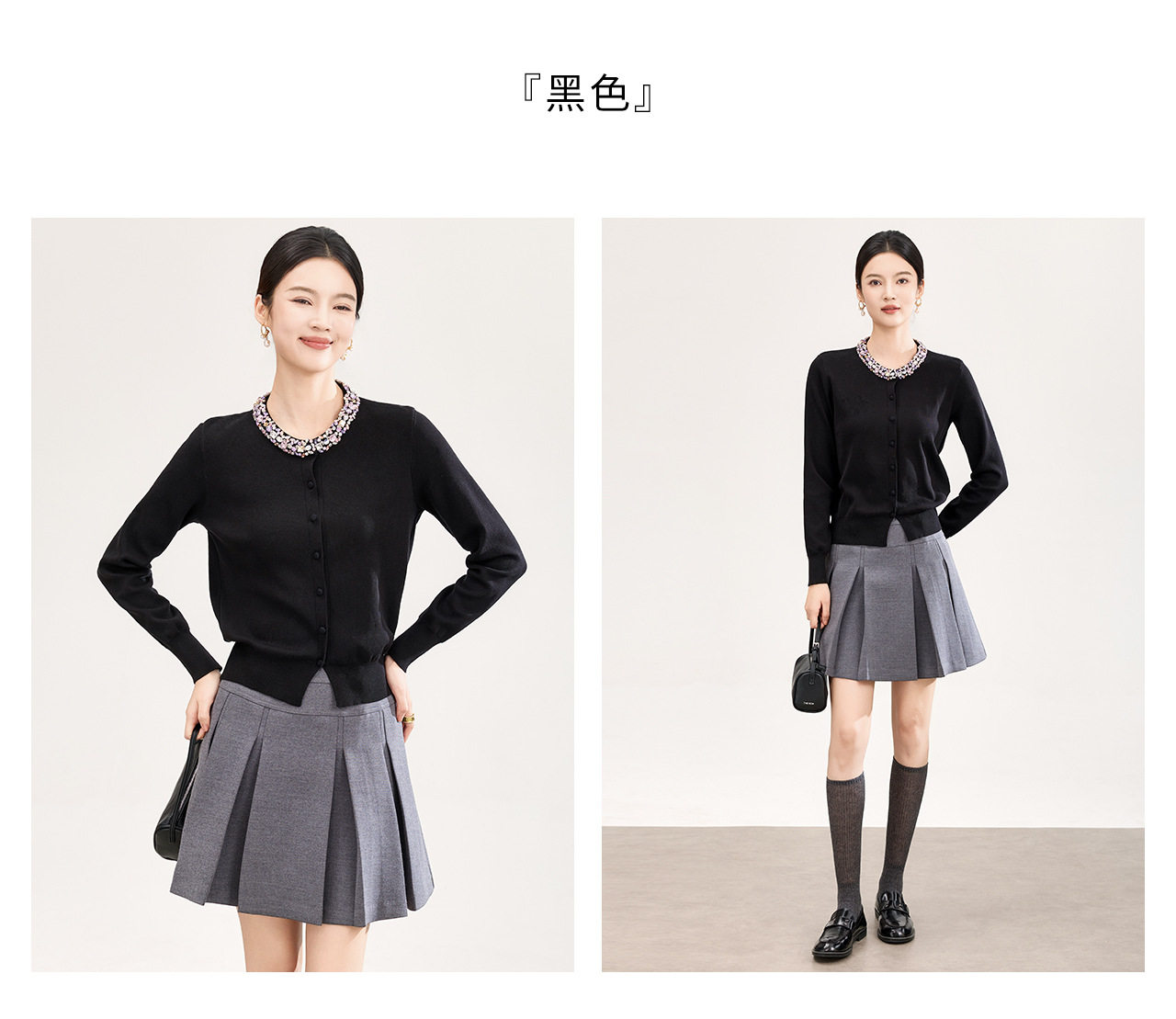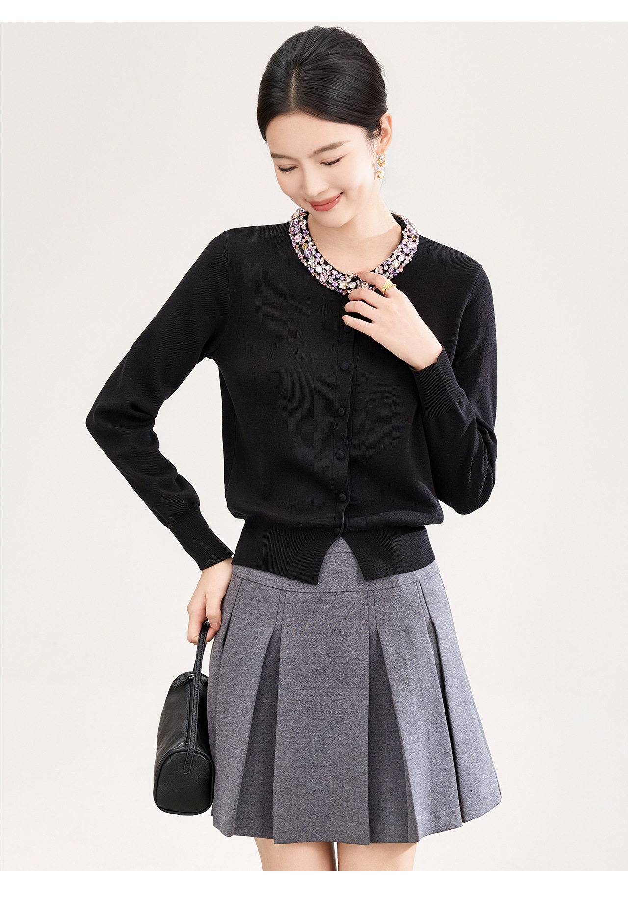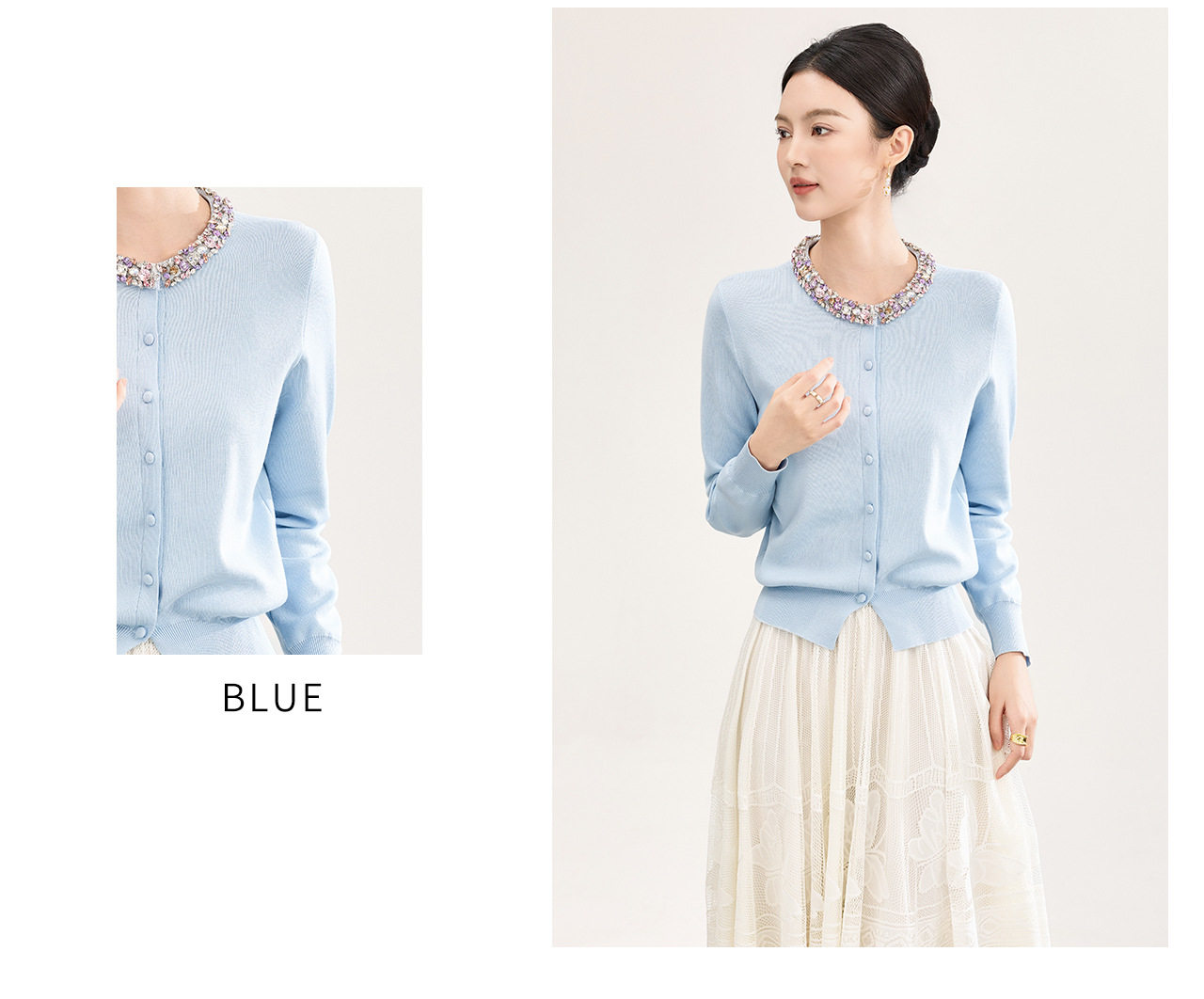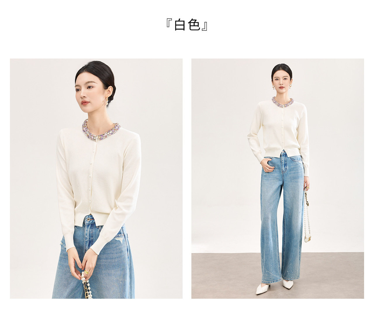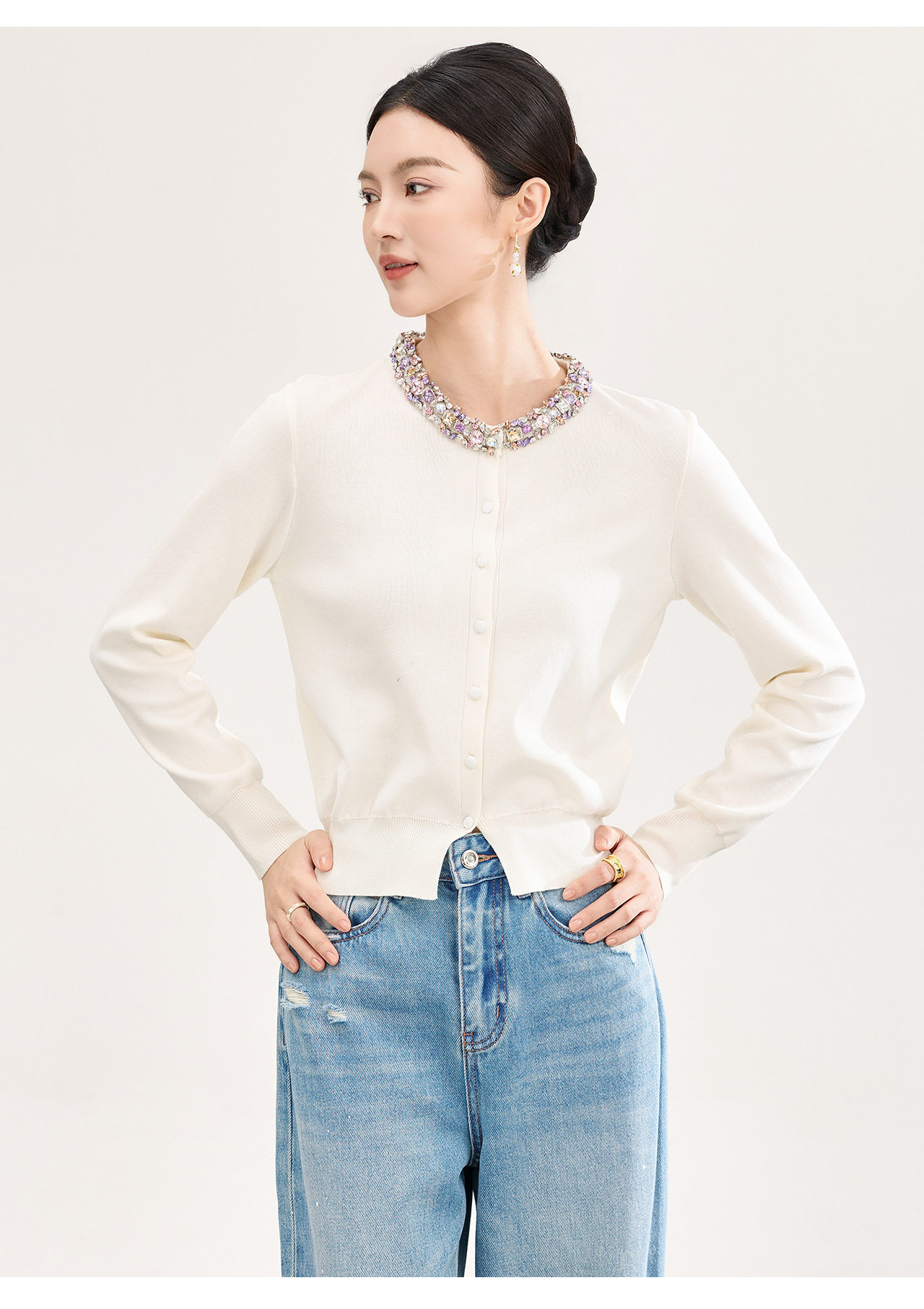 「高货wl」全新升级【铂金会员220/天猫289/差价69】(02357)洛诗琳镶钻天丝坑条针织开衫2026早春气质高弹短款上衣女