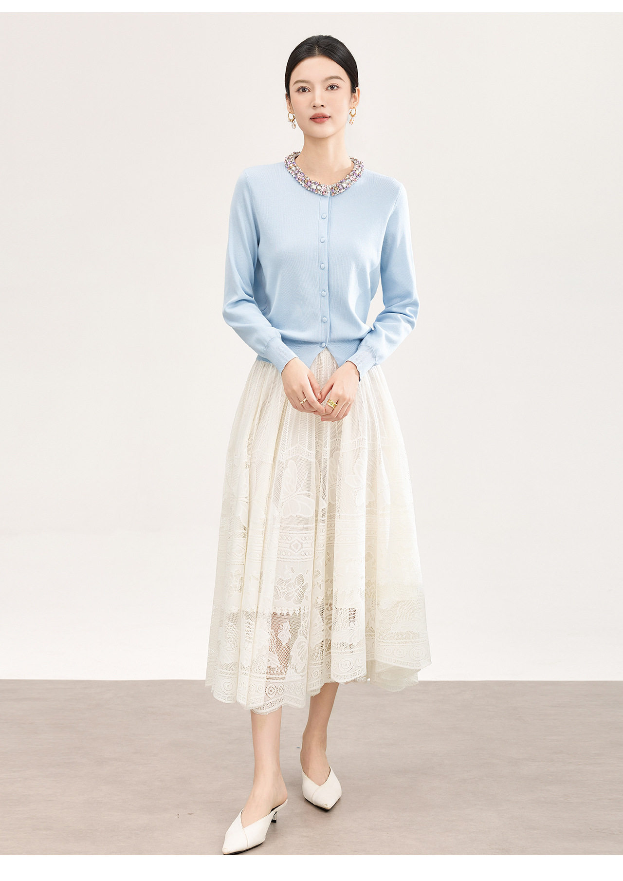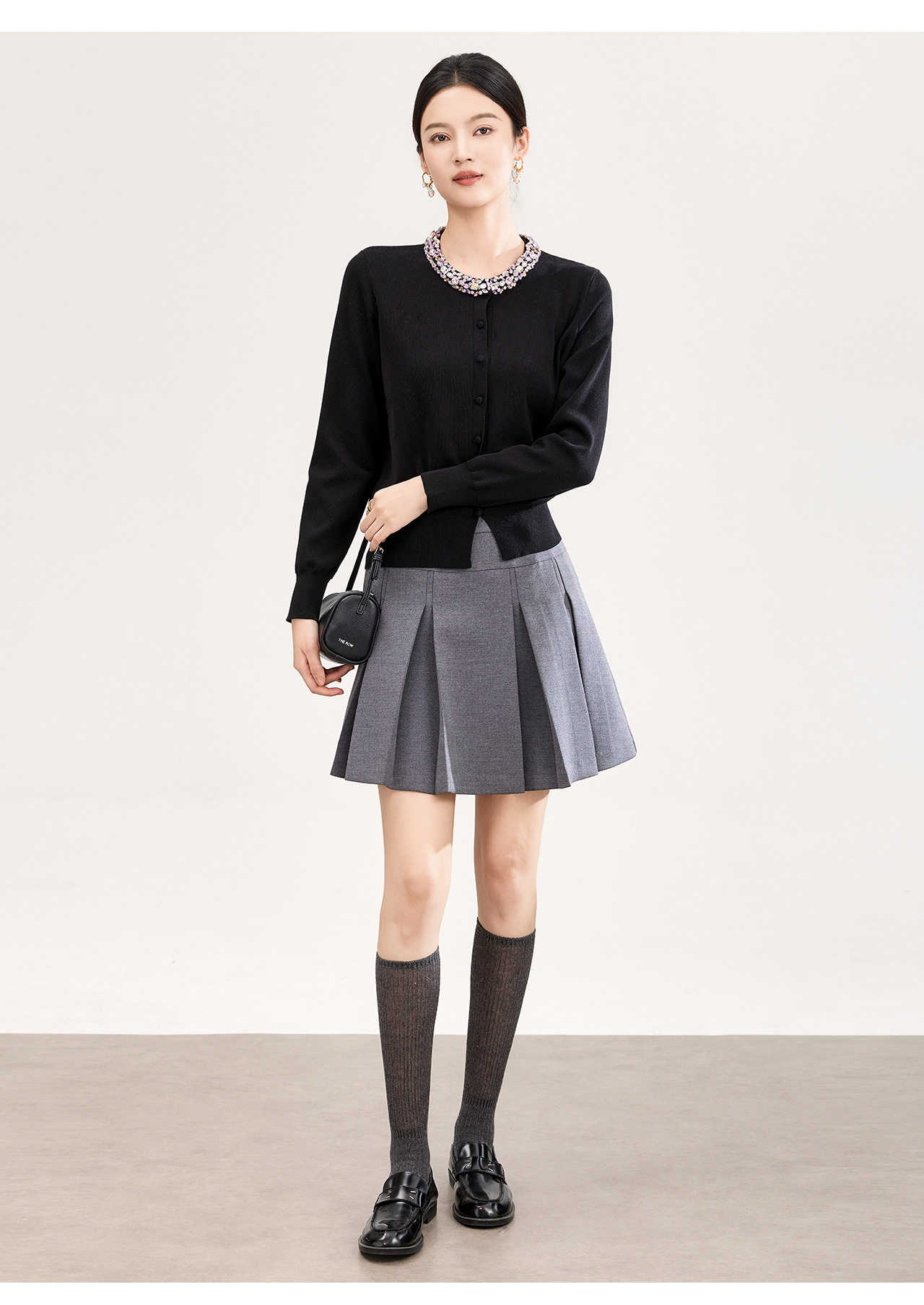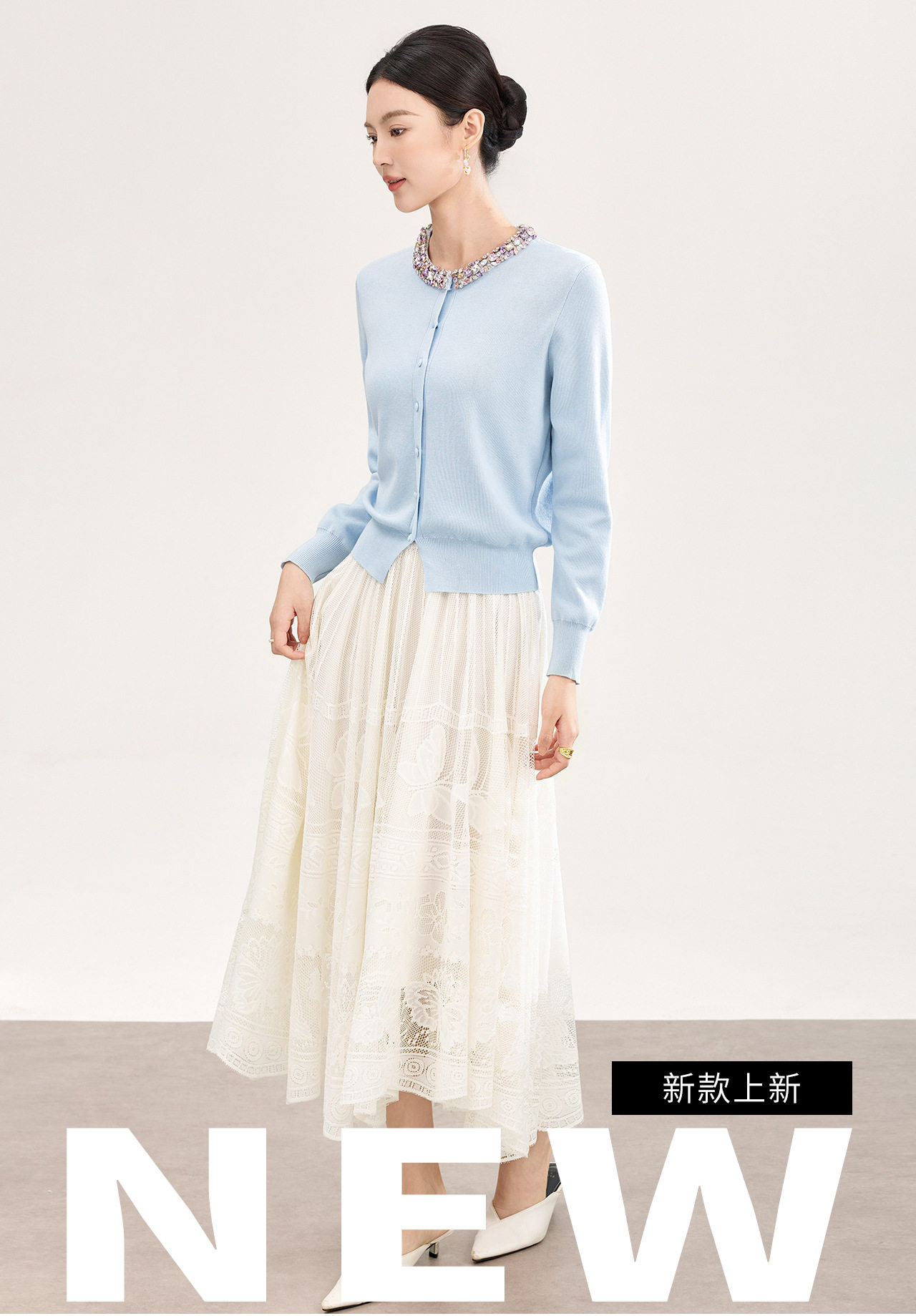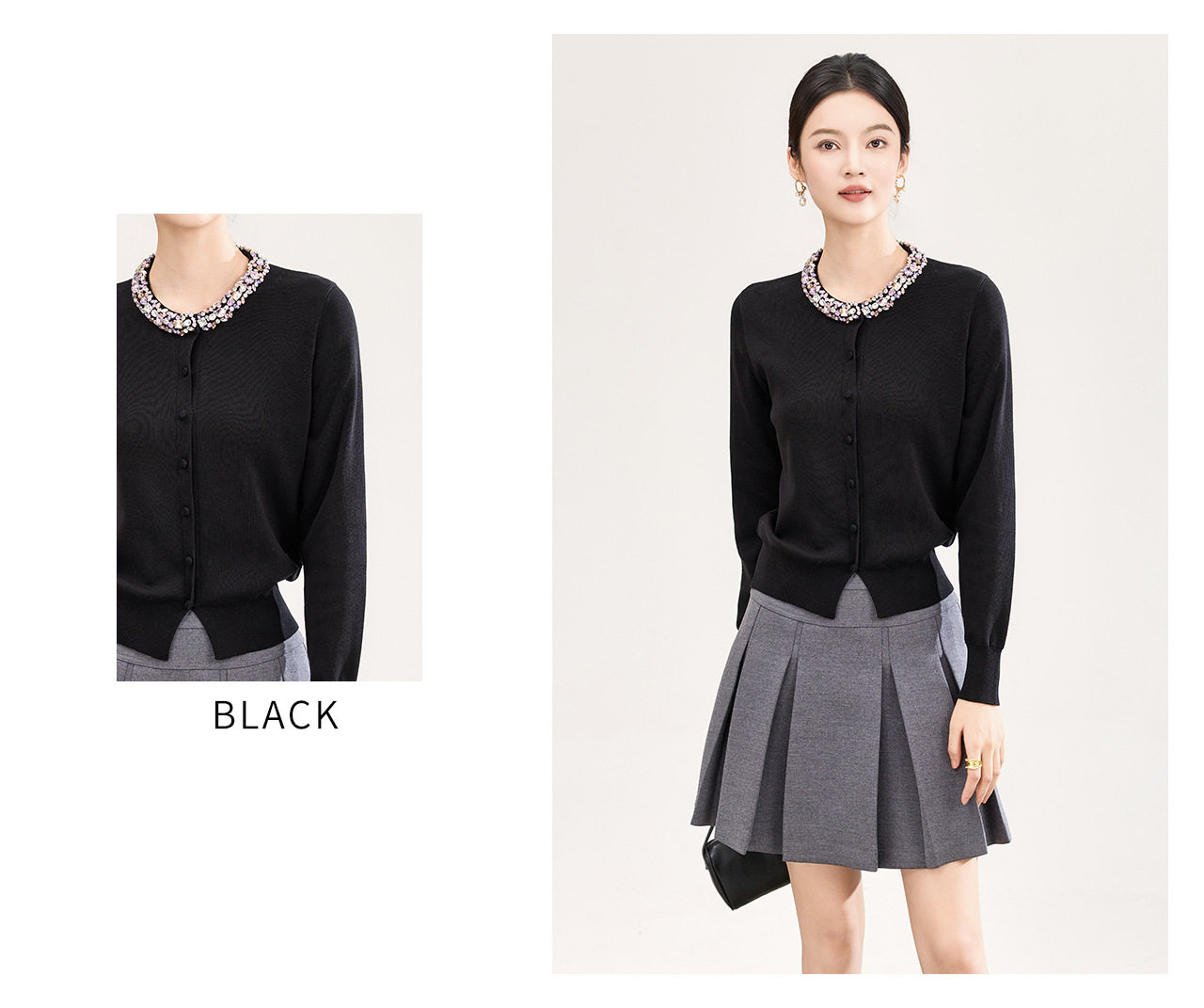 「高货wl」全新升级【铂金会员220/天猫289/差价69】(02357)洛诗琳镶钻天丝坑条针织开衫2026早春气质高弹短款上衣女