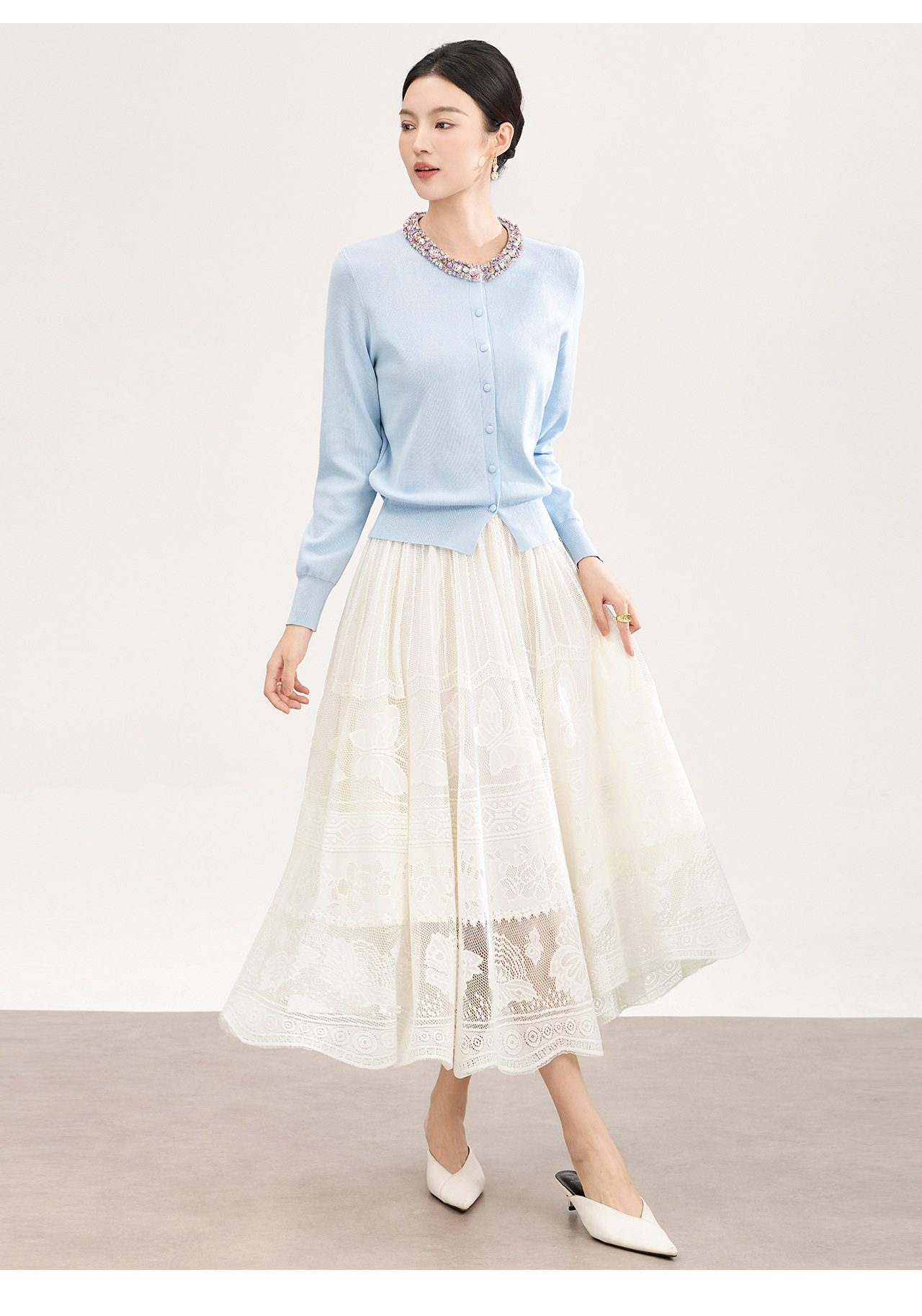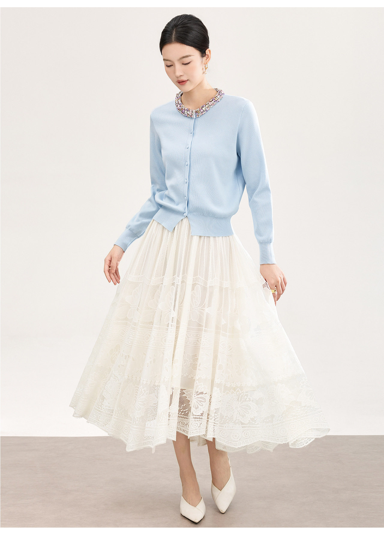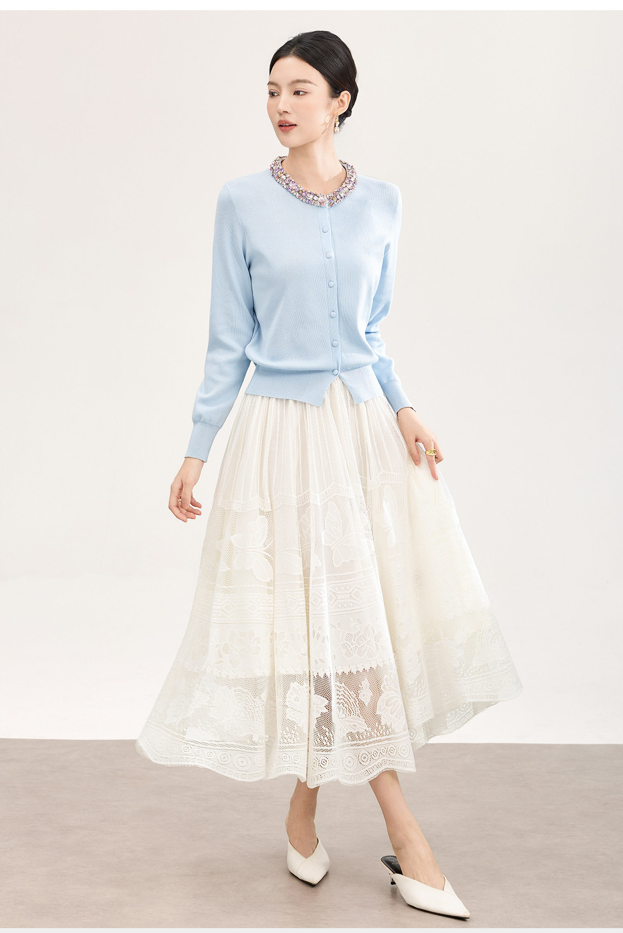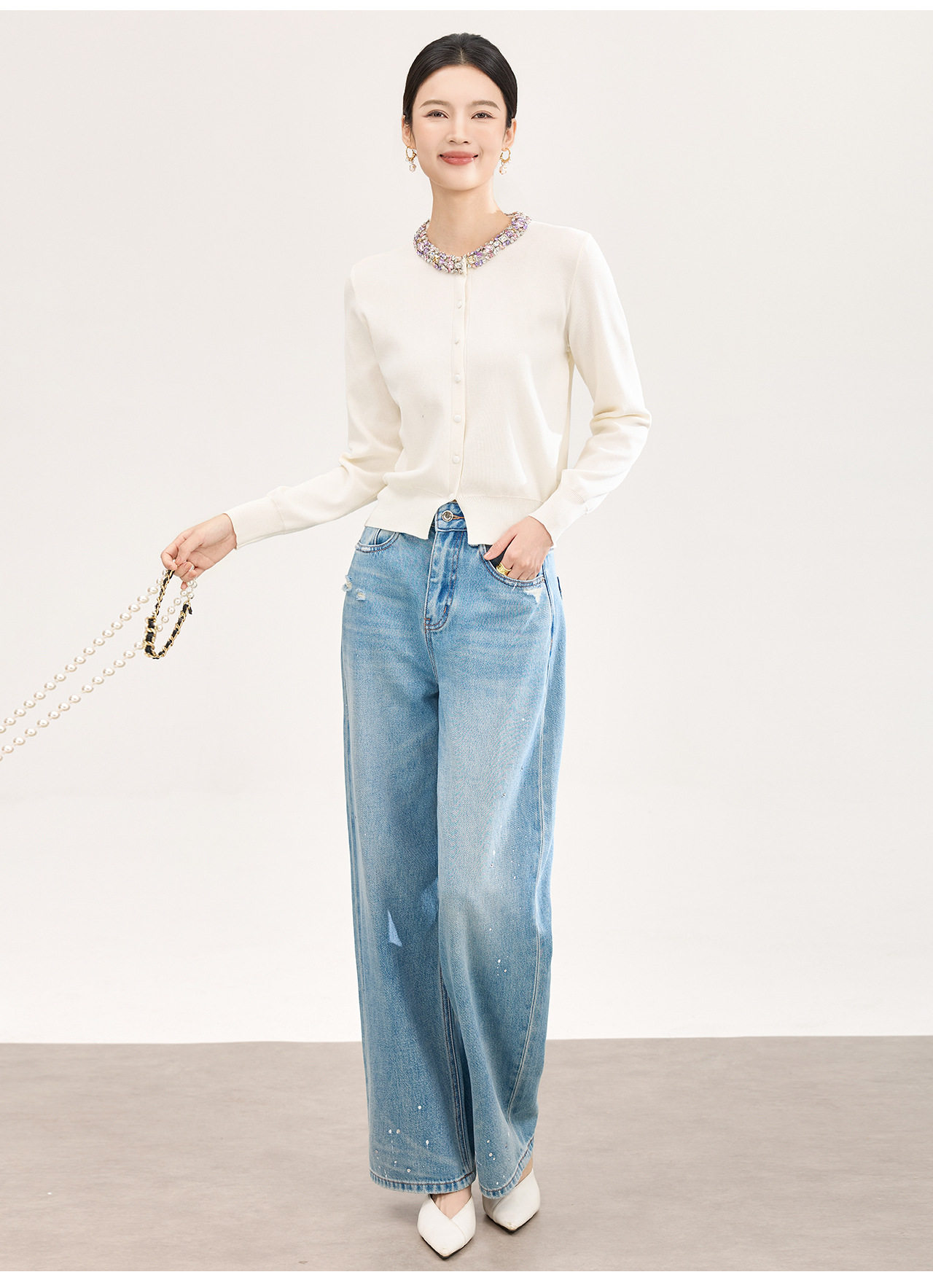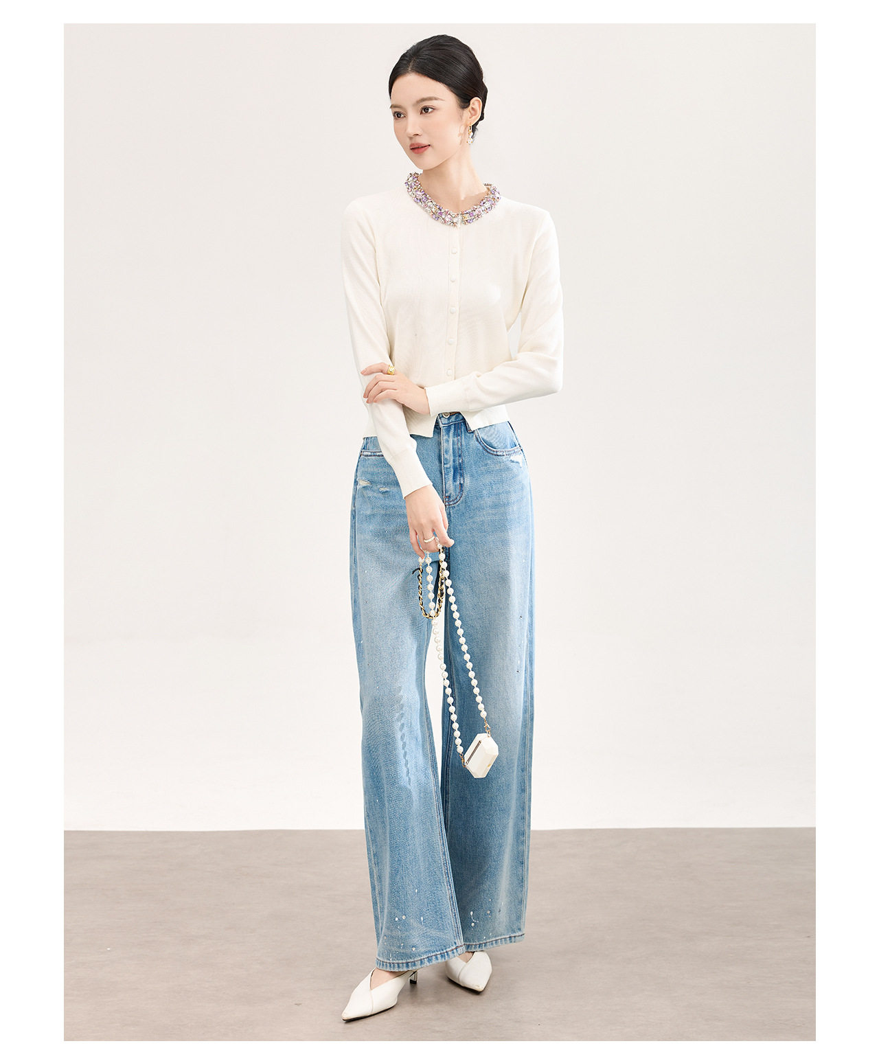 「高货wl」全新升级【铂金会员220/天猫289/差价69】(02357)洛诗琳镶钻天丝坑条针织开衫2026早春气质高弹短款上衣女