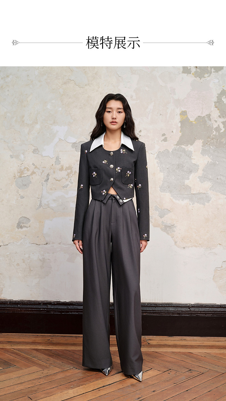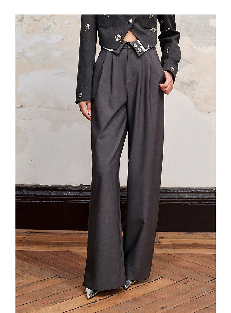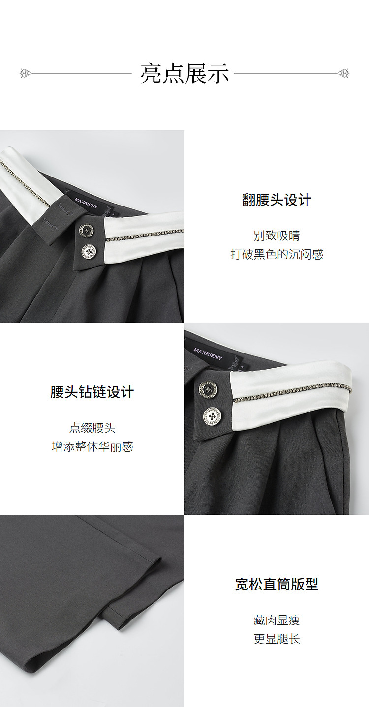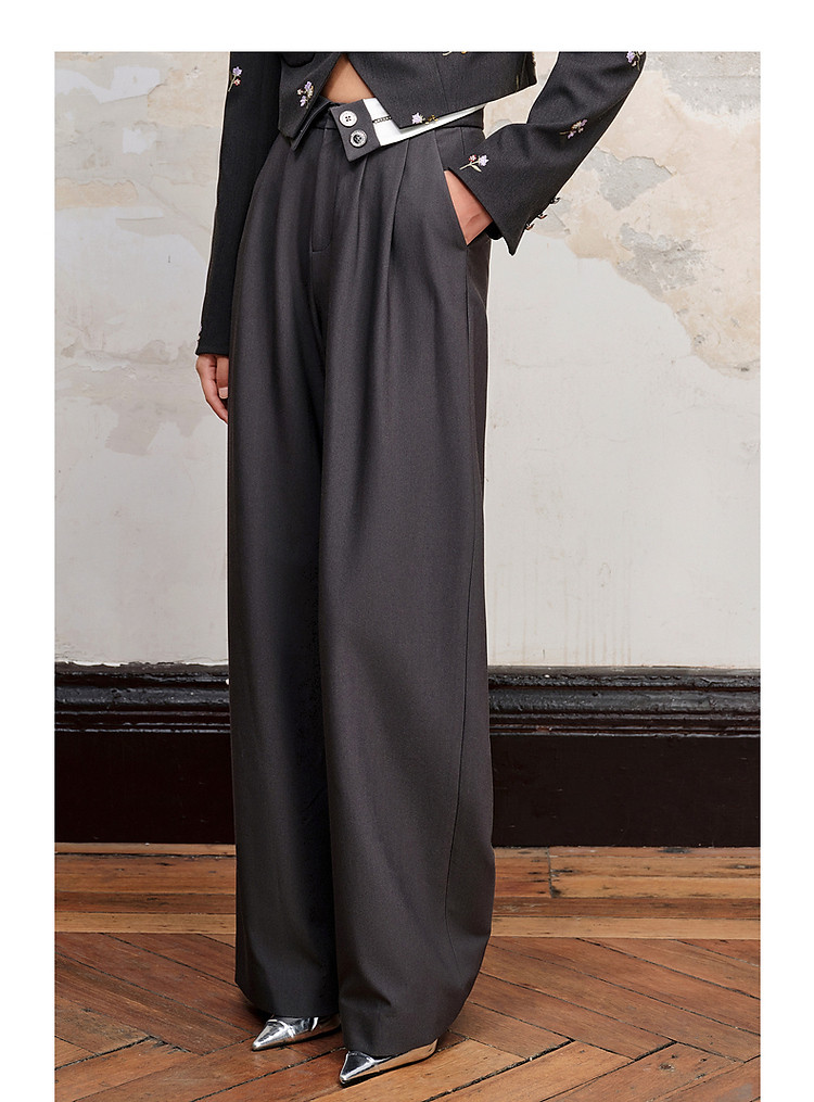 极简垂坠感阔腿裤通勤风西裤女格雷系穿搭MC88PA547A80