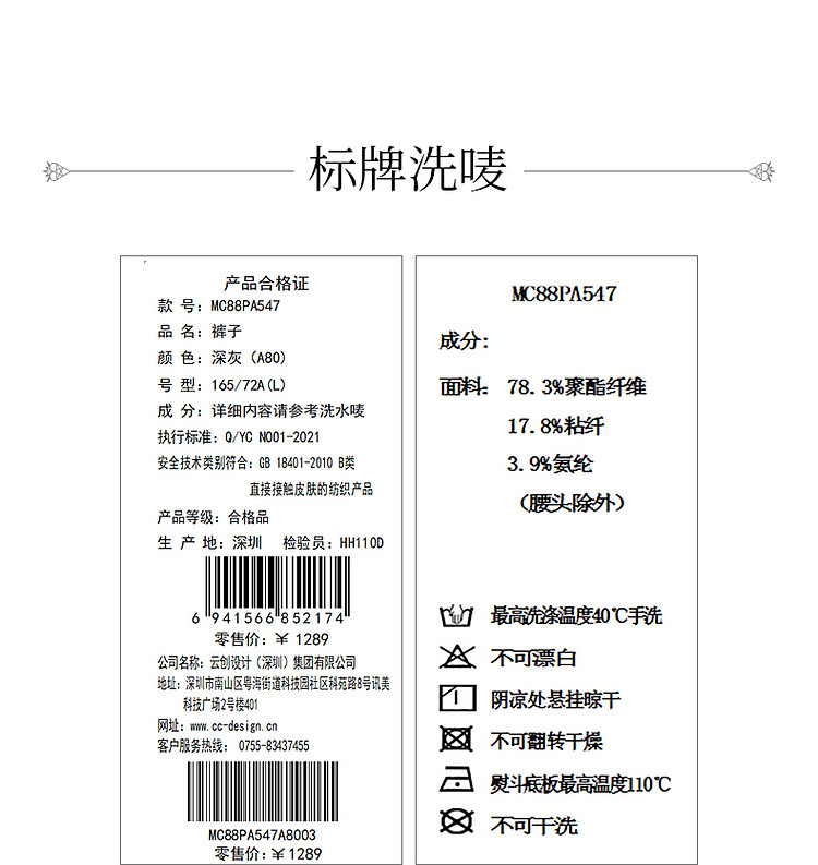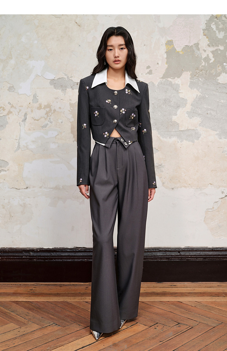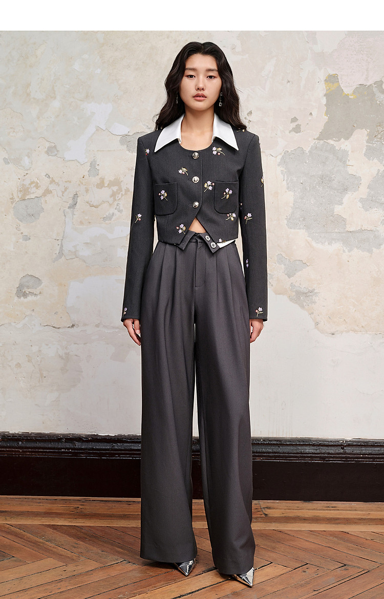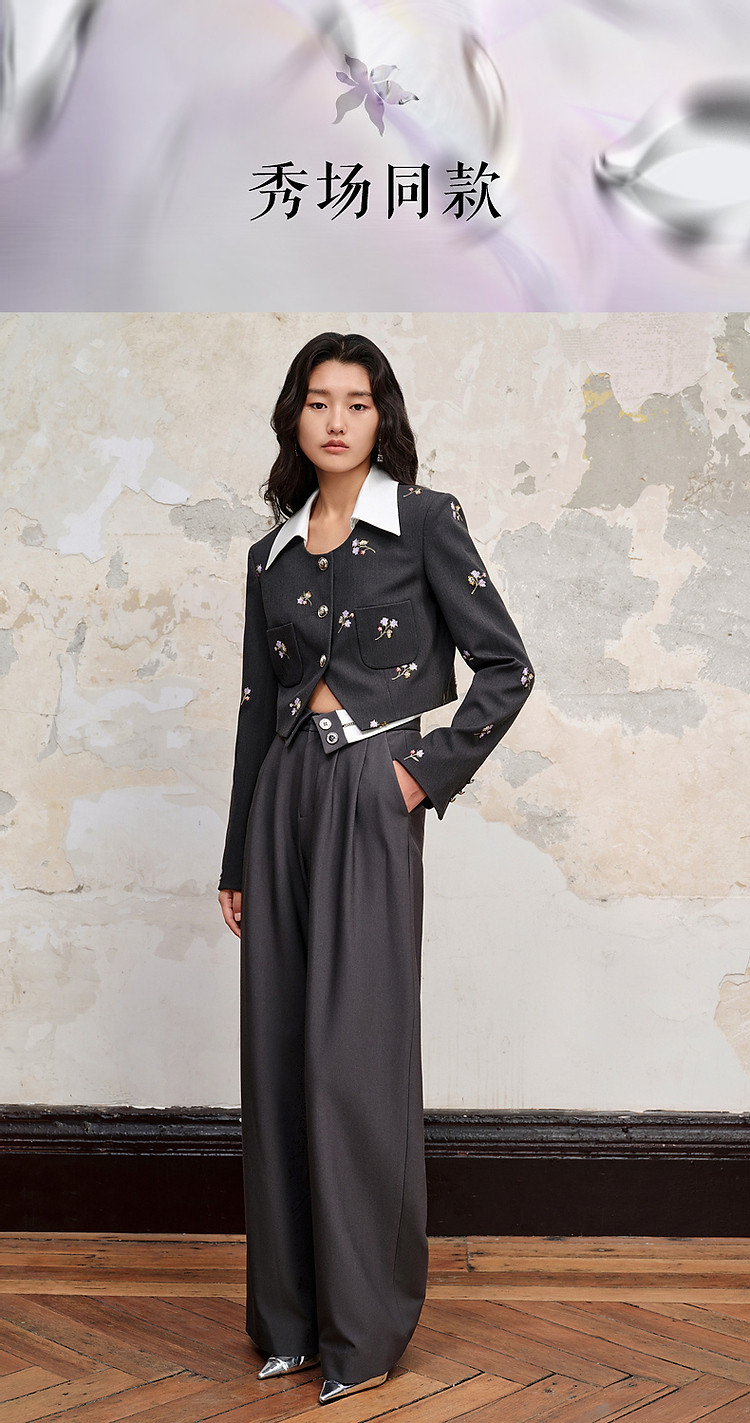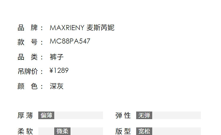 极简垂坠感阔腿裤通勤风西裤女格雷系穿搭MC88PA547A80
