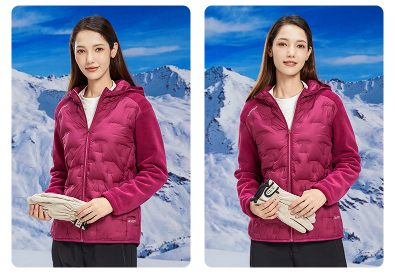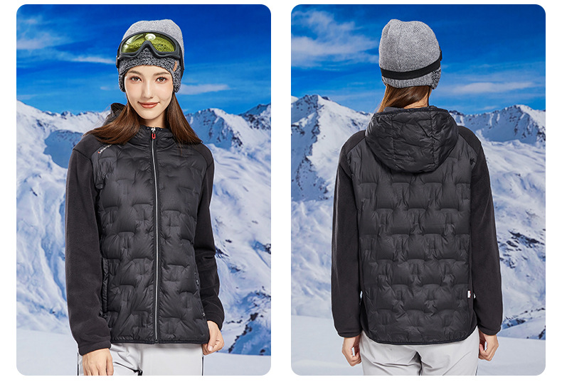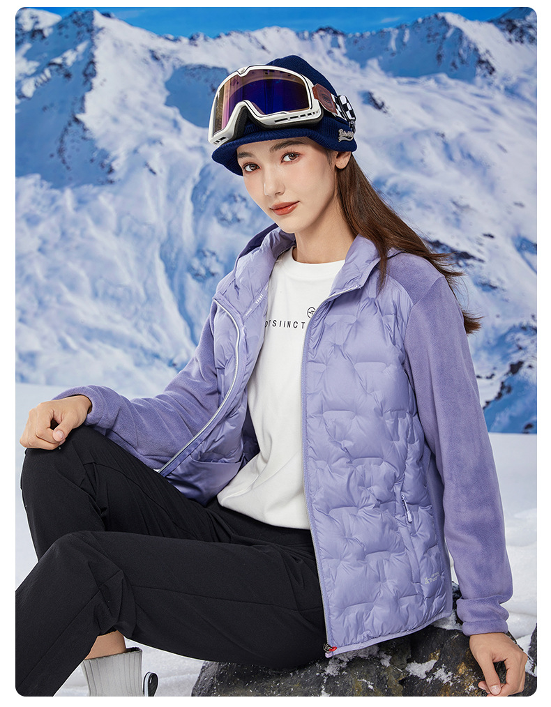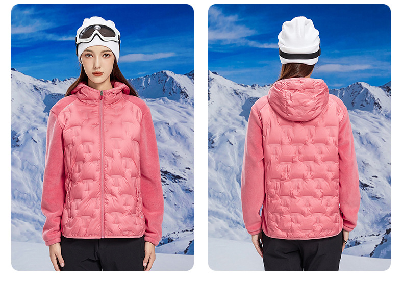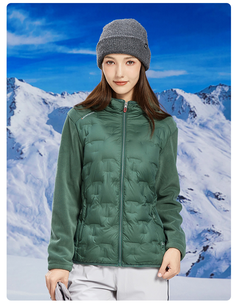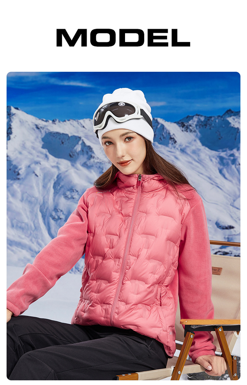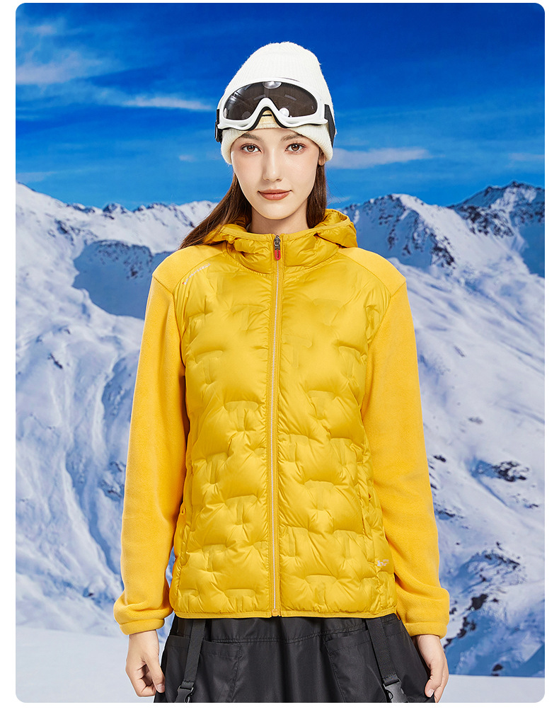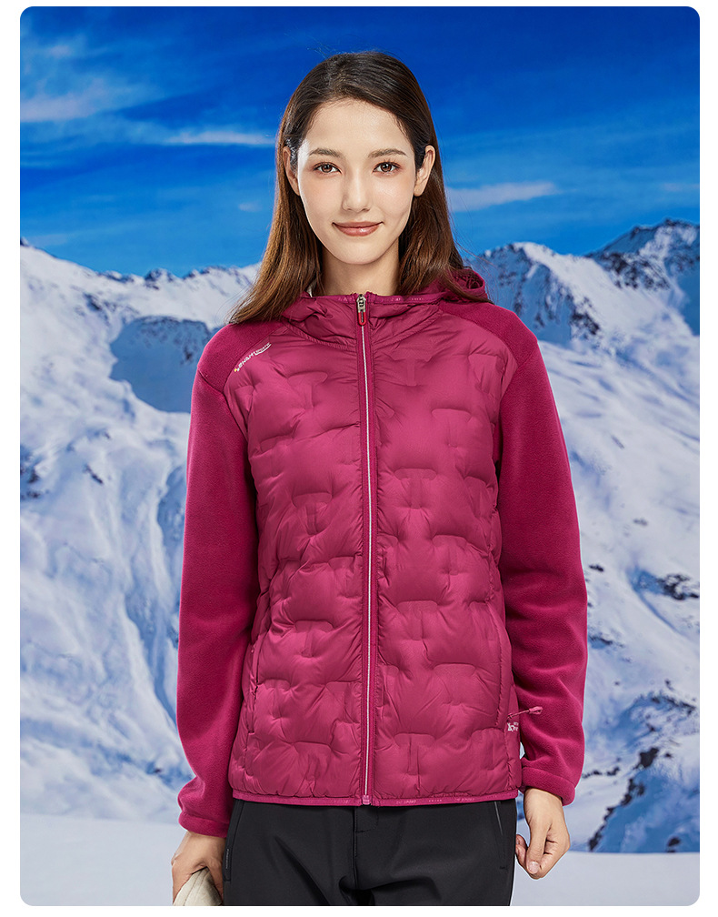 丁摩 奥粒绒拼羽绒秋冬户外休闲抓绒衣女羽绒服加厚保暖连帽4ZF-68582