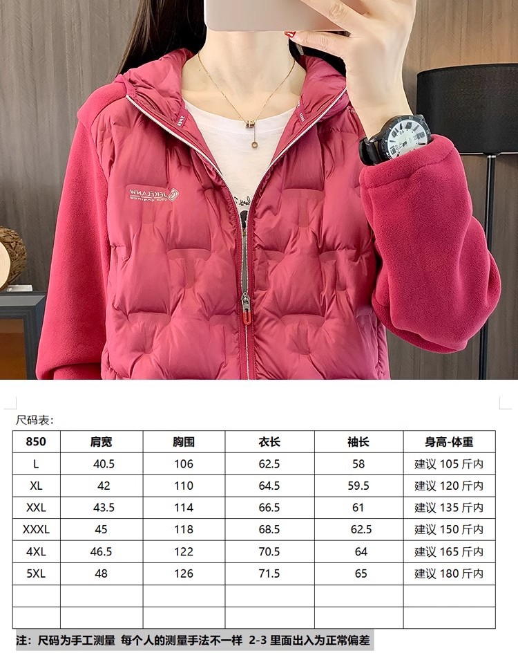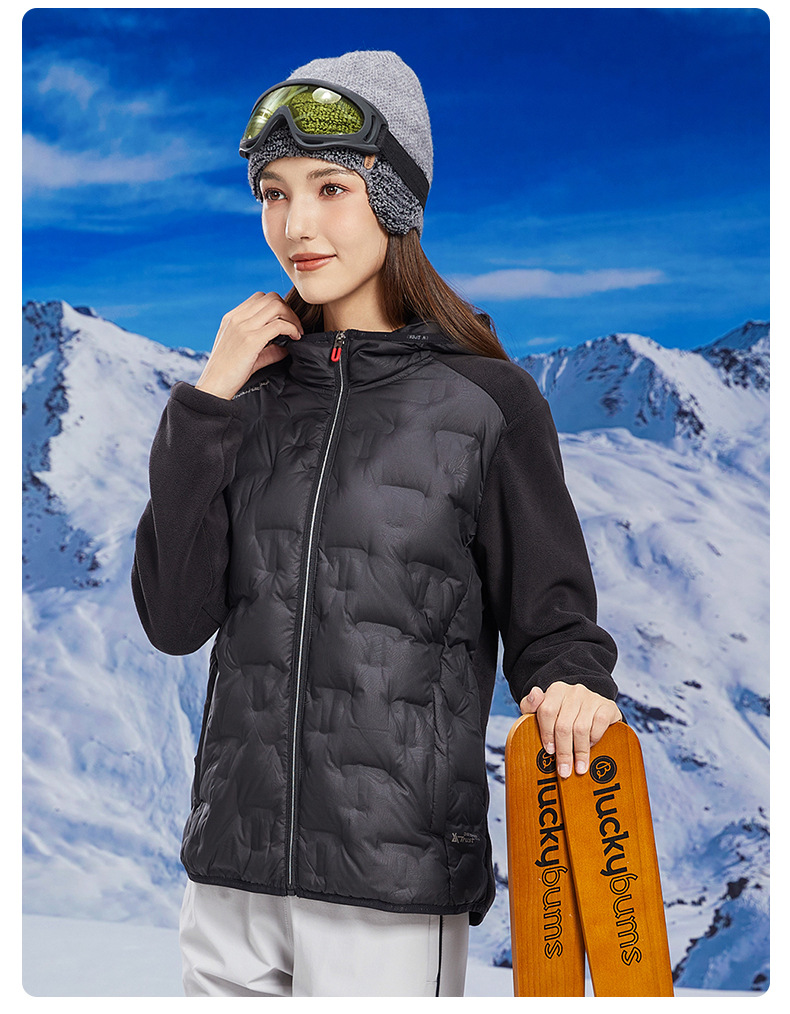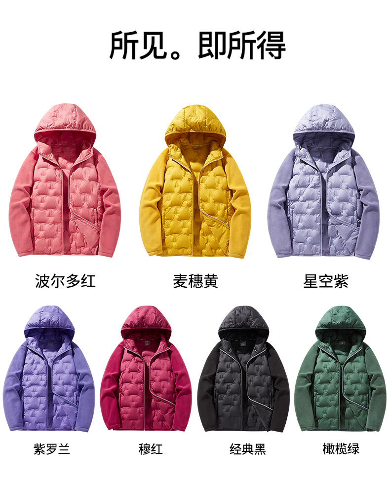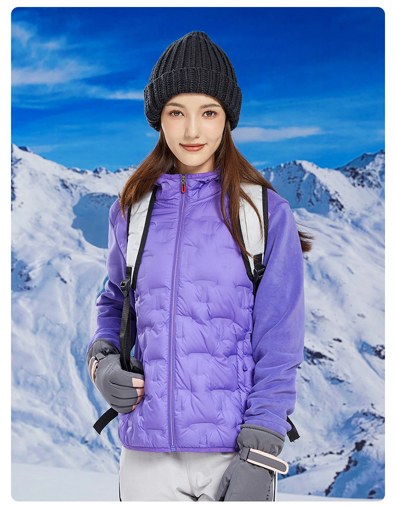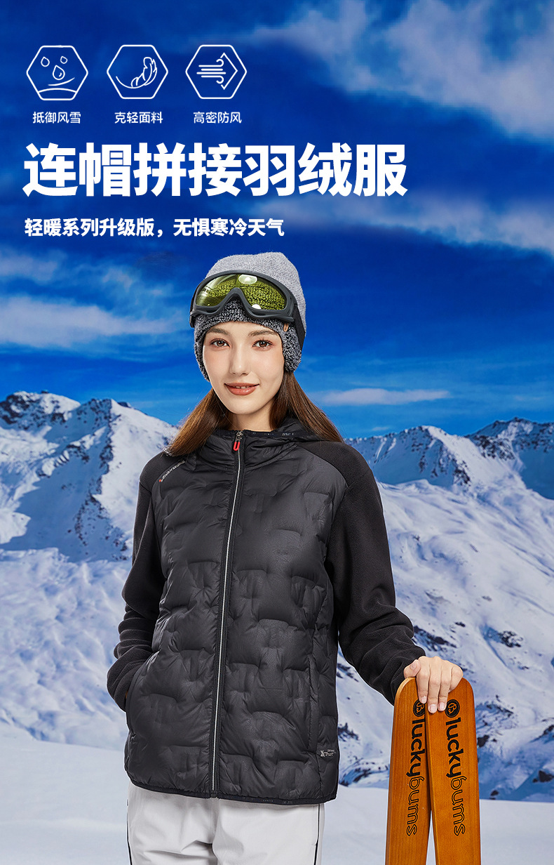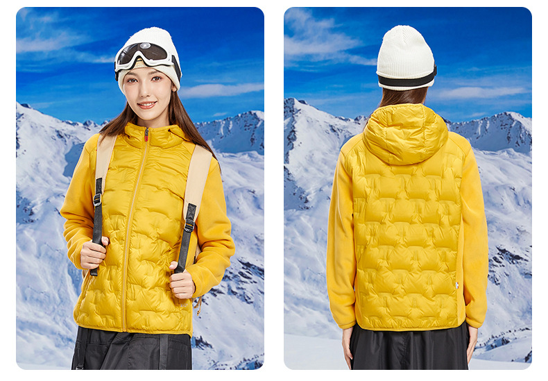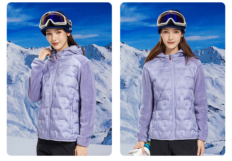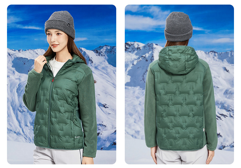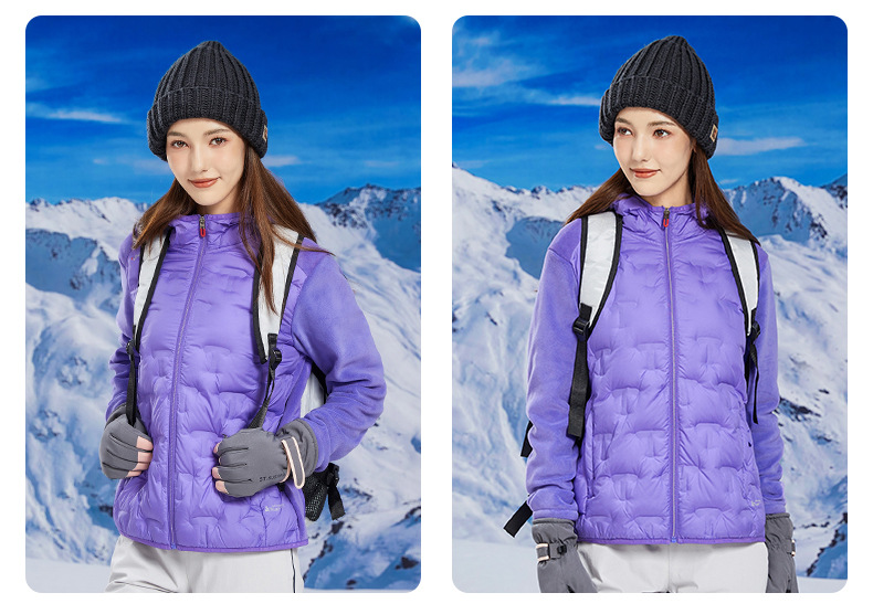 丁摩 奥粒绒拼羽绒秋冬户外休闲抓绒衣女羽绒服加厚保暖连帽4ZF-68582
