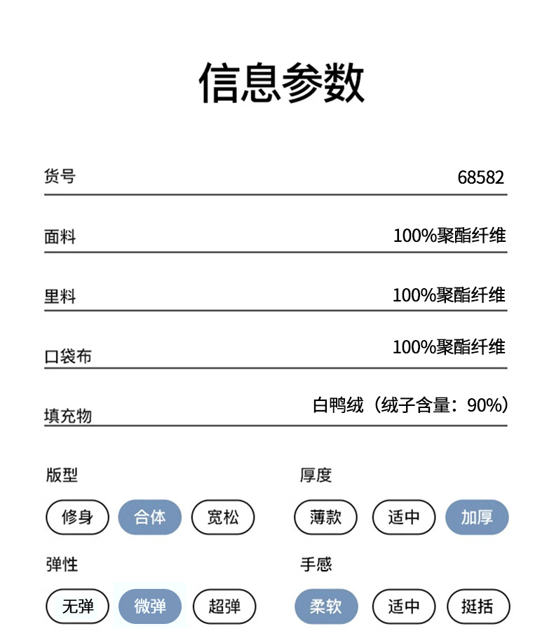 面料:白鸭绒