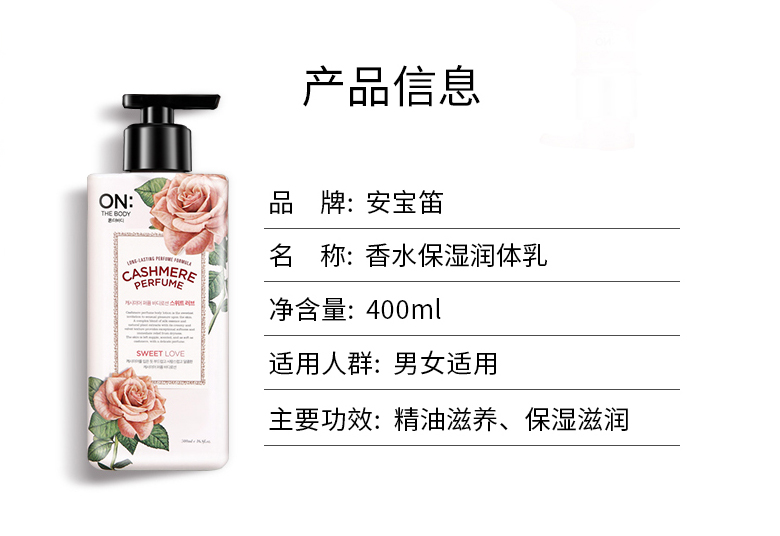 韩国安宝笛 香水保湿精油润肤身体乳400ml(浪漫邂逅)