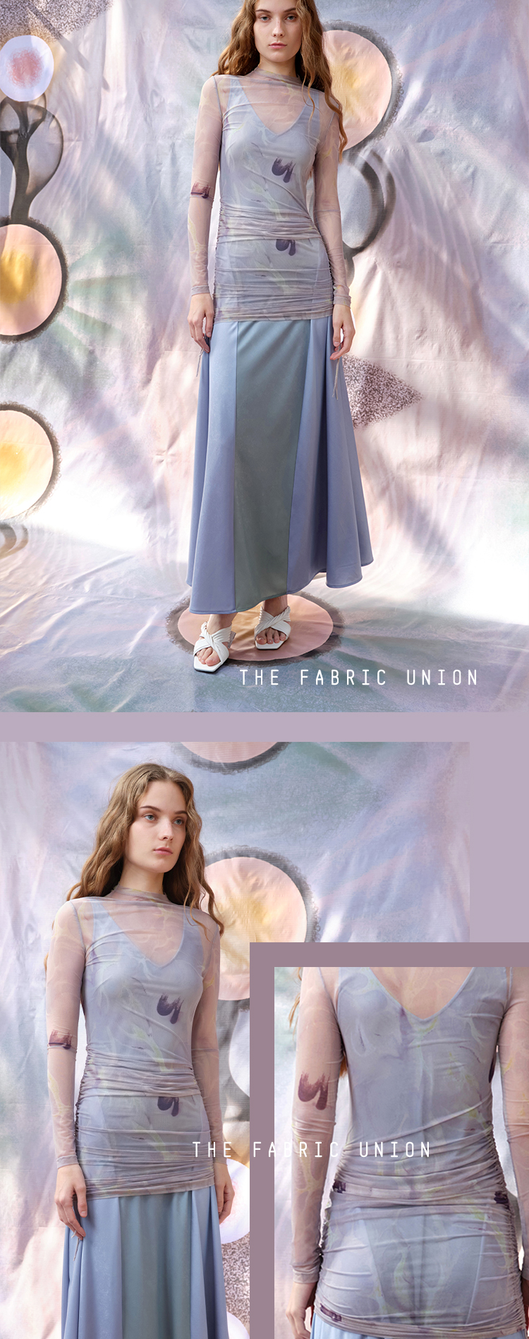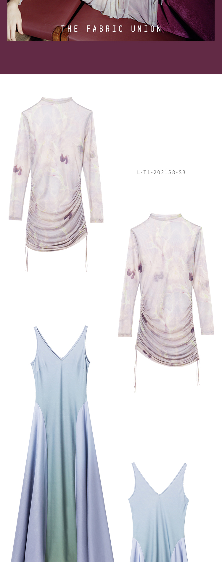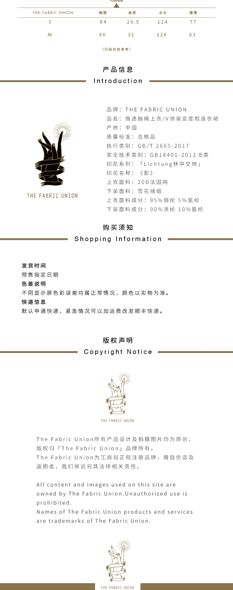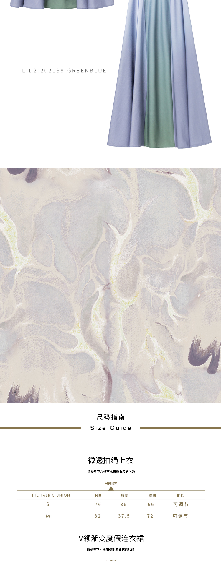 THE FABRIC UNION微透抽绳上衣度假V领渐变度假连衣裙