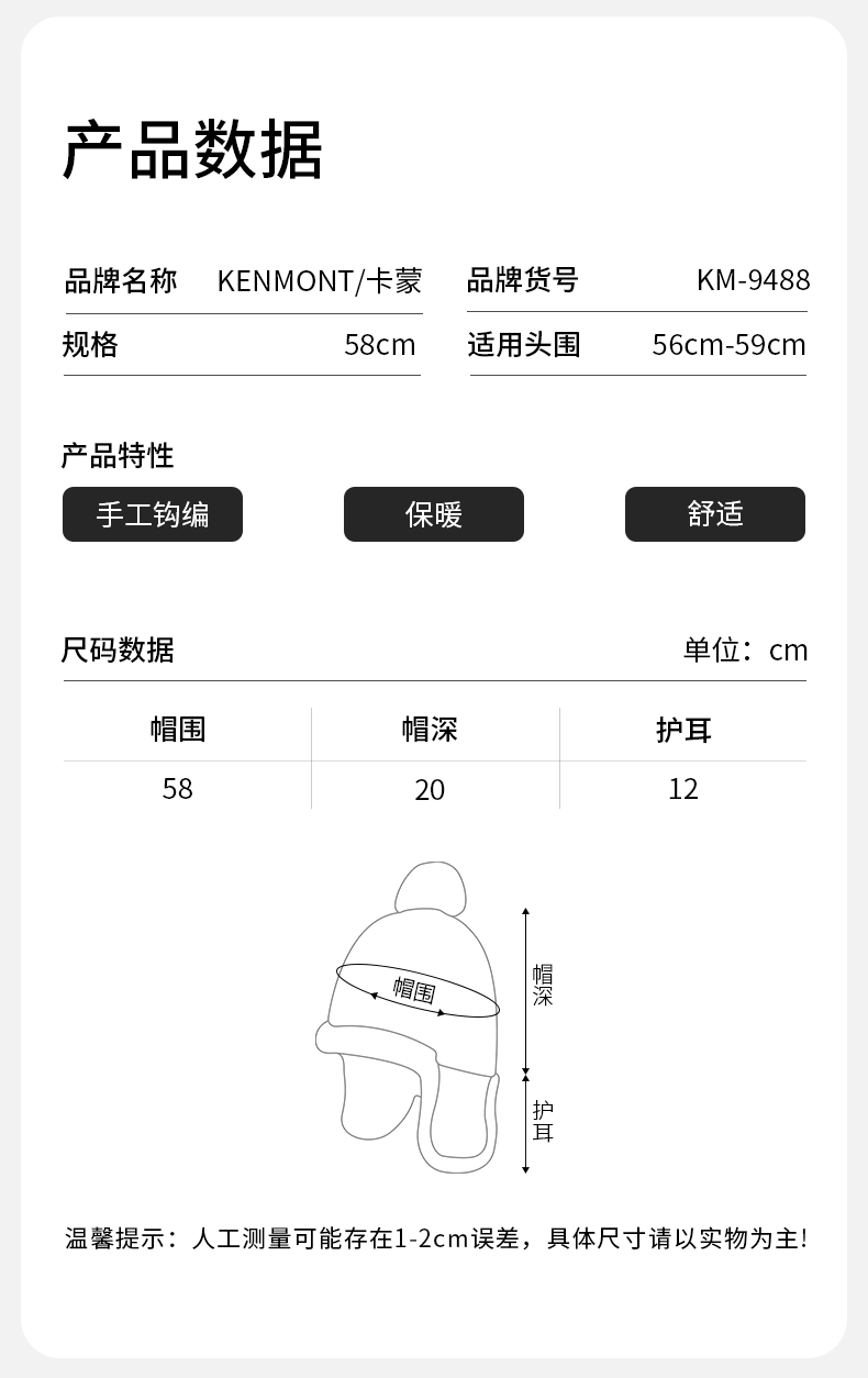 卡蒙女士 手工钩织 保暖护耳帽KM-9488 商品图7