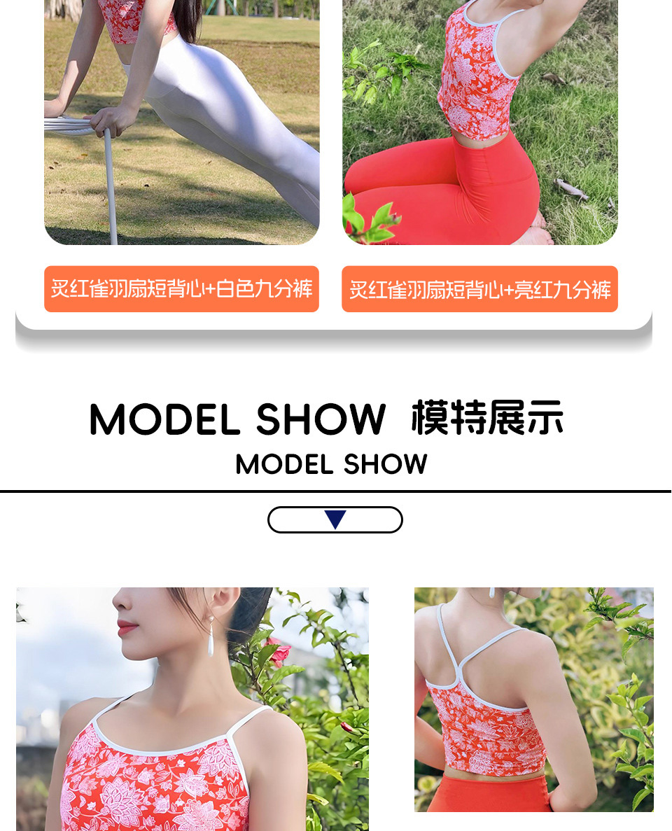【126元任选2件】跃牌【漫西】系列 印花色时尚吊带胸垫背心心运动内衣健身裤瑜伽服套装Y231