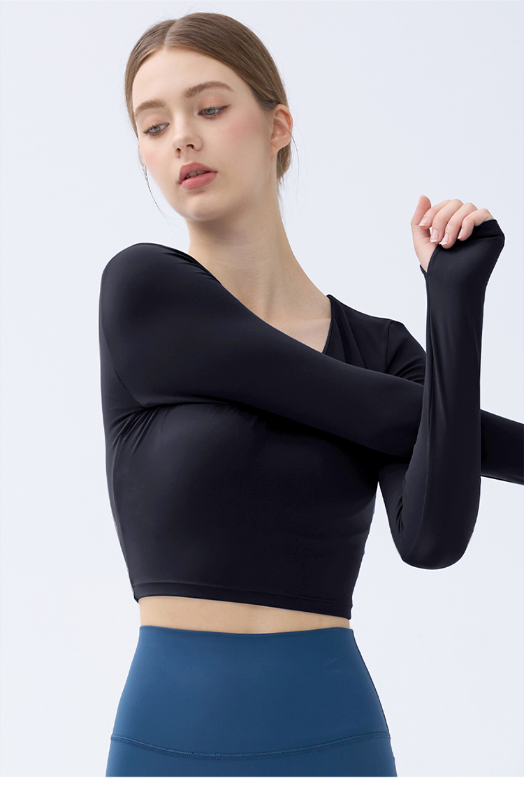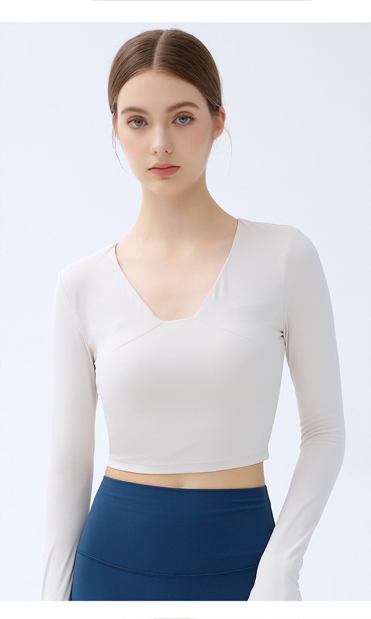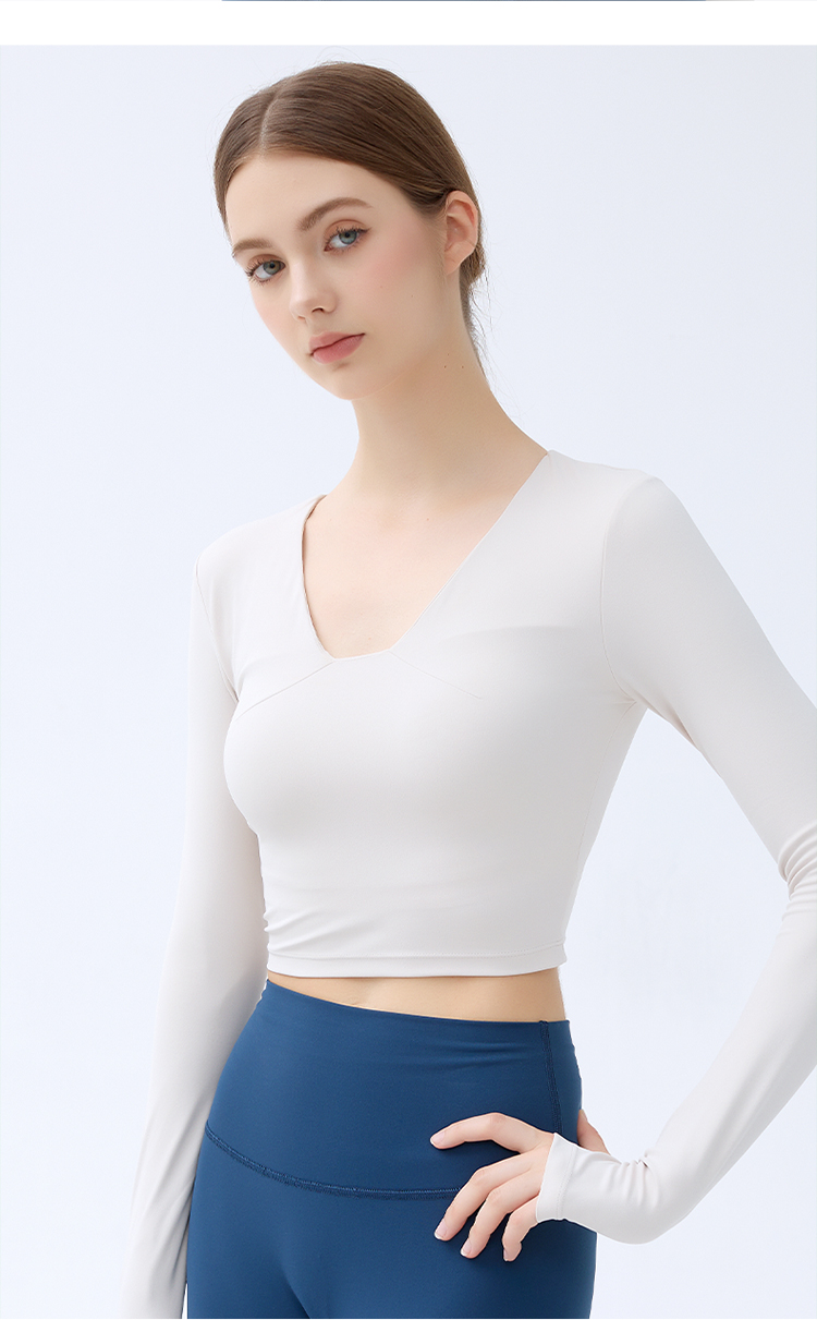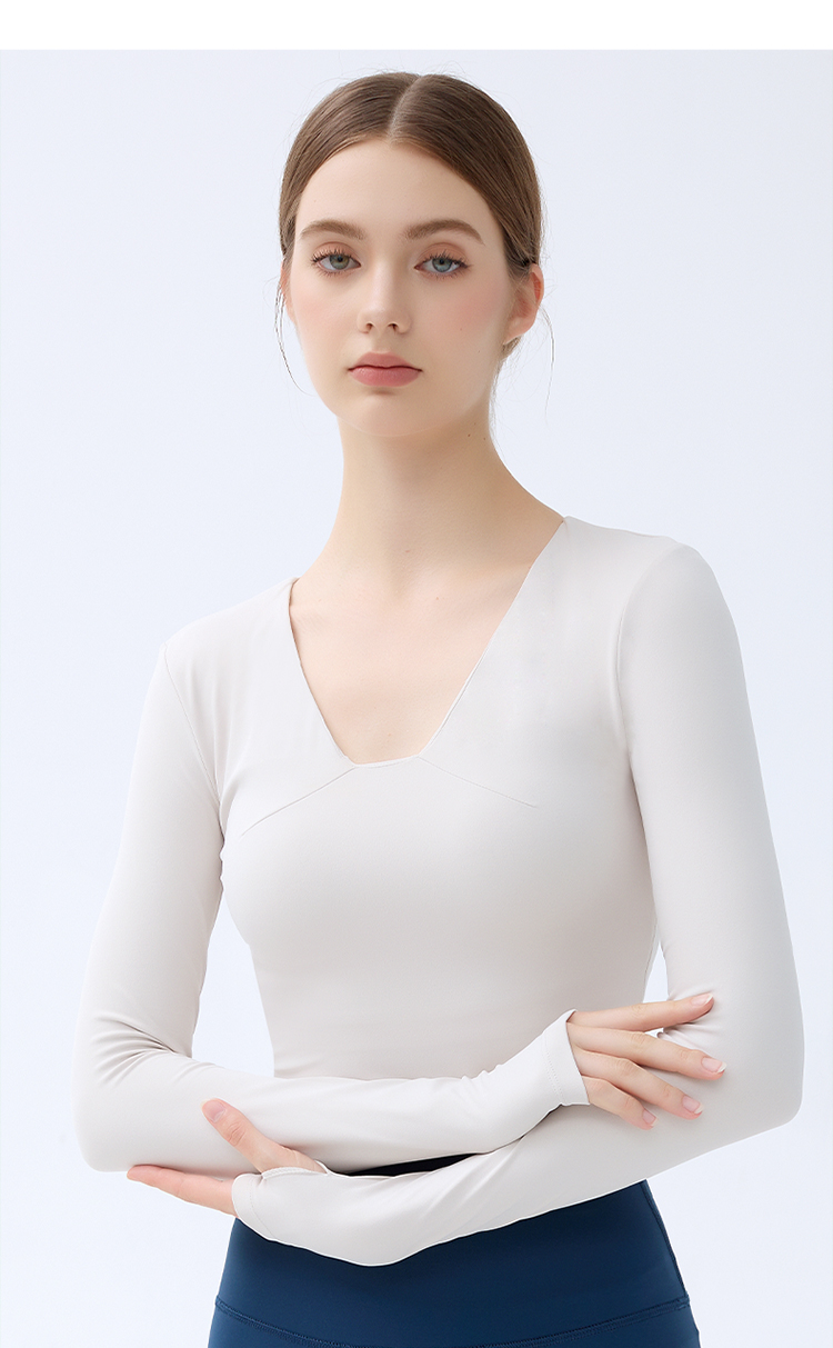 跃牌【小甜心】系列 带胸垫瑜伽服上衣女V领健身长袖9065 商品图6