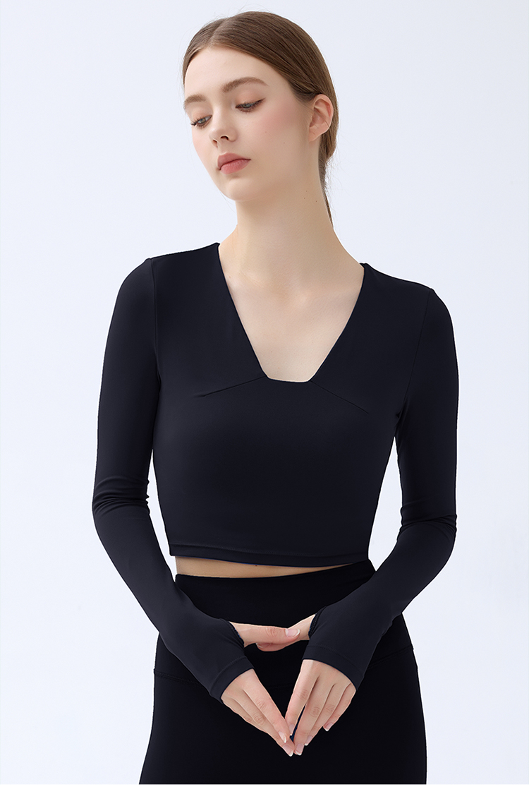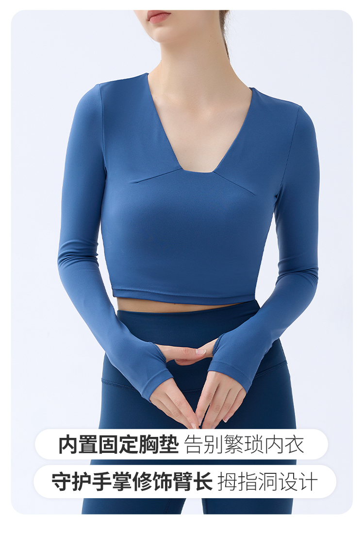 跃牌【小甜心】系列 带胸垫瑜伽服上衣女V领健身长袖9065 商品图8